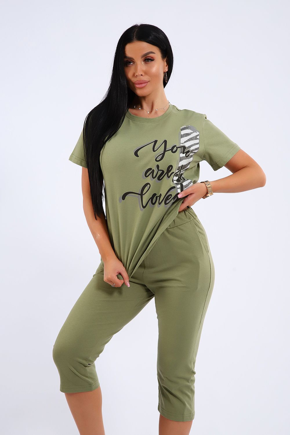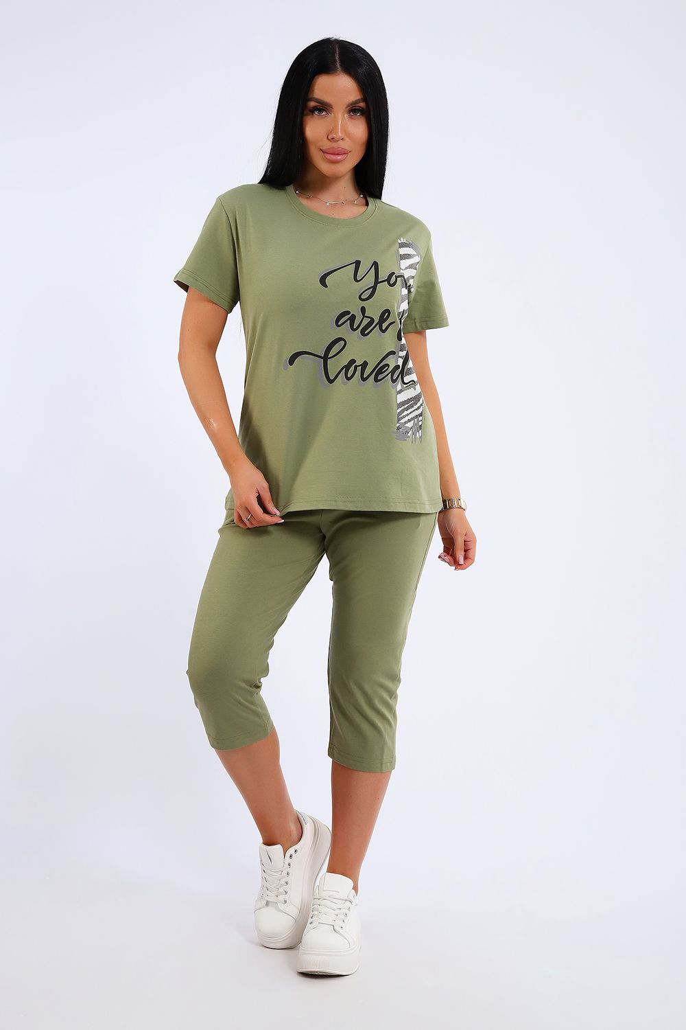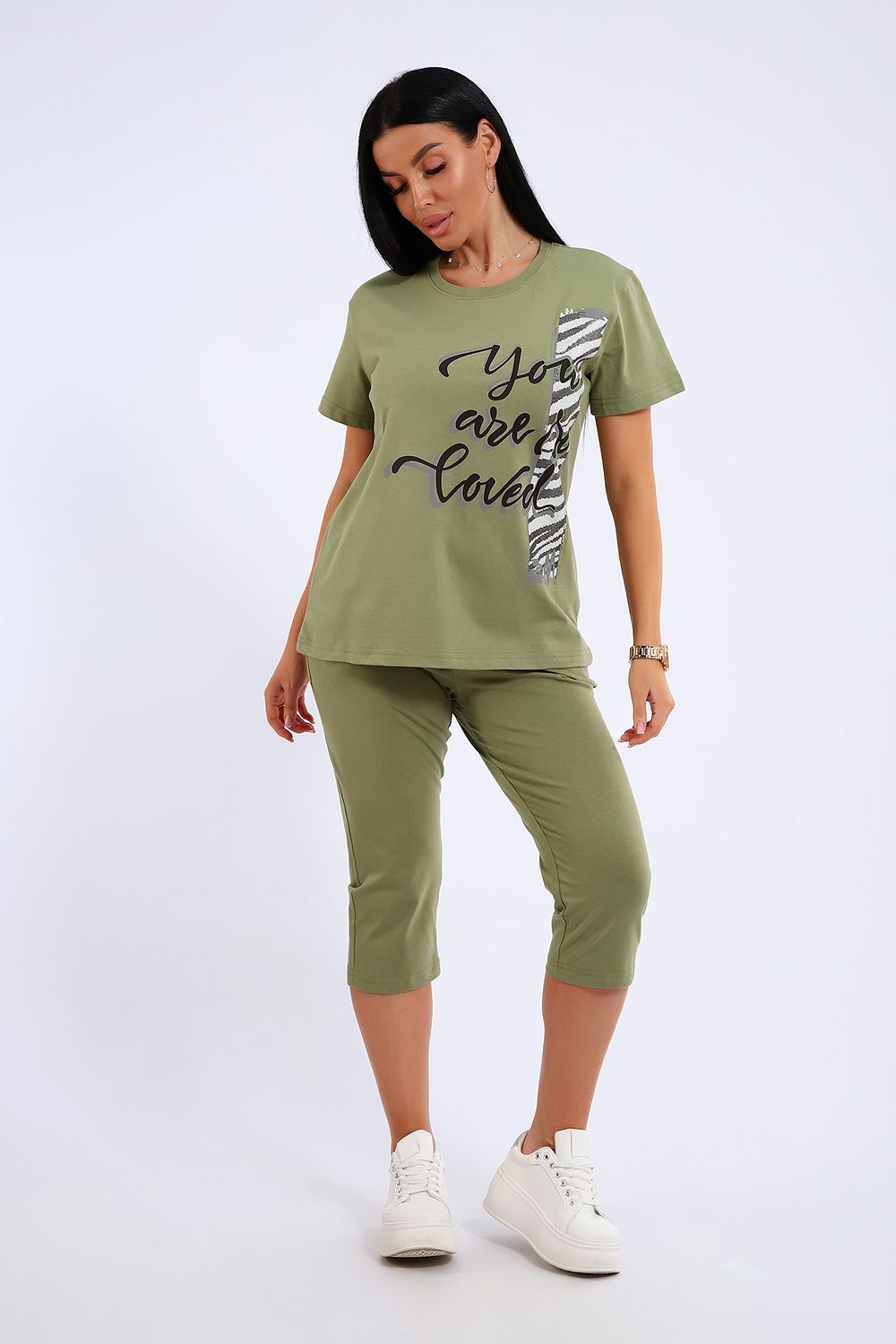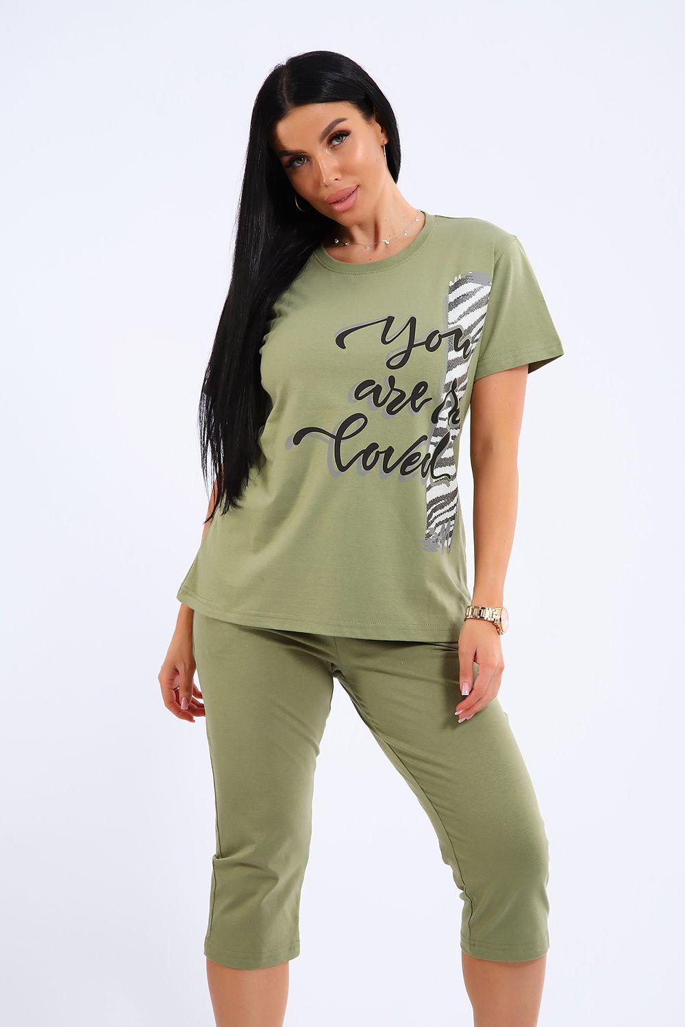 Универсальный костюм с бриджами, изготовленный из качественного хлопкового трикотажа идеально подходит для самых разных вариантов использования. Он может быть одеждой для сна, домашним нарядом, а так же костюмом для времяпровождения на свежем воздухе. Майка достаточно объёмная, чтобы не сковывать движений, полочка украшена броским принтом. Благодаря использованию мягкого трикотажа из 100% хлопка, вы будете наслаждаться комфортом и уютом в любой ситуации.
