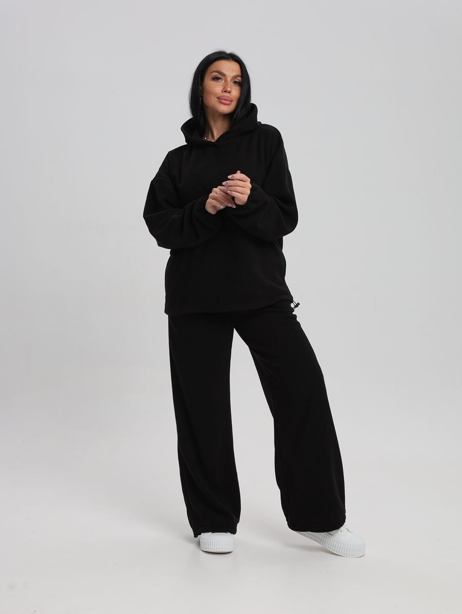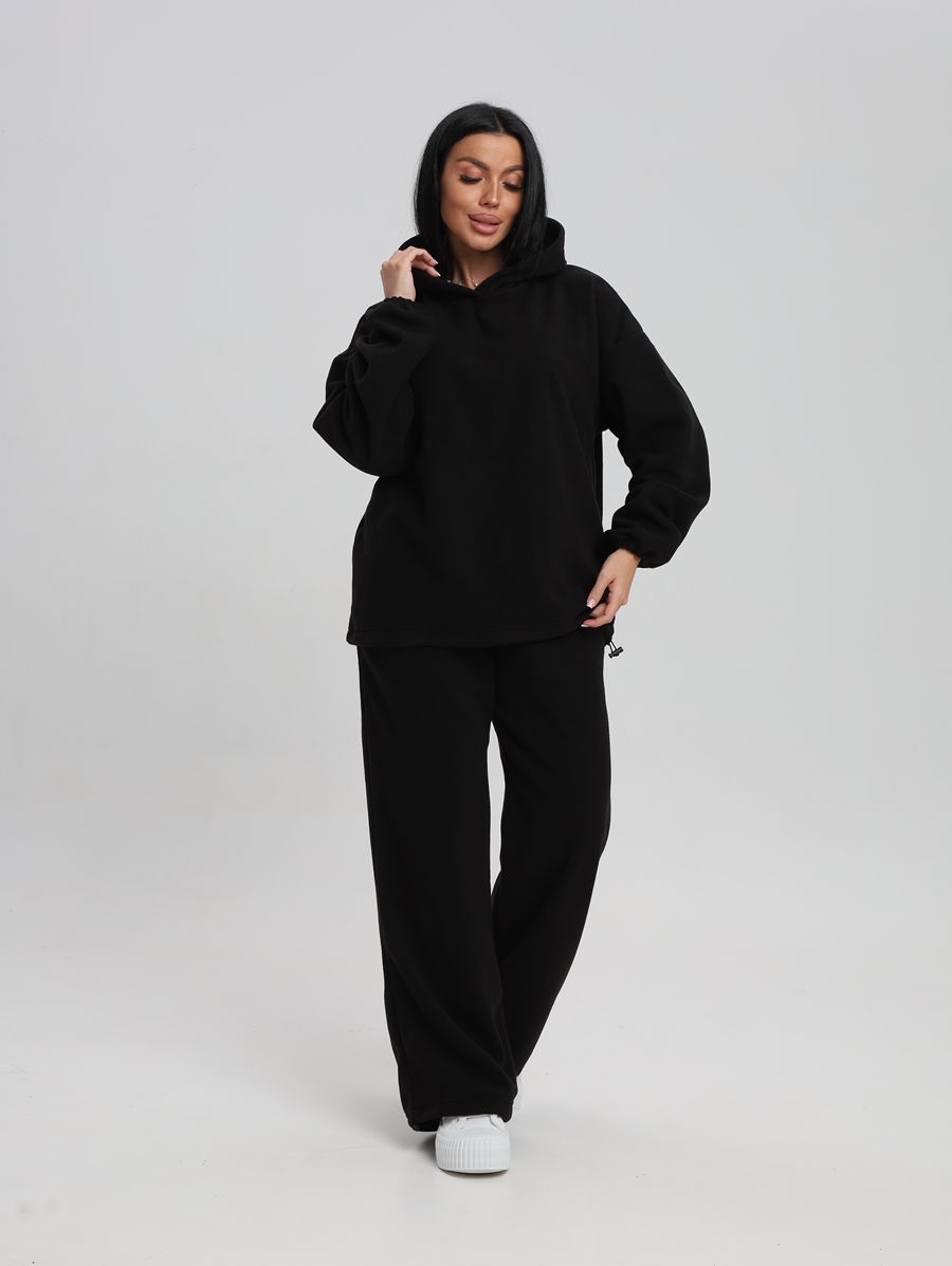 Этот костюм идеально впишется в ваш гардероб для активного отдыха и повседневных прогулок. Все элементы продукта выполнены из 100% полиэстера, что обеспечивает легкость и комфорт в носке. Материал без утеплителя и подкладки позволяет чувствовать себя свободно даже при длительном ношении. Изготовленный из флиса, он мягок на ощупь и приятен к телу, а капюшон добавляет дополнительную защиту от ветра. Модель без застежки легко надевается и снимается, что особенно удобно для будущих мам. Быстросохнущая ткань подходит для активностей на свежем воздухе. Высоко оценимая эластичность материала дарит свободу движений, сохраняя форму изделия после многочисленных стирок. Свободный крой делает его комфортным варианта для высоких женщин или обладательниц больших размеров. Никакие узоры здесь не отвлекают внимание от основного — вашего личного стиля и образа жизни. Худи женское оверсайз с капюшоном и мягкой резинкой на рукавах, капюшон с подкладкой из хлопка, по низу худи шляпная резинка с фиксатором, брюки женские с высокой посадкой на резинке прямого кроя с прорезными карманами по низу брюк шляпная резинка с фиксатором.