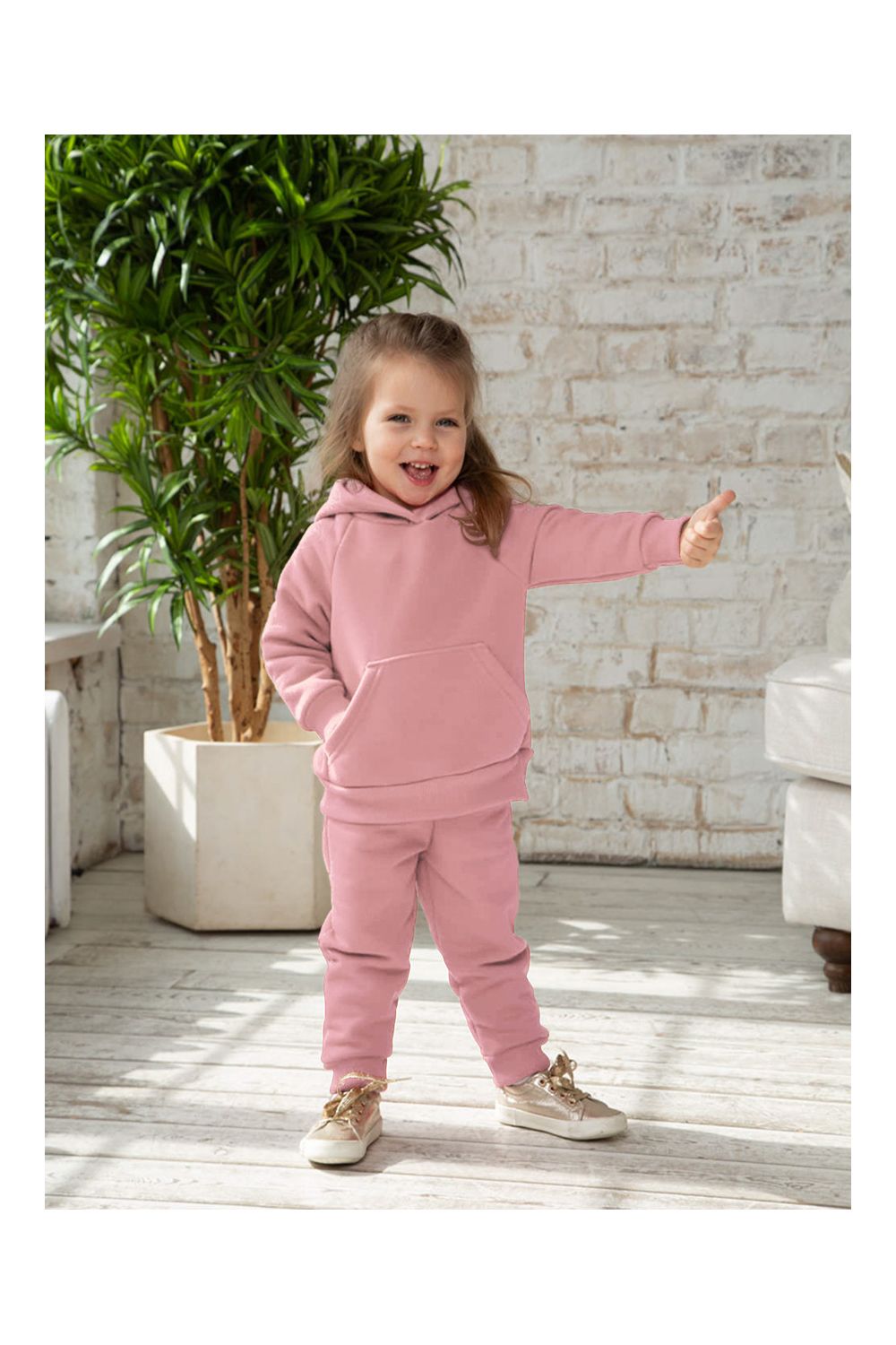 Костюм "Малинка" для девочки, предназначен для носки в прохладных помещениях и прогулке на улице, выполнен из плотного футера с начёсом: - толстовка на поясе, с капюшоном, рукава на манжетах, на полочке карман "кенгуру"; - штанишки на манжетах, пояс на резинке.