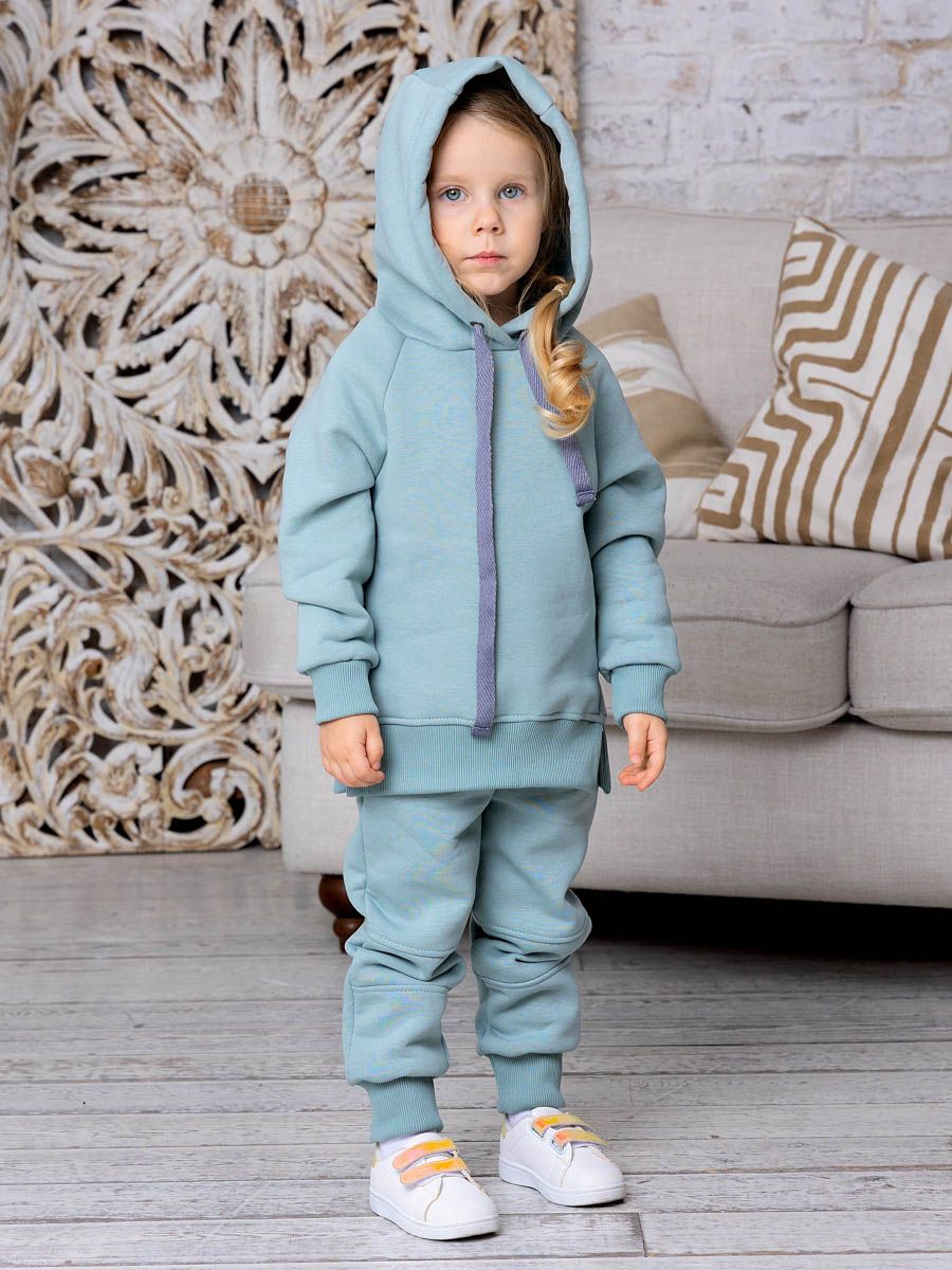 Костюм "Сью" для девочки, предназначен для носки в прохладных помещениях и прогулки на улице, выполнен из плотного футера с начёсом. Толстовка на поясе, с капюшоном на шнурке, рукава-реглан на манжетах. Разрезы в боковых швах по нижней части толстовки придают модели особую оригинальность. Штанишки на манжетах, пояс на резинке, декоративная отстрочка в области колен. В таком костюме ребёнок будет чувствовать себя комфортно, уютно и всегда будет в центре внимания!