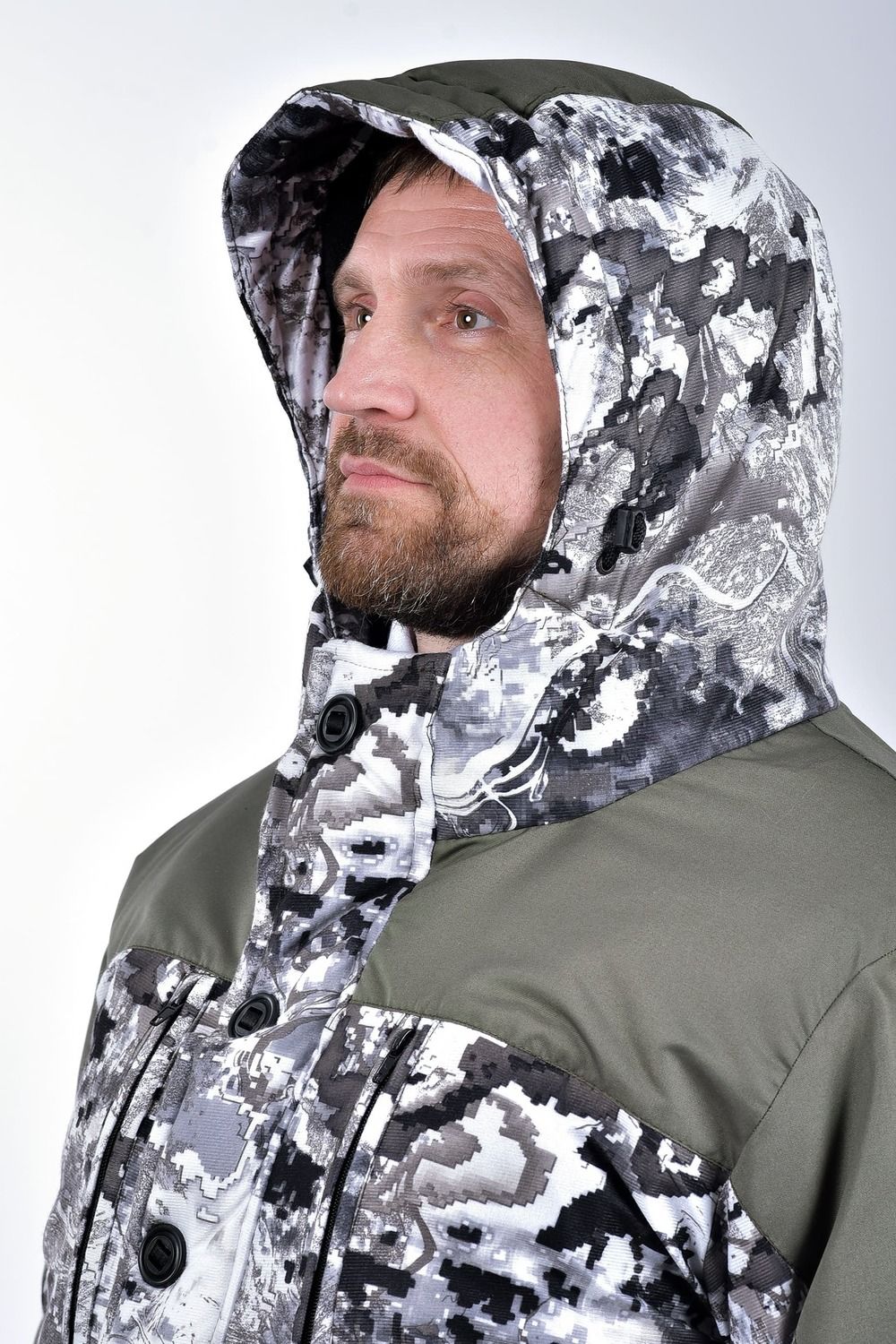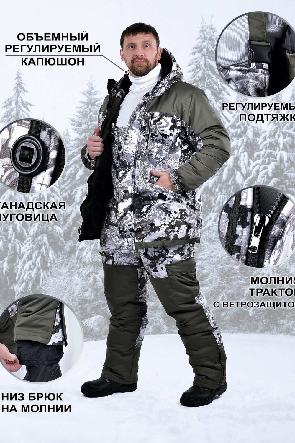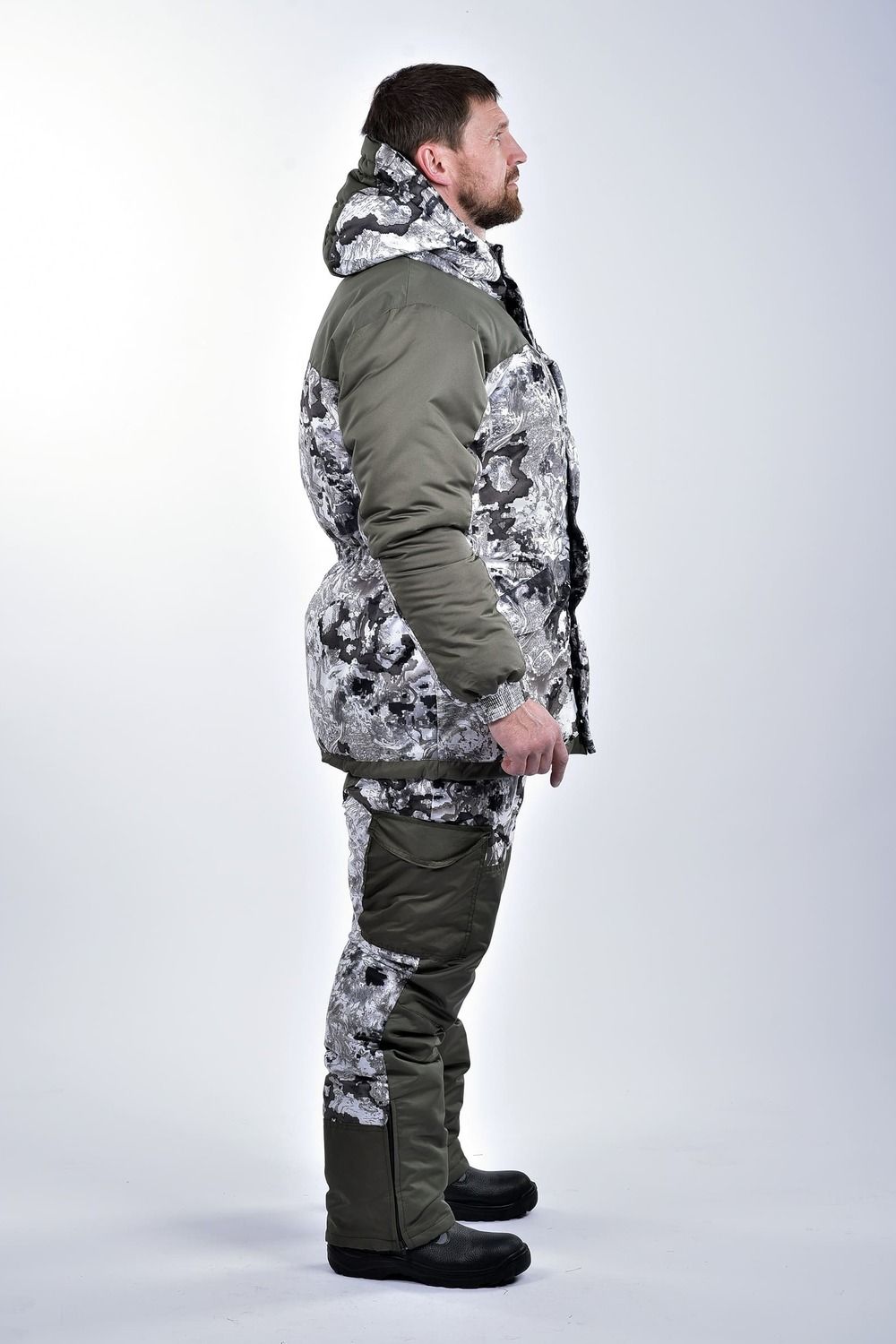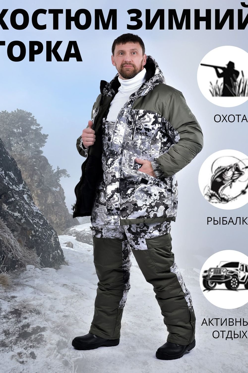 Костюм горка зимний мужской для активного отдыха. Горка зима выполнен из мембранной ткани, которая защитит вас от ветра и дождя. Зимний костюм для рыбалки состоит из куртки и полукомбинезона, утеплитель синтепон 450 гр. Куртка с центральной застежкой на молнию, с ветрозащитной планкой, застегивающаяся на шесть канадских пуговиц. Штаны дополнены двумя карманами и манжетами на резинке, чтобы обеспечить надежное прилегание и не допускать попадание влаги и грязи. Костюм зимний мужской Горка - отличный вариант спортивной одежды для активного отдыха рыбалки и охоты. Костюм туристический это еще и универсальный подарок мужчине на любой праздник Новый Год, 23 Февраля. Куртка с центральной застежкой на молнию, с ветрозащитной планкой, застегивающаяся на шесть канадских пуговиц. На груди прорезные карманы на молнии. Два нижних накладных кармана с фигурным клапаном. По линии талии находится кулиса. Капюшон регулируется кулисами и фиксатором. Рукава с фигурными налокотниками и трикотажными манжетами, по линии локтя кулиса, выше расположены накладные карманы с фигурными клапанами. По низу куртки, для регулировки объема, предусмотрена кулиса.