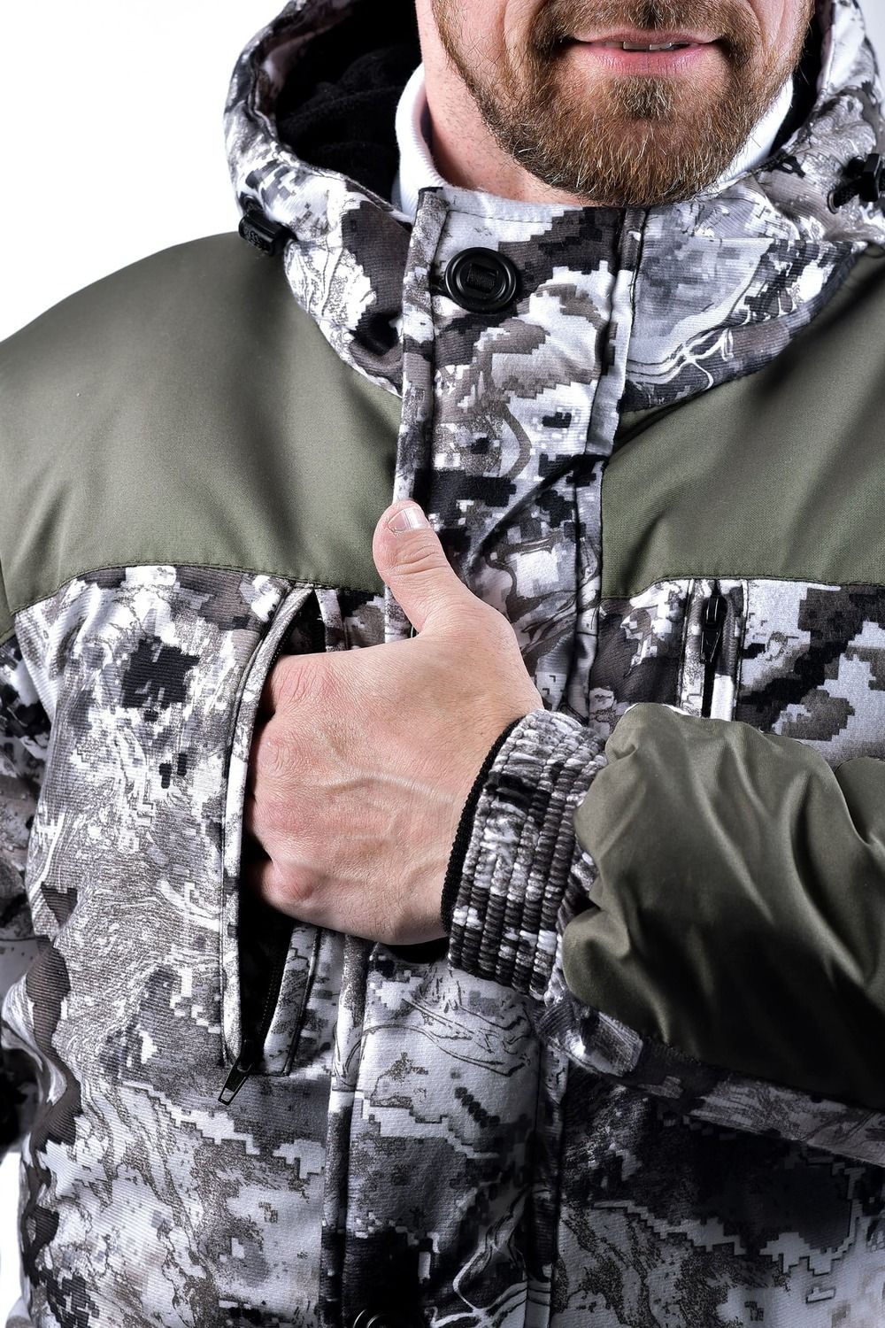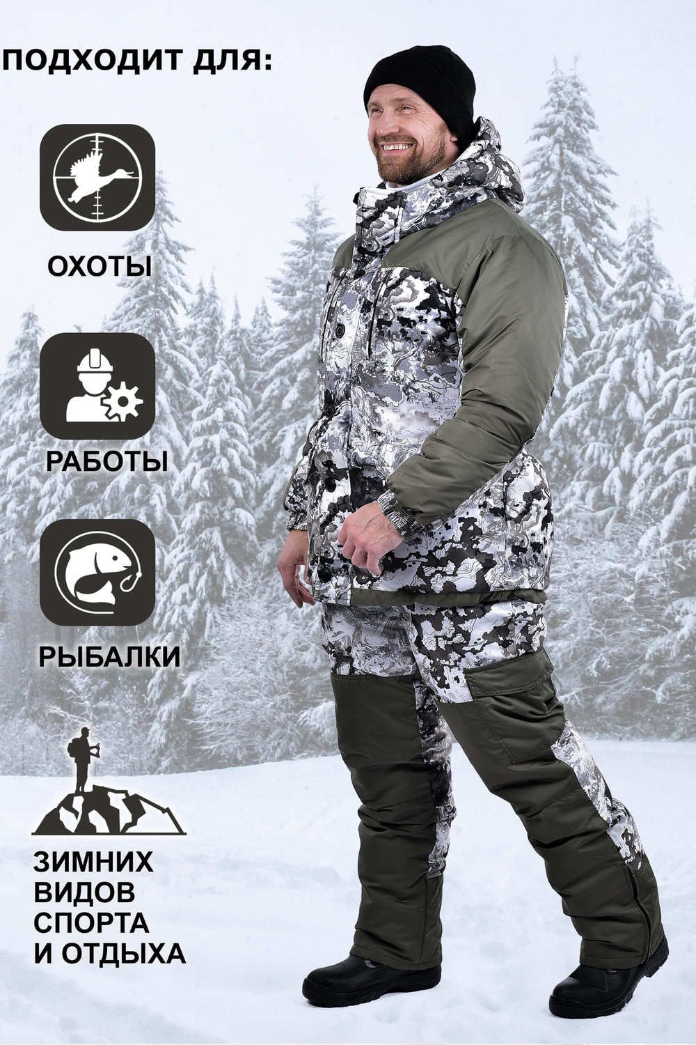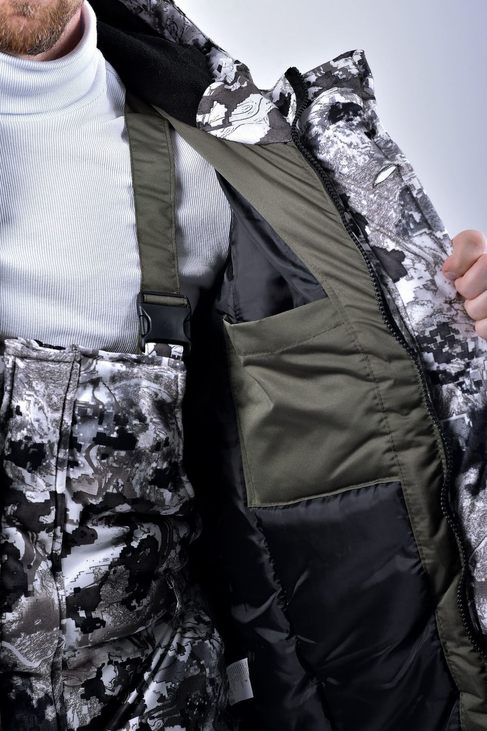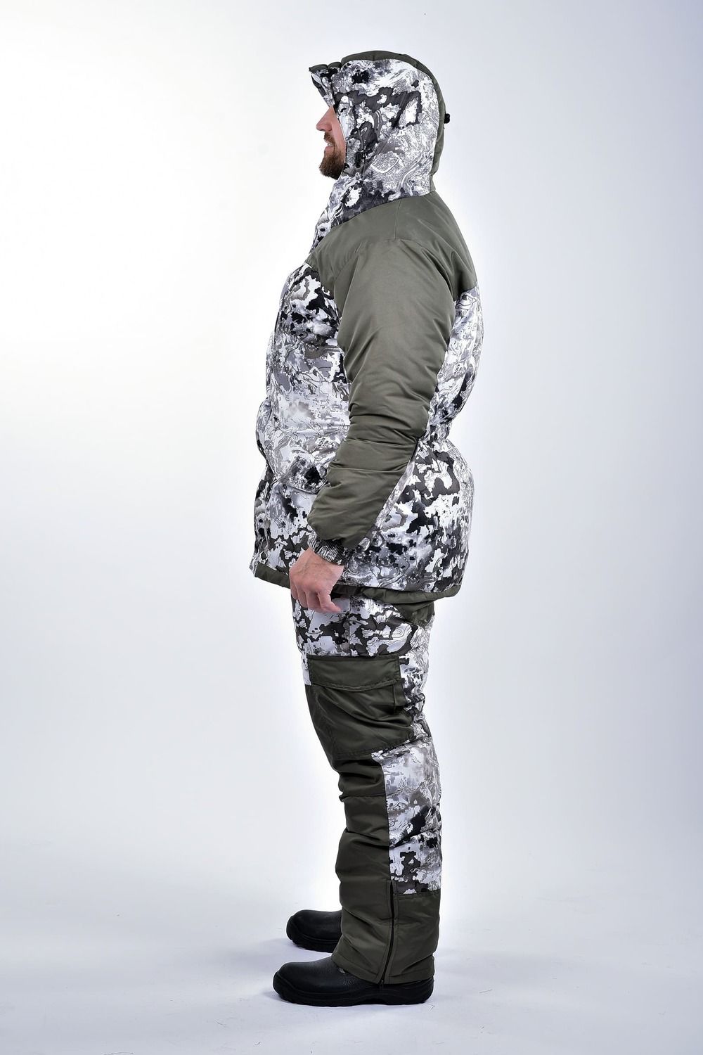 Костюм горка зимний мужской для активного отдыха. Горка зима выполнен из мембранной ткани, которая защитит вас от ветра и дождя. Зимний костюм для рыбалки состоит из куртки и полукомбинезона, утеплитель синтепон 450 гр. Куртка с центральной застежкой на молнию, с ветрозащитной планкой, застегивающаяся на шесть канадских пуговиц. Штаны дополнены двумя карманами и манжетами на резинке, чтобы обеспечить надежное прилегание и не допускать попадание влаги и грязи. Костюм зимний мужской Горка - отличный вариант спортивной одежды для активного отдыха рыбалки и охоты. Костюм туристический это еще и универсальный подарок мужчине на любой праздник Новый Год, 23 Февраля. Куртка с центральной застежкой на молнию, с ветрозащитной планкой, застегивающаяся на шесть канадских пуговиц. На груди прорезные карманы на молнии. Два нижних накладных кармана с фигурным клапаном. По линии талии находится кулиса. Капюшон регулируется кулисами и фиксатором. Рукава с фигурными налокотниками и трикотажными манжетами, по линии локтя кулиса, выше расположены накладные карманы с фигурными клапанами. По низу куртки, для регулировки объема, предусмотрена кулиса.