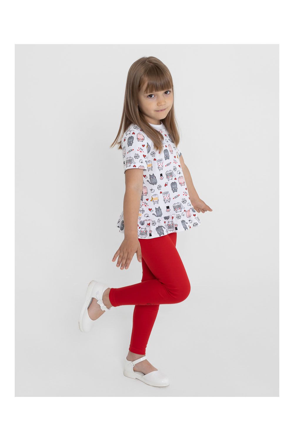 Костюм "Тиа" для девочек, состоящий из футболки и лосин, предназначен для летней прогулки. Отличный вариант на каждый день.Лосины оформлены принтом-шелкография на ткани. Округлый ворот футболки, низ футболки с баской, которая придаёт нежность и лёгкость. Лосины на резинке.