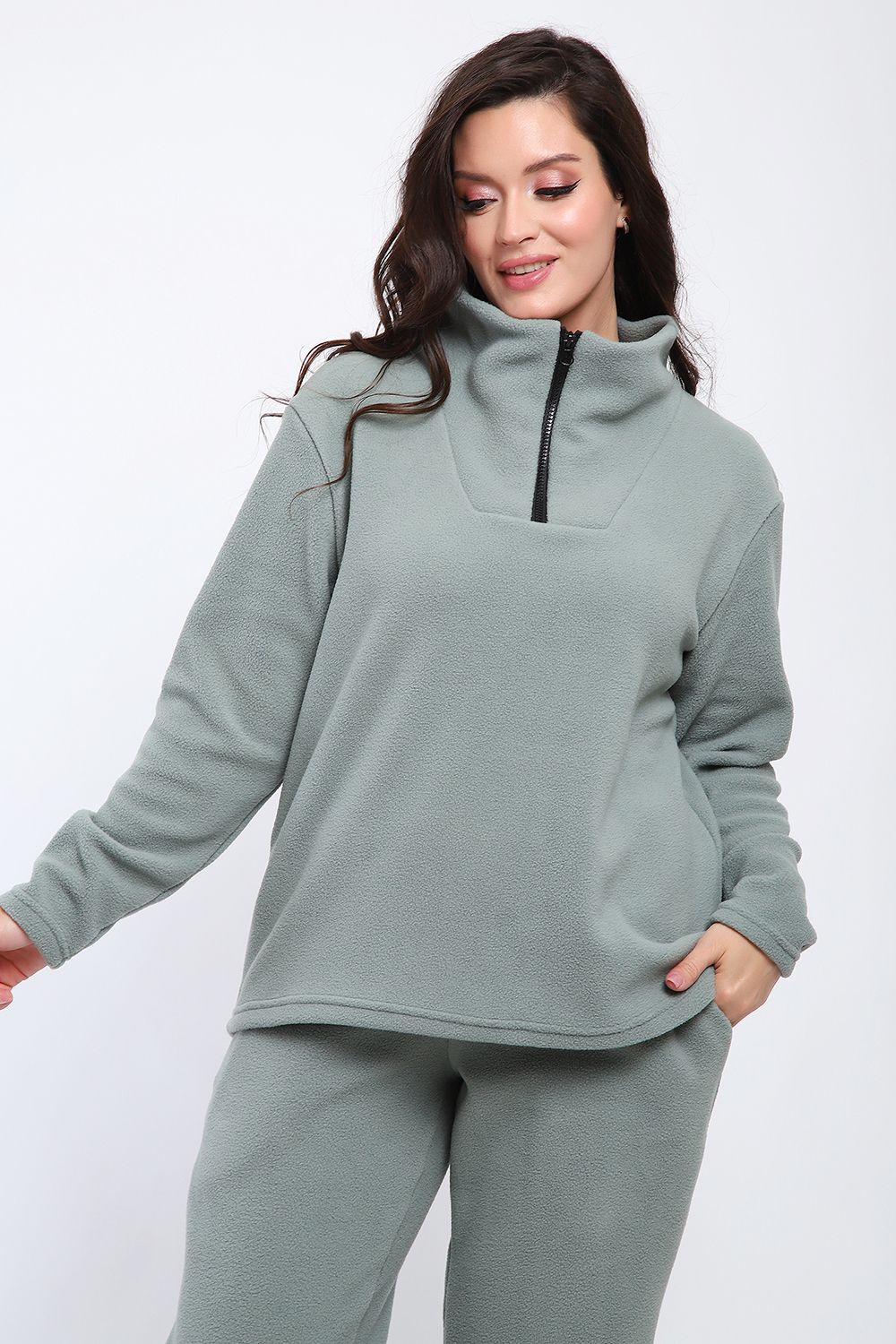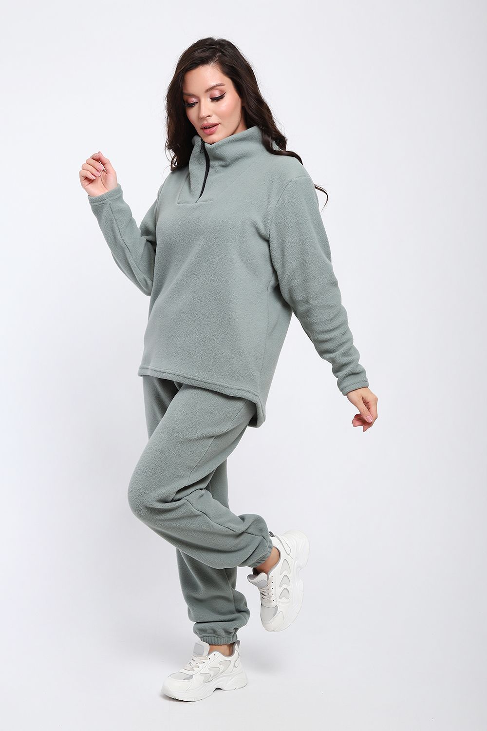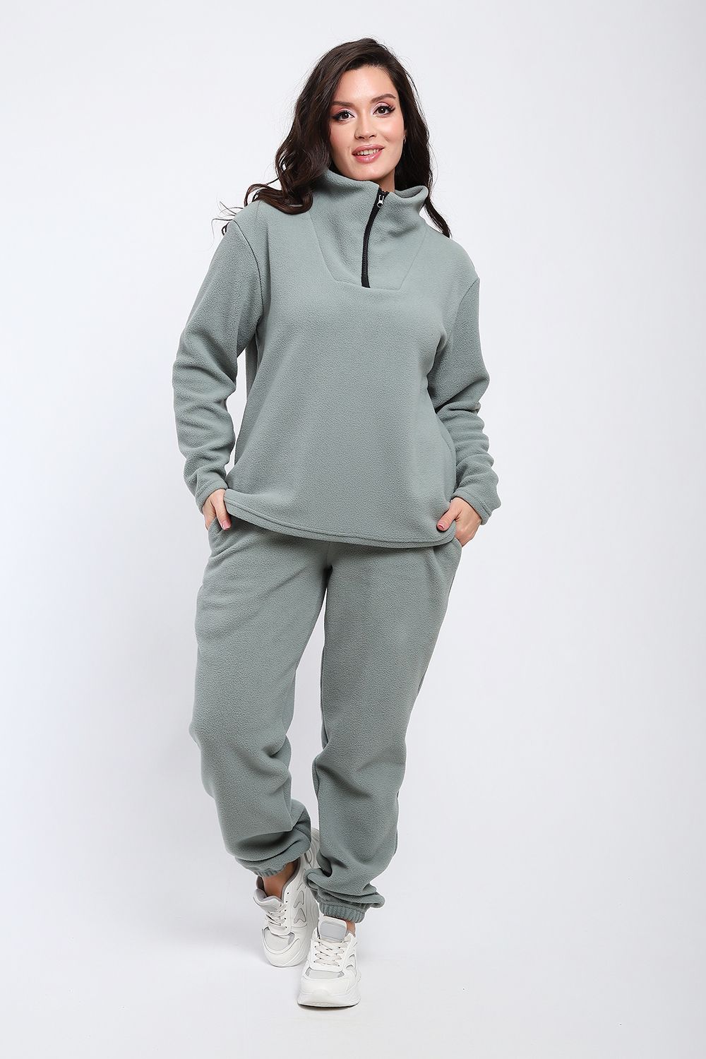 Костюм женский флисовый состоит из толстовки и брюк джогеров. Теплое, износостойкое полотно, сохраняет форму и цвет даже в процессе активной носки и частых стирок. Утепленный свитшот с горловиной-стойкой на молнии, комфортно садится по фигуре, подходит в качестве повседневной одежды, утепленного нательного белья. Костюм из флиса идеальное решение на осенне зимний сезон, для активных людей, удобное решения для занятий спортом. Воздухопроницаемая, дышащая, быстросохнущая ткань. В любом возрасте утепленный костюм станет любимым предметом гардероба, незаменимое изделие при катаниях на лыжах, снегоходах - оставаться в тепле, при этом костюм легкий, не сковывает движений, что так важно при ведении активного образа жизни.