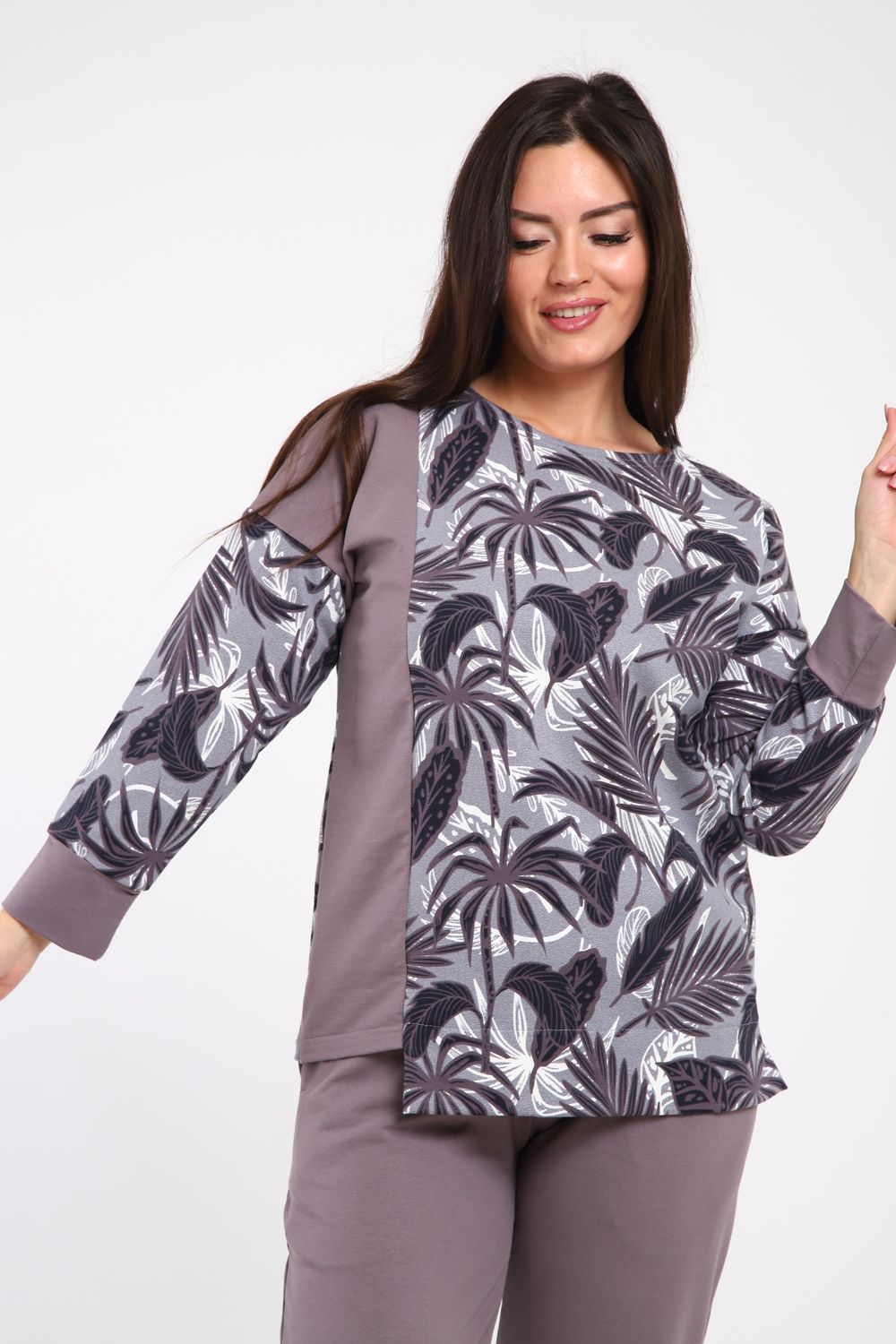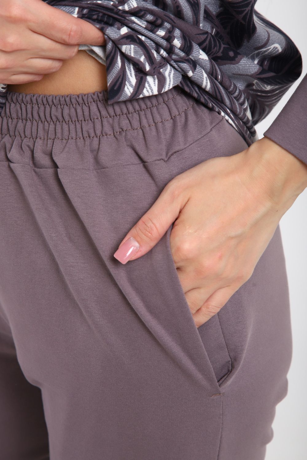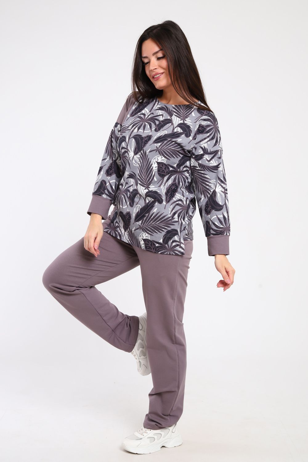 Комбинированный костюм оригинально смотрится на любой фигуре, с легкостью совмещая в себе элегантность и комфорт. Джемпер со спущенным рукавом. Брюки прямого покроя с карманами, посадка средняя. Трикотажный женский костюм предназначен для девушек, ценящих комфорт, удобство. Подойдет для прогулок в кино с друзьями, путешествий, работы в офисе, праздника, а также как вечерний модный образ на свидание.