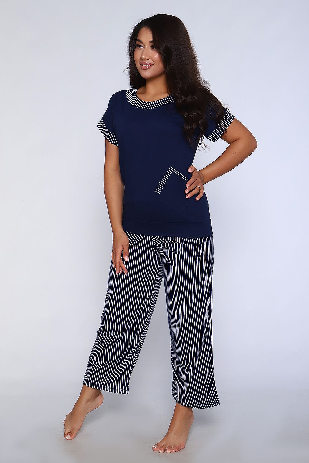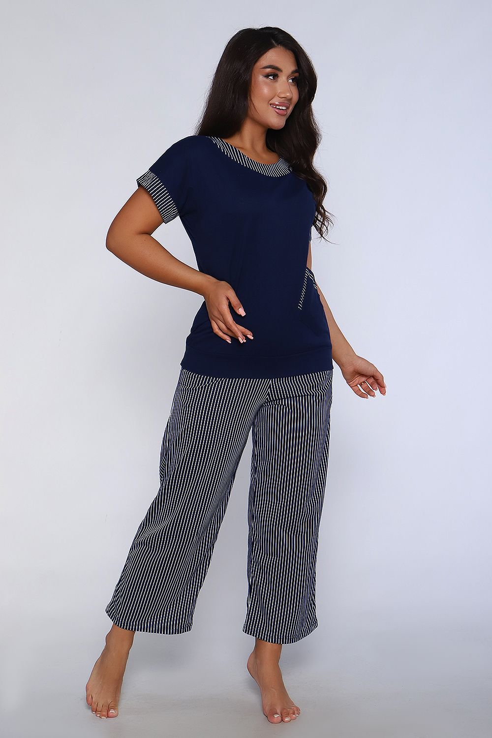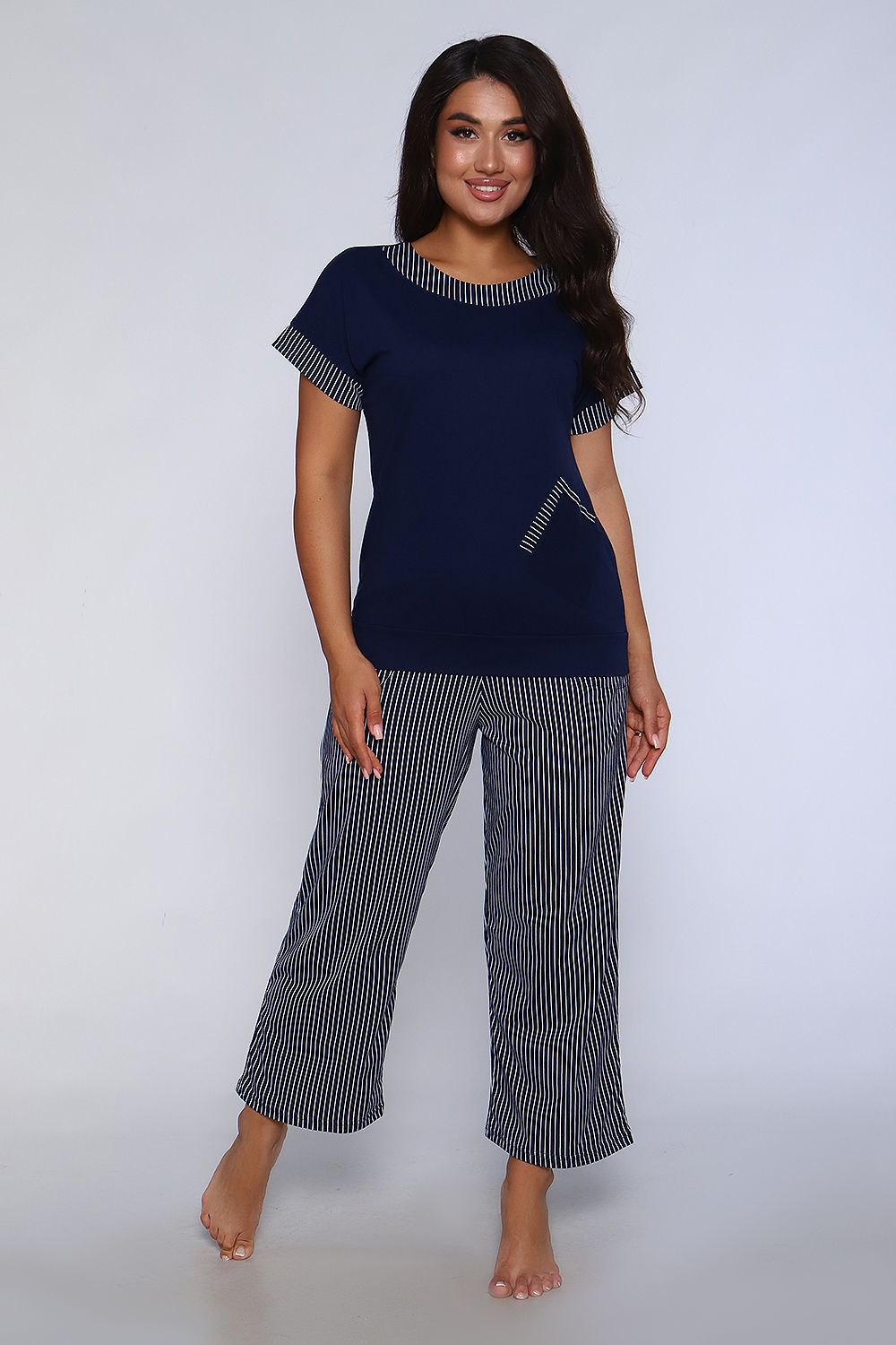 Хотите качественный и стильный костюм для дома? Тогда этот новый комплект со штанами и кофтой с коротким рукавом – идеальный выбор для вас! Этот костюм выполнен из натурального хлопка, который позволят вашей коже дышать в любое время года. Состоящая из штанов и футболки дизайн подчеркнет ваш стиль и подойдет для любого настроения – будь то классический или молодежный. Популярный полосатый дизайн позволят подобрать костюм для любой женщины – от пышных до маленьких размеров. Этот костюм – отличный выбор для дома, дачи или для ночного отдыха.