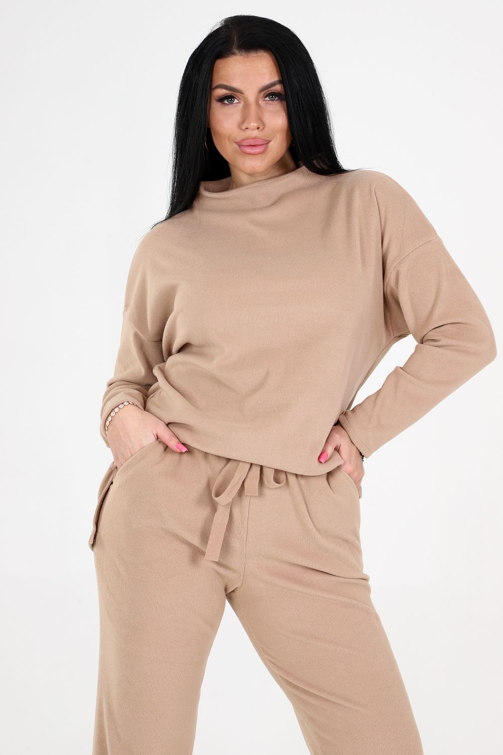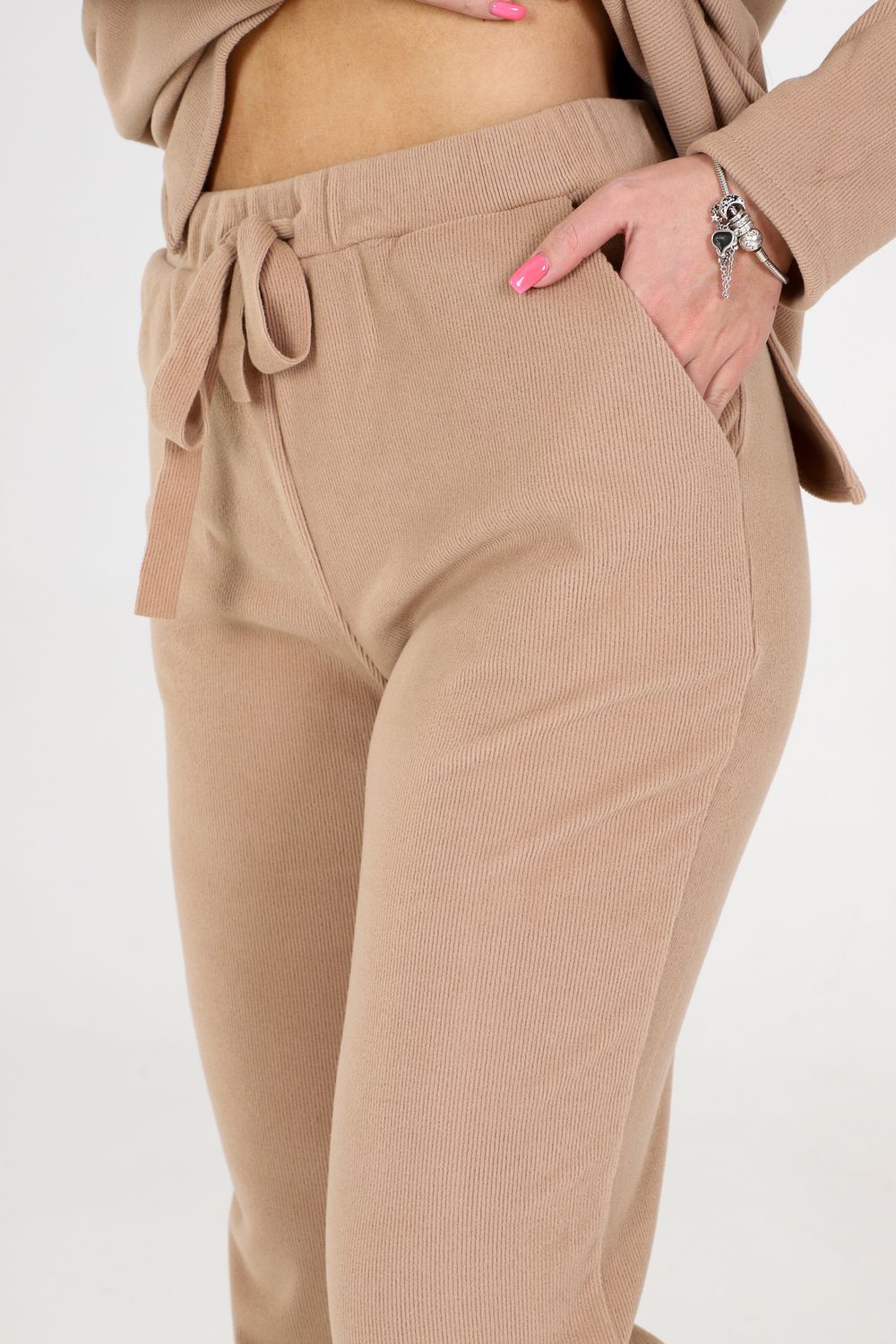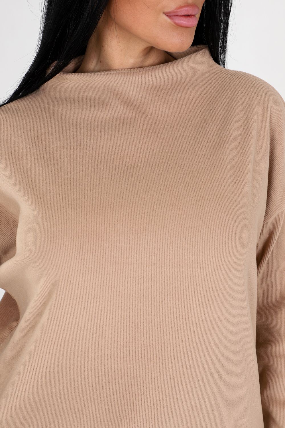 Костюм женский в рубчик выполнен из высококачественного материала лапша, который отличается мягкостью, приятной фактурой и долговечностью.