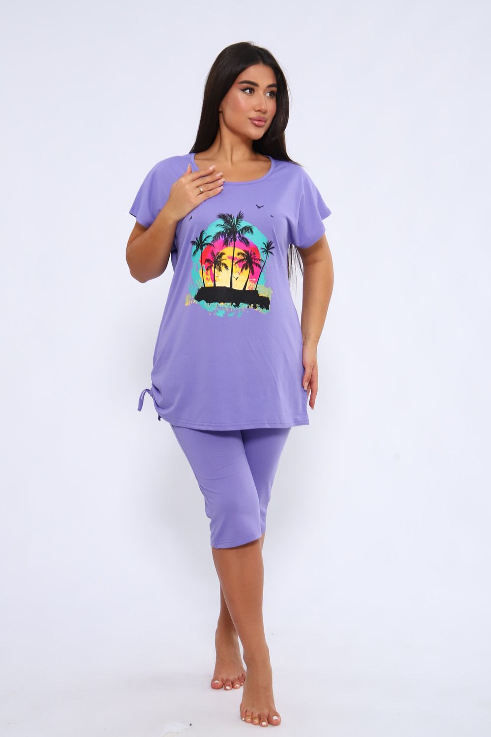 Представляем вашему вниманию женский домашний спортивный костюм, который идеально подходит для комфортного времяпрепровождения дома и на даче. Этот комплект включает в себя удобную футболку и стильные бриджи, которые глубоко заботятся о вашем комфорте. Изготовленный из мягкого и дышащего материала, он отлично подходит для расслабления и активного отдыха. Футболка обладает лаконичным дизайном, что добавляет универсальности, а бриджи прекрасно сочетаются с ней, создавая непринужденный ансамбль. Такой набор станет идеальным выбором в качестве домашней пижамы, позволяя вам чувствовать себя уютно и привлекательно.