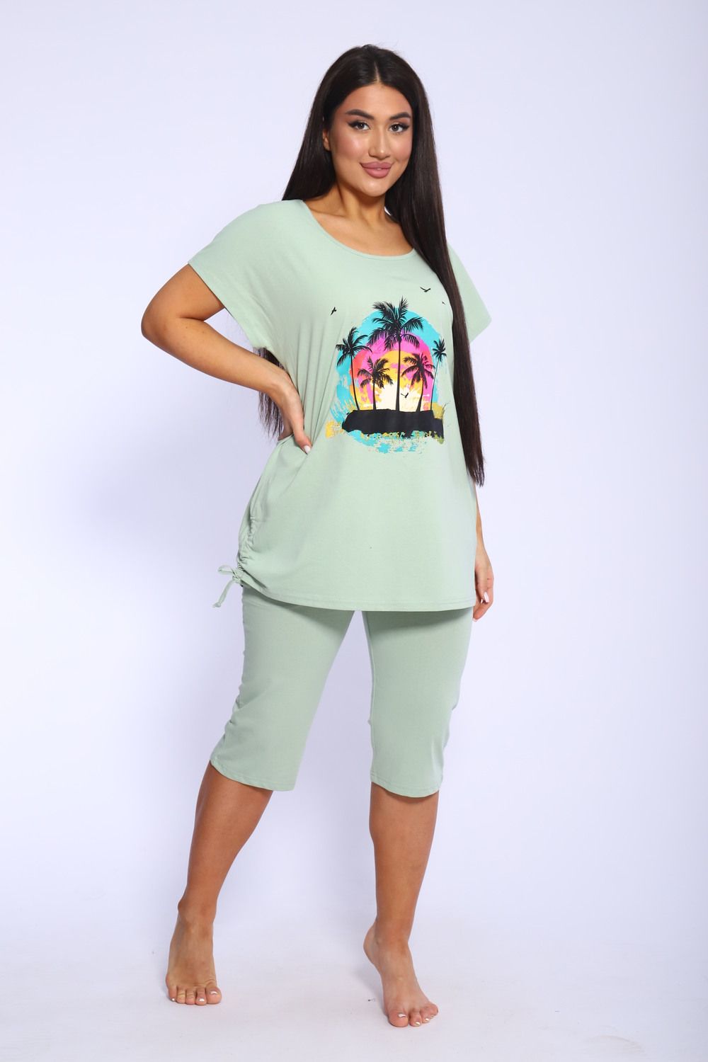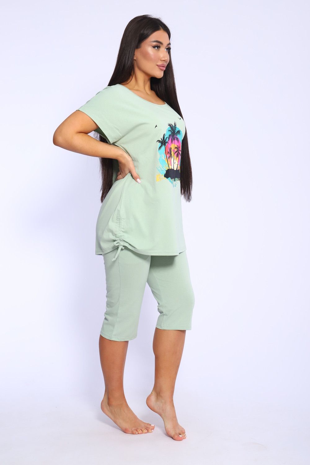 Представляем вашему вниманию женский домашний спортивный костюм, который идеально подходит для комфортного времяпрепровождения дома и на даче. Этот комплект включает в себя удобную футболку и стильные бриджи, которые глубоко заботятся о вашем комфорте. Изготовленный из мягкого и дышащего материала, он отлично подходит для расслабления и активного отдыха. Футболка обладает лаконичным дизайном, что добавляет универсальности, а бриджи прекрасно сочетаются с ней, создавая непринужденный ансамбль. Такой набор станет идеальным выбором в качестве домашней пижамы, позволяя вам чувствовать себя уютно и привлекательно.