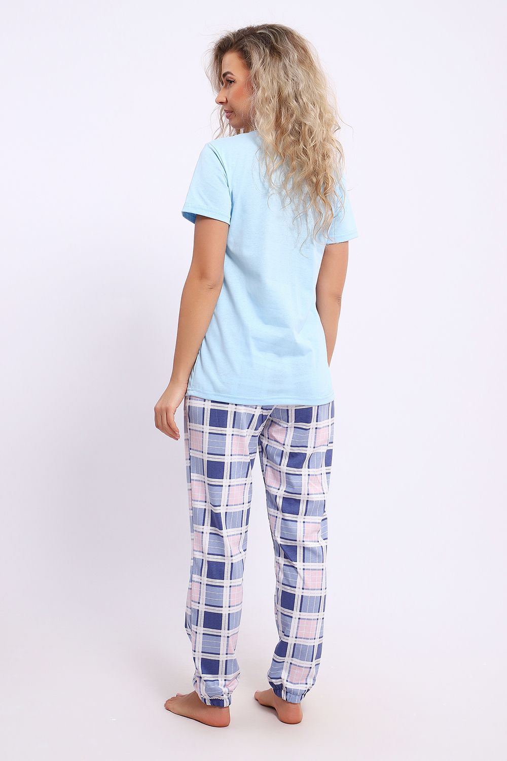 Костюм футболка + брюки в клетку из натуральной хлопковой кулирки. Очень нежное сочетание цветов - изделие можно использовать и как домашний костюм и как пижаму для сна.