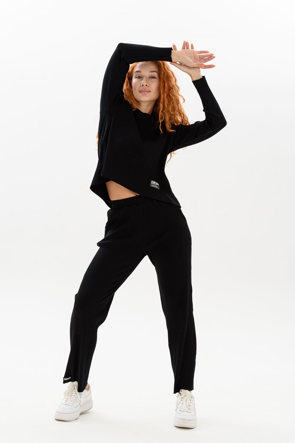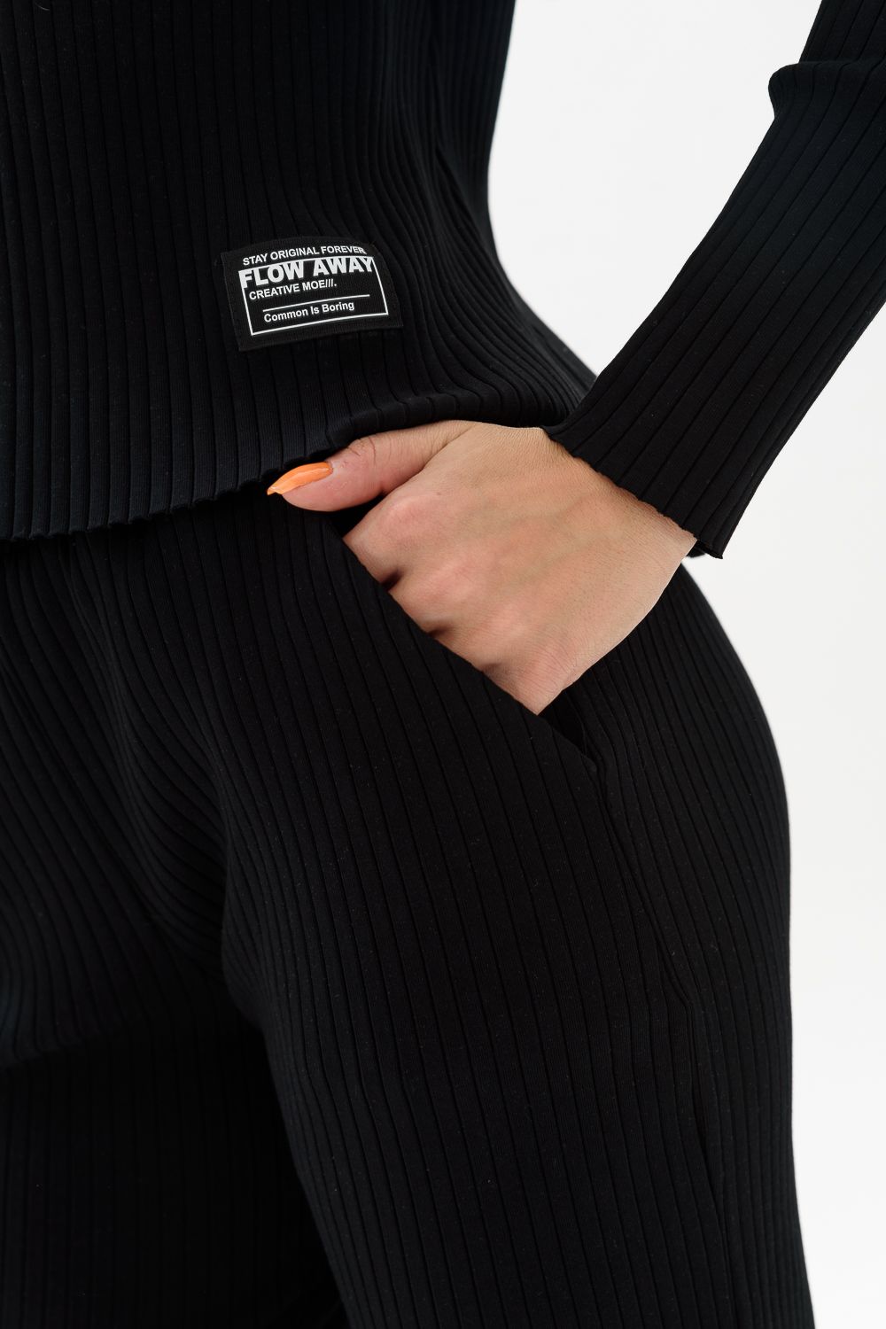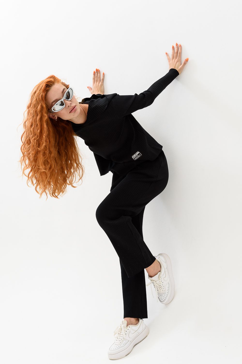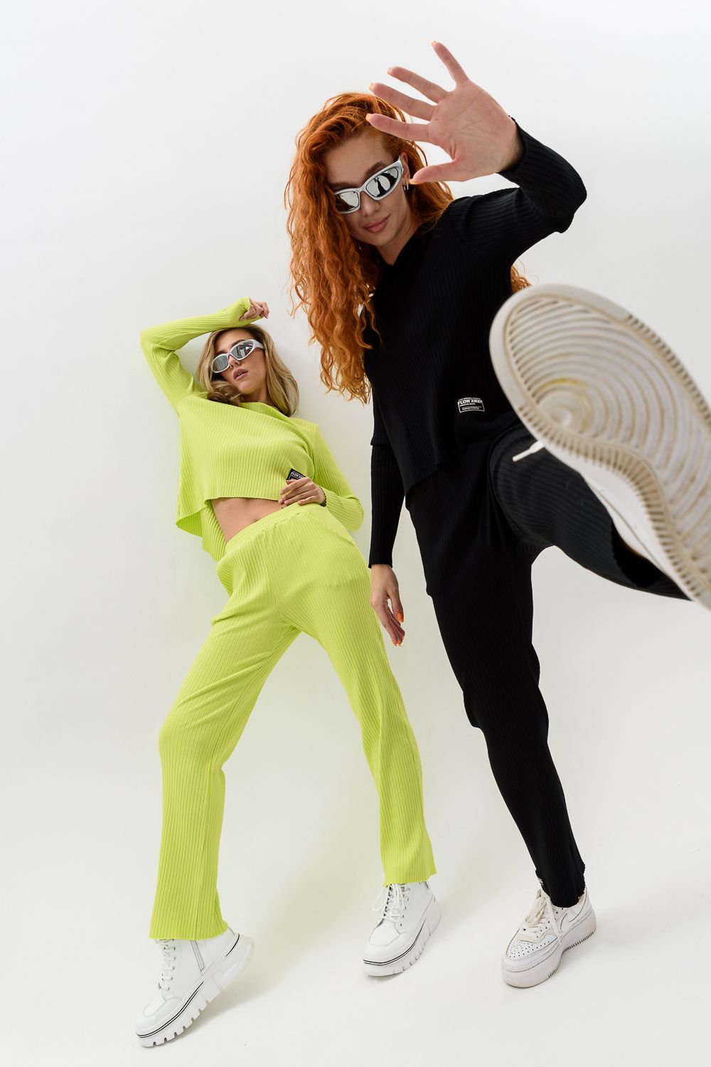 Спортивный женский костюм в рубчик оверсайз из нежной трикотажной ткани "лапша" не колется, не мнется и не вытягивается в коленях. Брючный костюм для женщин комфортный в носке и не прихотлив в уходе. В однотонный костюм лапша входит: широкие брюки палаццо с высокой посадкой, свободная однотонная кофта с длинным рукавом и капюшоном. Костюм идеально подходит для прогулок, путешествий, занятий спортом, встреч с друзьями, в качестве домашней одежды. Ткань обладает хорошей растяжимостью.