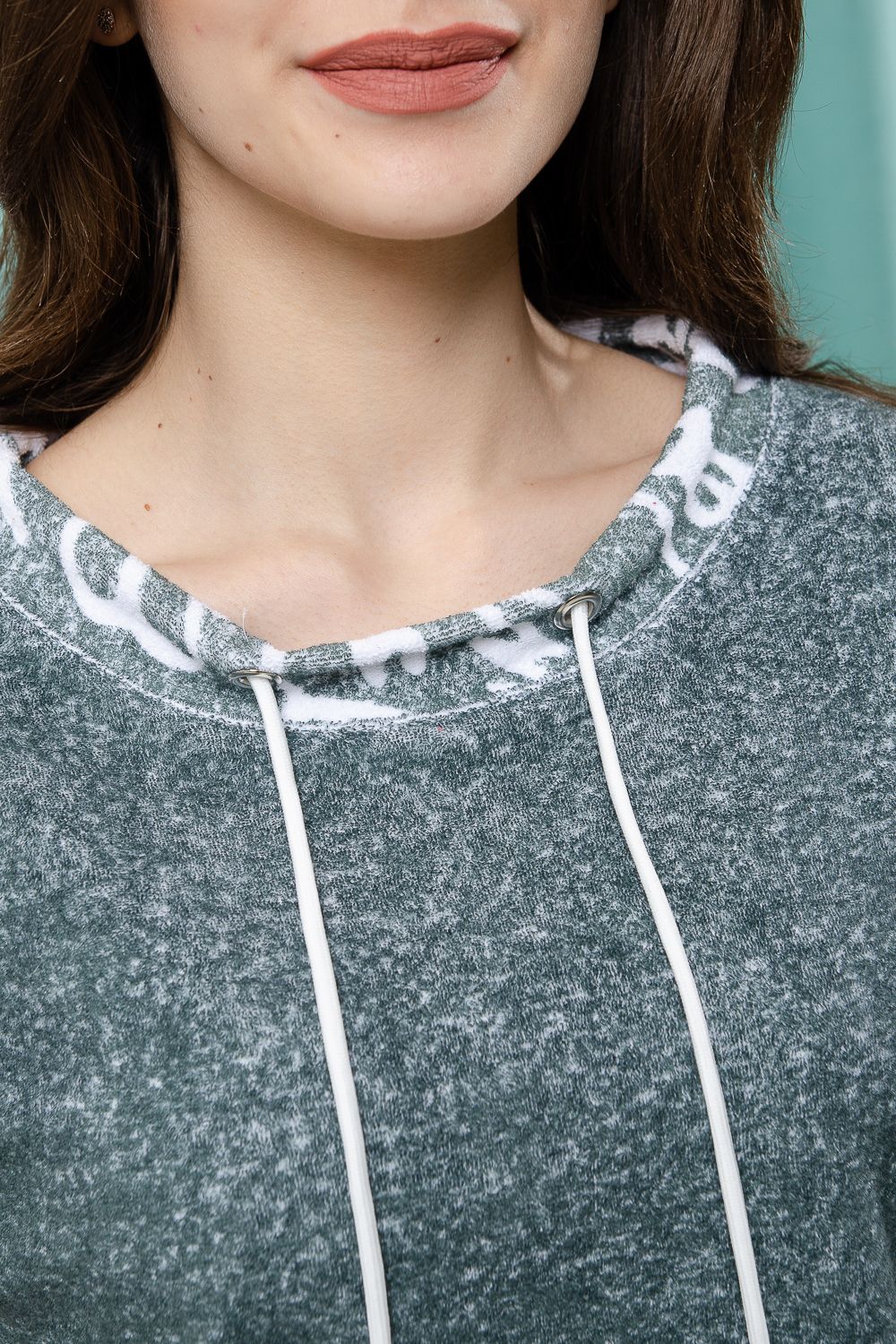 Костюм состоит из туники и брюк. Туника прямого силуэта, со спущенной проймой, с округлой горловиной. Рукав длинной 3/4, со вставкой из отделочного полотна вдоль рукава. Горловина обработана обтачкой из отделочного полотна, со шнуром. Брюки прямые, свободные, на поясе, с боковыми накладными карманами.