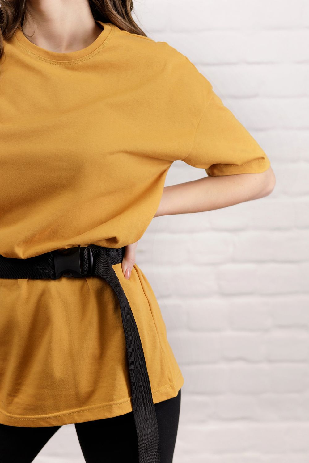 Женский костюм с велосипедками - самая популярная модель этого года. В костюм женский входит футболка оверсайз в разных оттенках, черные велосипедки и стильный черный пояс с застежкой. Футболку женскую можно использовать как самостоятельный элемент Вашего гардероба с джинсами, спортивным костюмом. Футболка изготовлена из кулирки 100% хлопок. Низ - облегающие плотные черные бриджи с высокой посадкой. Велосипедки изготовлены из кулирки с добавлением эластана.