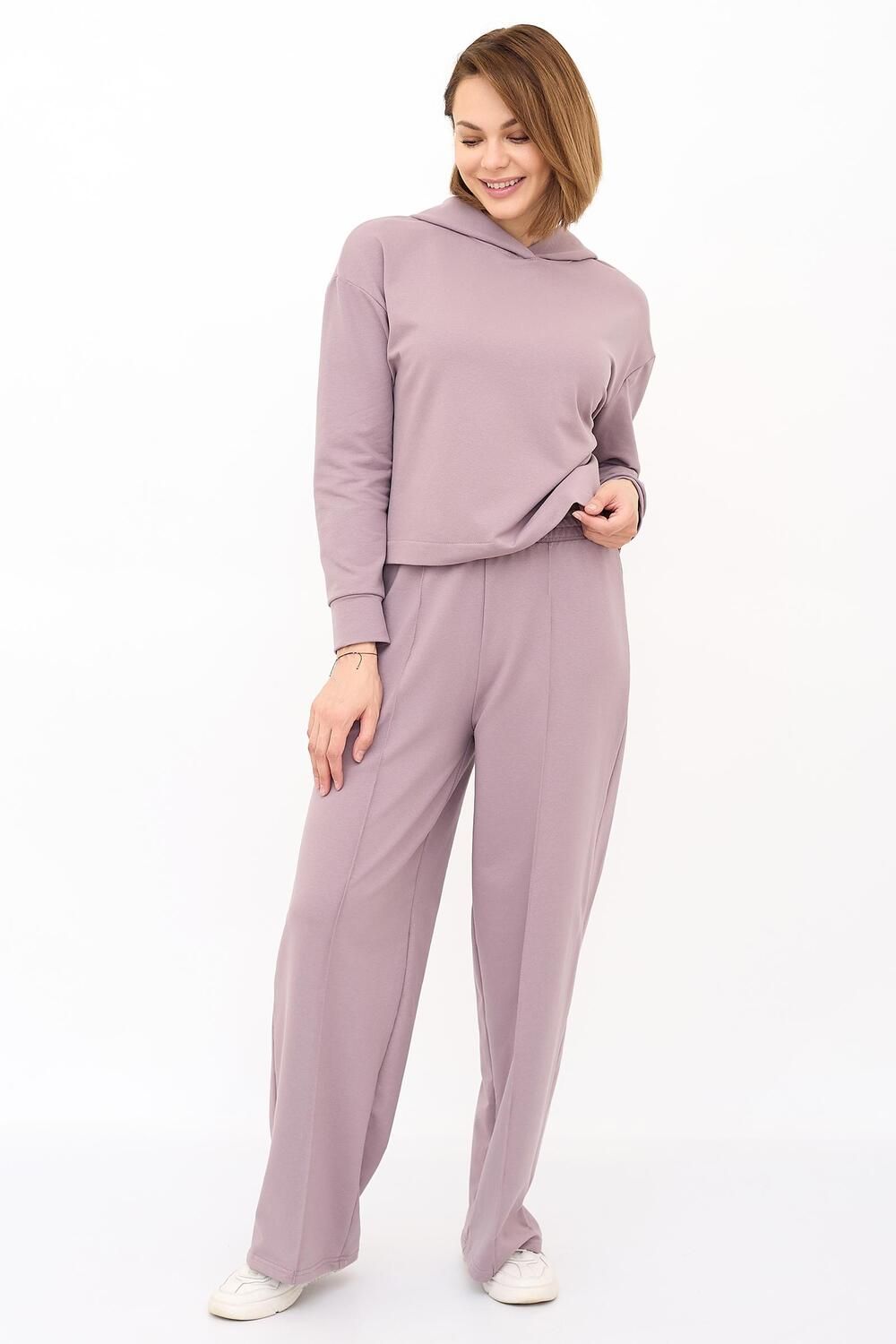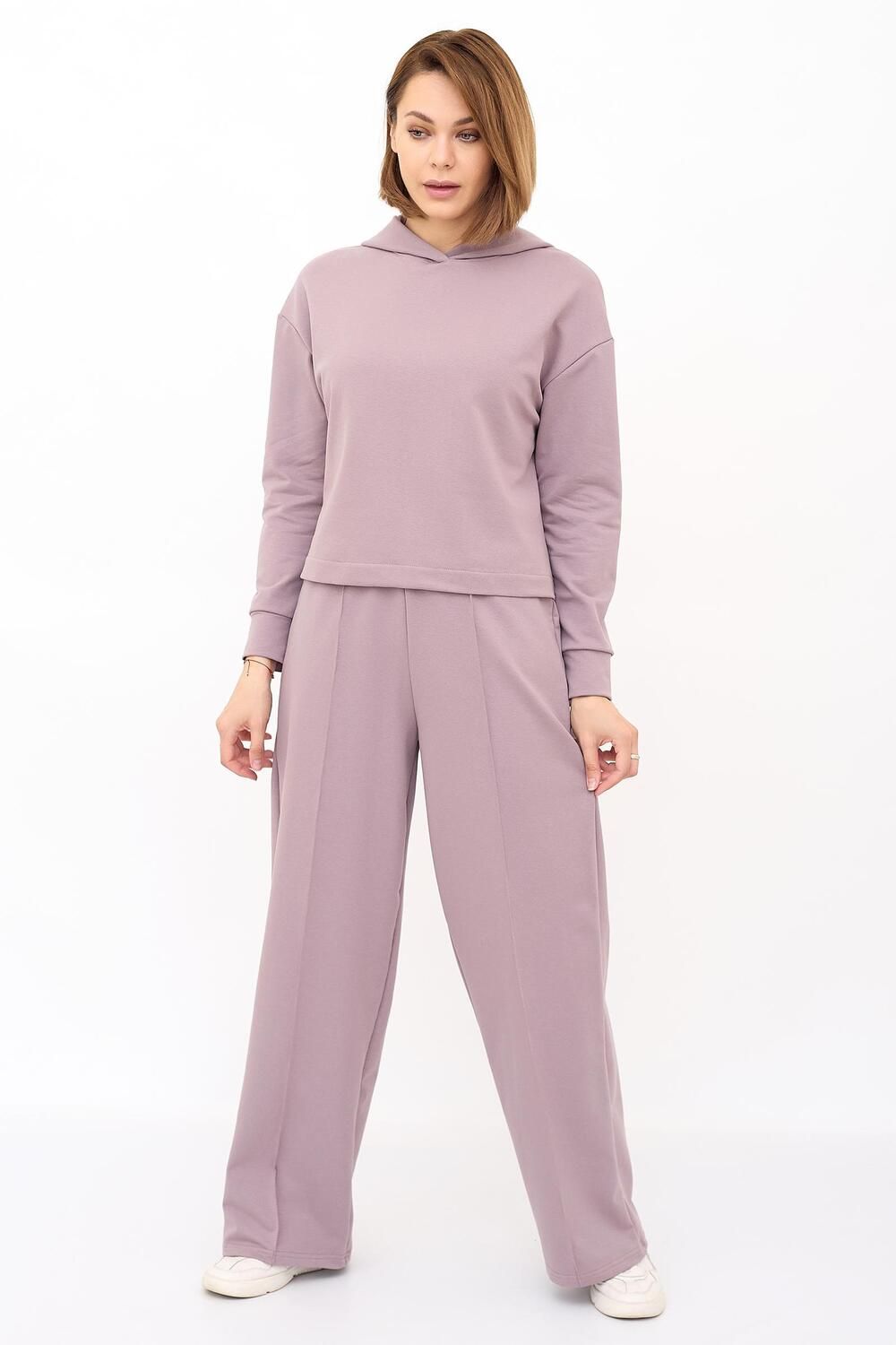 Костюм женский спортивный с капюшоном состоит из худи укороченного и брюк в форме труб. Стильный женский костюм от бренда Lika Dress, с укороченным свитшотом и широкими брюками поможет Вам быть в тренде этого сезона! Брюки палаццо подходят для любого типа фигуры, скрывают ее недостатки и подчеркивают достоинства. Костюм из мягкой кофты c капюшоном и прямыми брюками, прекрасно подойдет под лаконичный офисный стиль, для вечерних и повседневных образов. Костюм из худи и штанов может быть женственным и легким, подойдет для женщин и девушек. Спортивный трикотажный костюм можно сочетать с кроссовками и кедами. Брюки с широкими штанинами из трикотажной ткани очень удобны в качестве повседневной одежды. Костюм двойка или женский спортивный костюм с капюшоном пошит из плотной ткани - футер 2-х нитка.