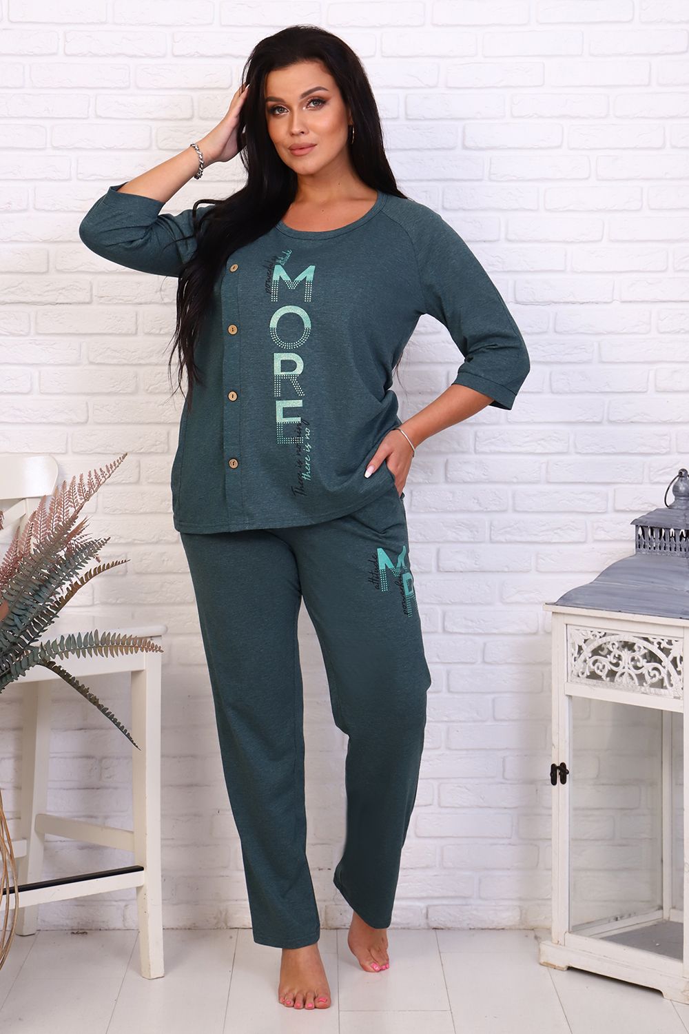 Домашний костюм женский ZIZAF - это идеальный выбор для тех, кто хочет чувствовать себя комфортно и свободно в своем пространстве. Этот комплект состоит из футболки и брюк, которые выполнены из кулирной глади с составом 50% хлопка и 50% полиэстера. Это значит, что он не только удобен в носке, но и долговечен. Комплект одежды женский выполнен в изумрудном цвете, который создает уникальный стиль и выделяет вас среди других. Он подходит для любого сезона года, так как его можно надевать как в теплое время года, так и в холодное. Домашний костюм женский с брюками - это отличный вариант для тех, кто хочет чувствовать себя уверенно и стильно в своей собственной квартире. Он имеет прямой покрой, круглый вырез горловины и декоративные элементы в виде карманов. Эти детали делают костюм более интересным и уникальным. Домашний костюм женский больших размеров - это то, что нужно тем, кто хочет чувствовать себя комфортно и свободно в своих пространствах. Он имеет среднюю посадку, которая обеспечивает максимальную свободу движений. Кроме того, он имеет три четверти рукава, что делает его еще более удобным для носки. Комплект одежды женского пола ZIZAF - это отличный выбор для тех, кто хочет чувствовать себя уверенно и стильно в своей собственной квартире.