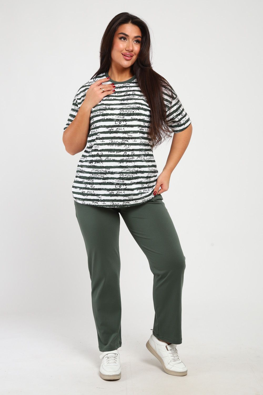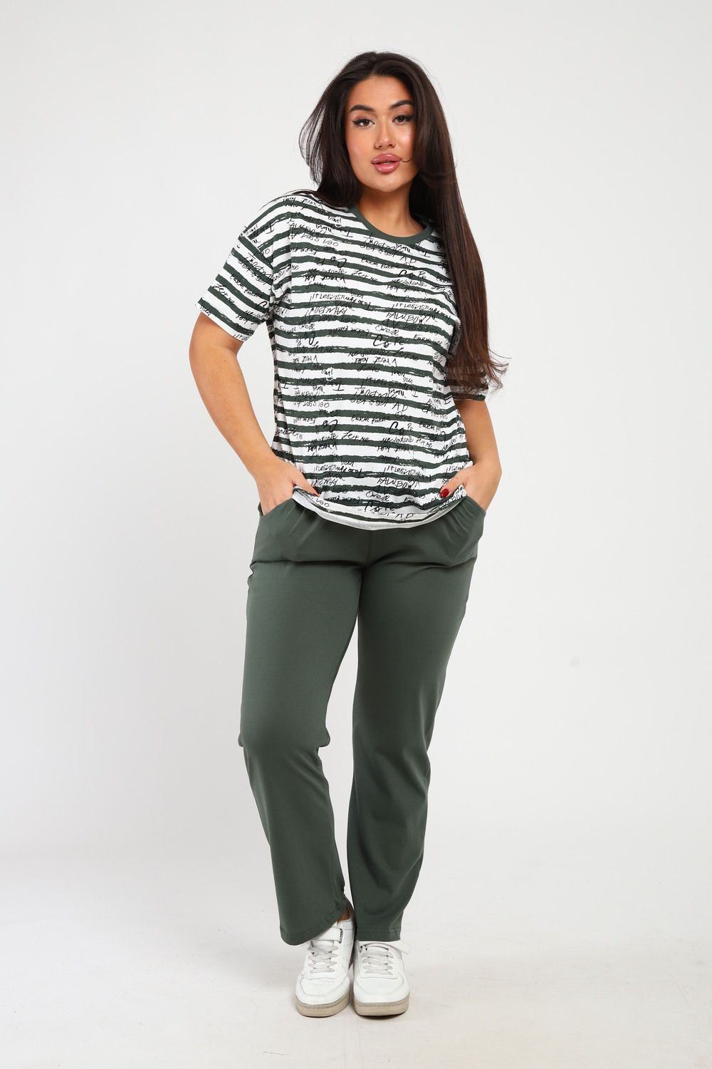 Классический и удобный трикотажный костюм с брюками из легкой хлопковой ткани. В комплекте костюма представлены кофта свободного кроя и брюки универсальной посадки. Костюм - идеальный вариант домашней одежды для женщин, также прекрасно подойдет и для повседневной носки.