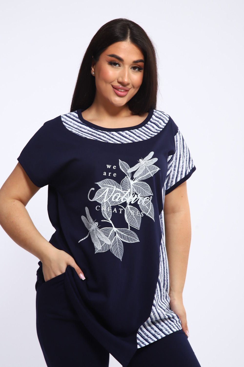 Костюм женский домашний ZIZAF имеет свободный покрой, что позволяет свободно двигаться и чувствовать себя комфортно. Рукава короткие, а вырез горловины круглый, что делает этот костюм еще более удобным для ношения дома.