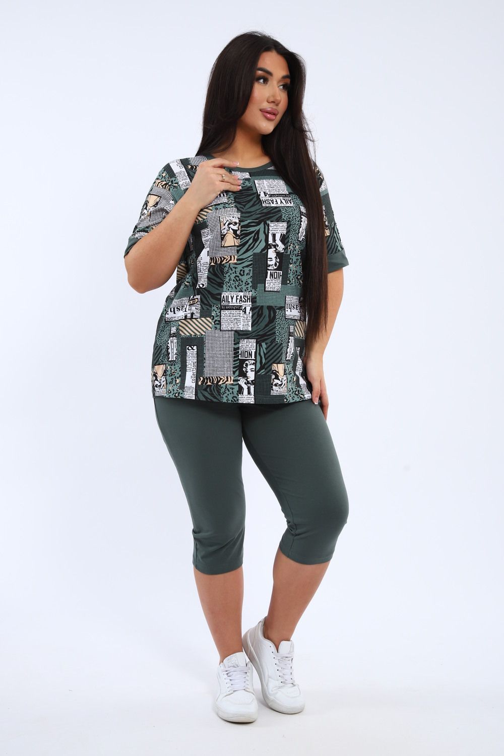 Спешите приобрести наш новый комплект футболки и бриджей. Стильно, удобно, супер модно и смотрится просто бомбически! Вы будете выглядеть на сто процентов модно и современно, плотные прилегающие бриджи и свободная футболка - идеальное сочетание для любого типа фигуры! Не упустите свой шанс заявить о себе и своем особом стиле с нашим новым комплектом футболки и бриджей.