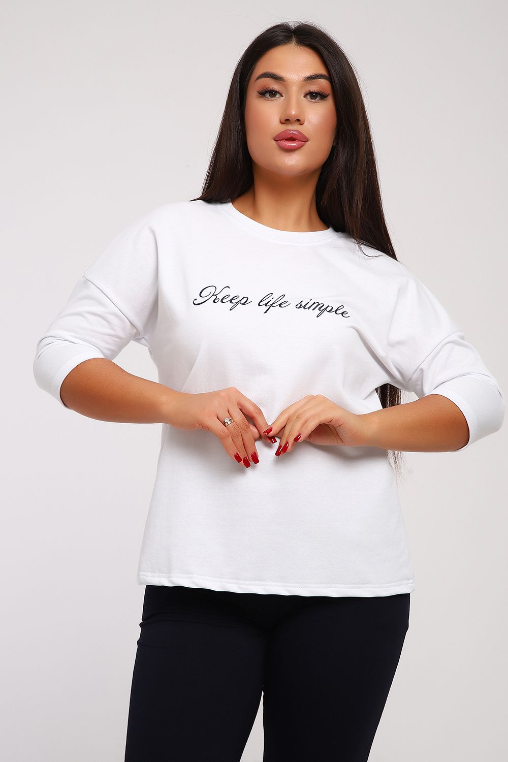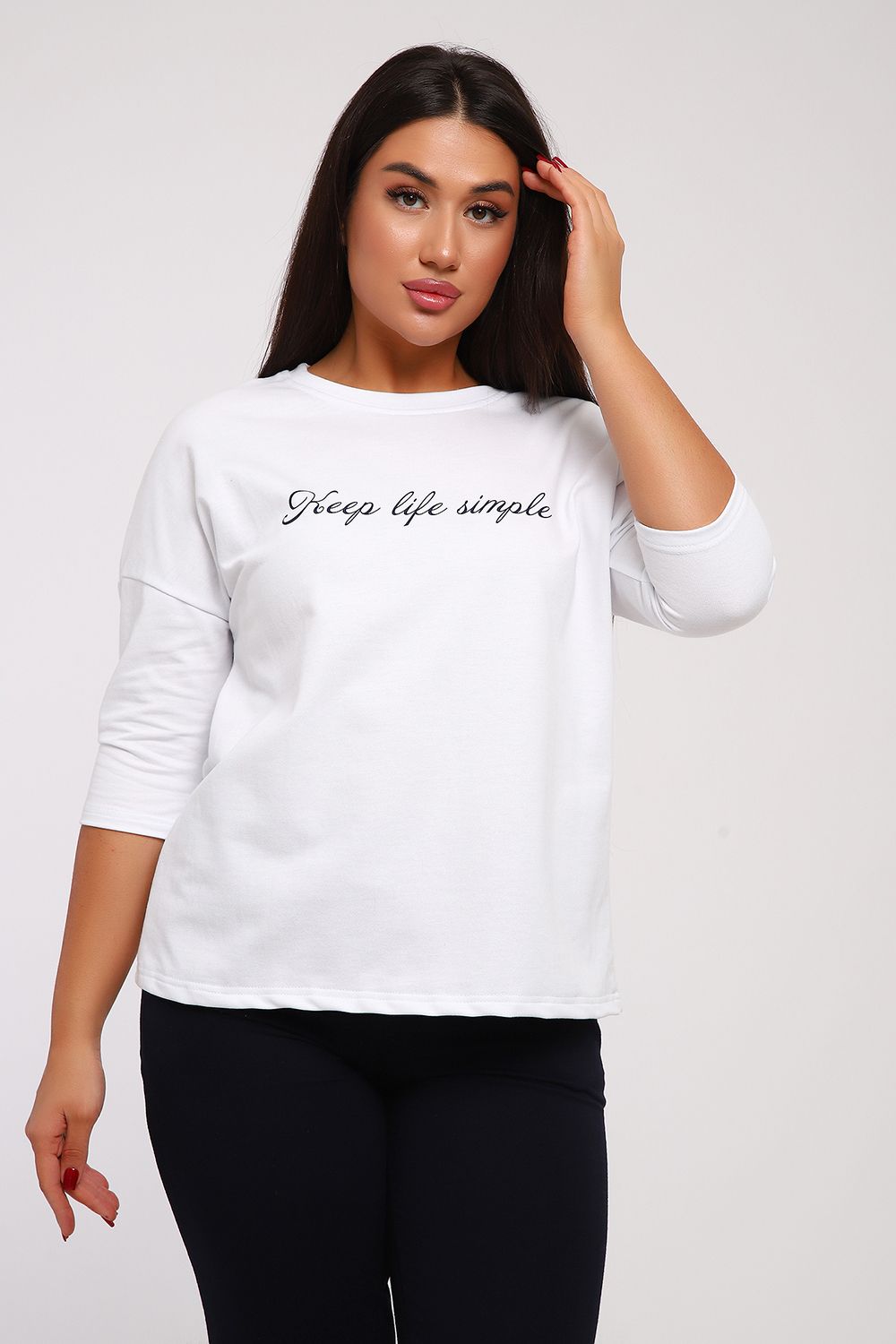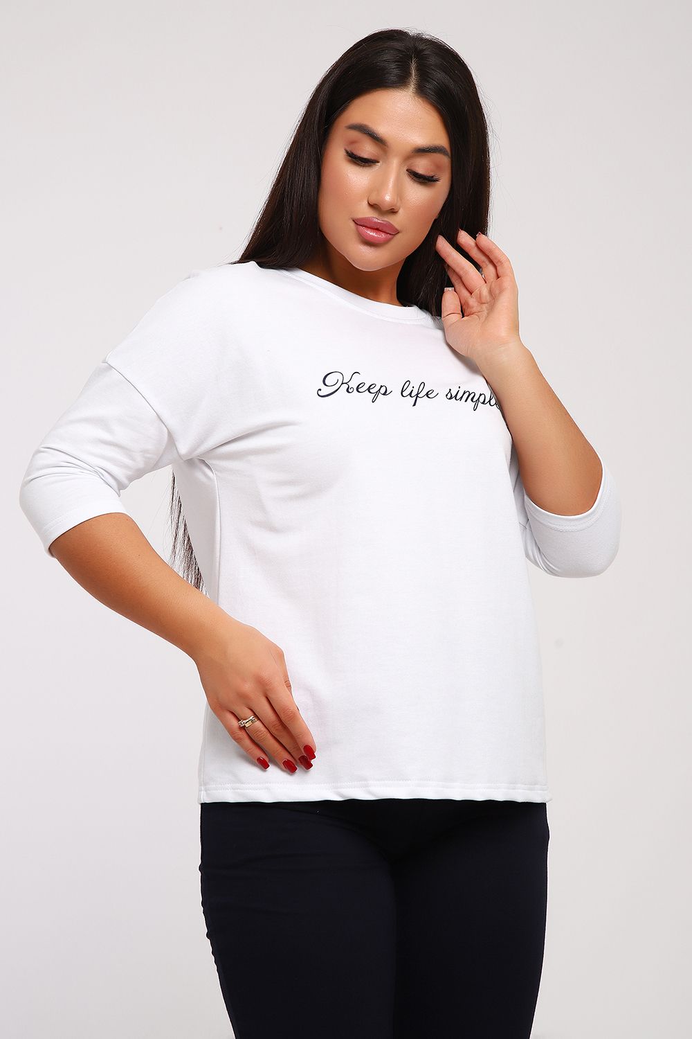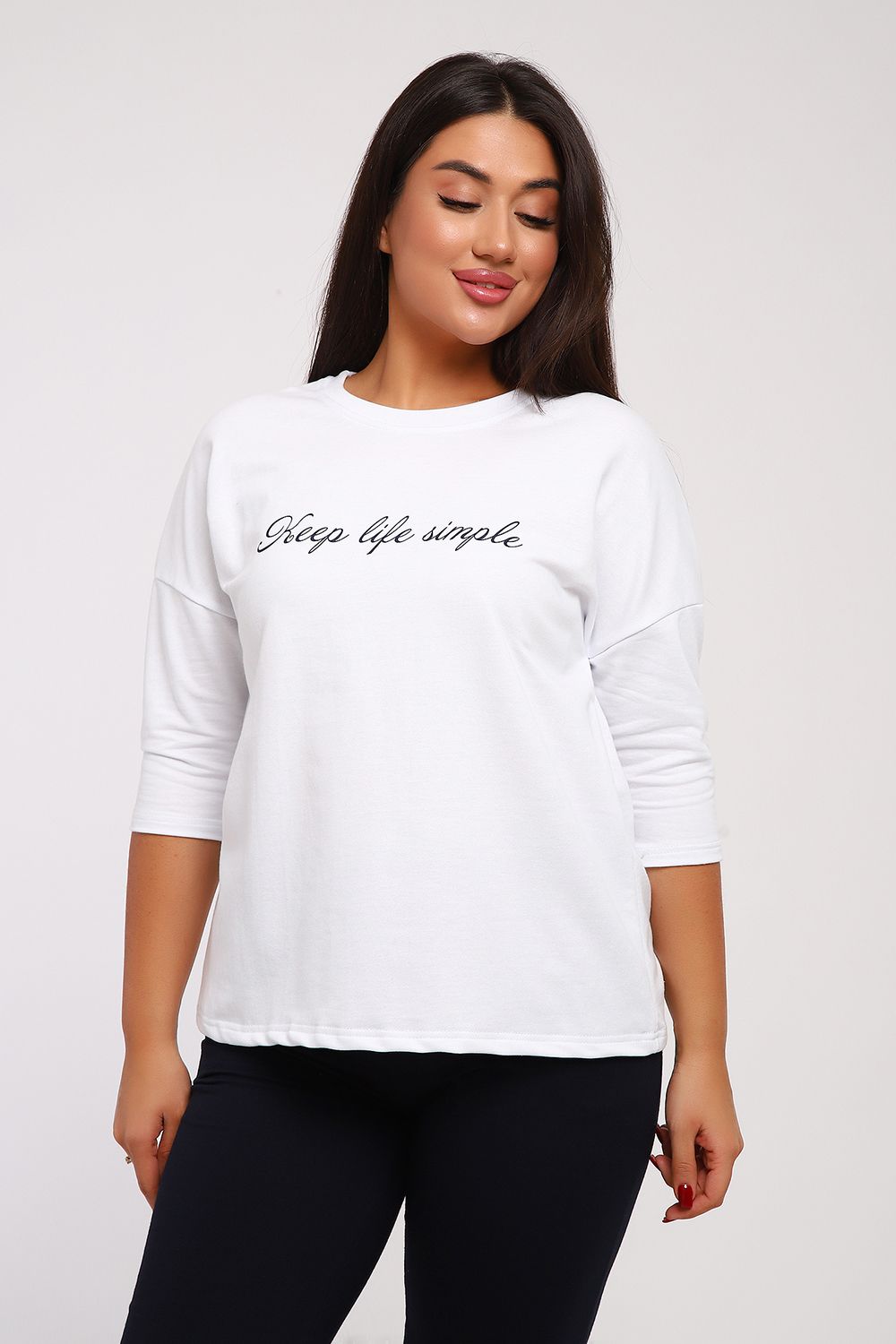 Стильный женский повседневный костюм с брюками из легкой дышащей ткани. Выполнен из мягкого футера двухнитка высокого качества. Классические прямые брюки с высокой посадкой хорошо сядут на любой тип фигуры. Футболка со спущенным рукавом придаст вам женственность и легкость. При выборе лучше ориентироваться на российские размеры, ну а если хотите по свободнее, то берите на размер больше.
