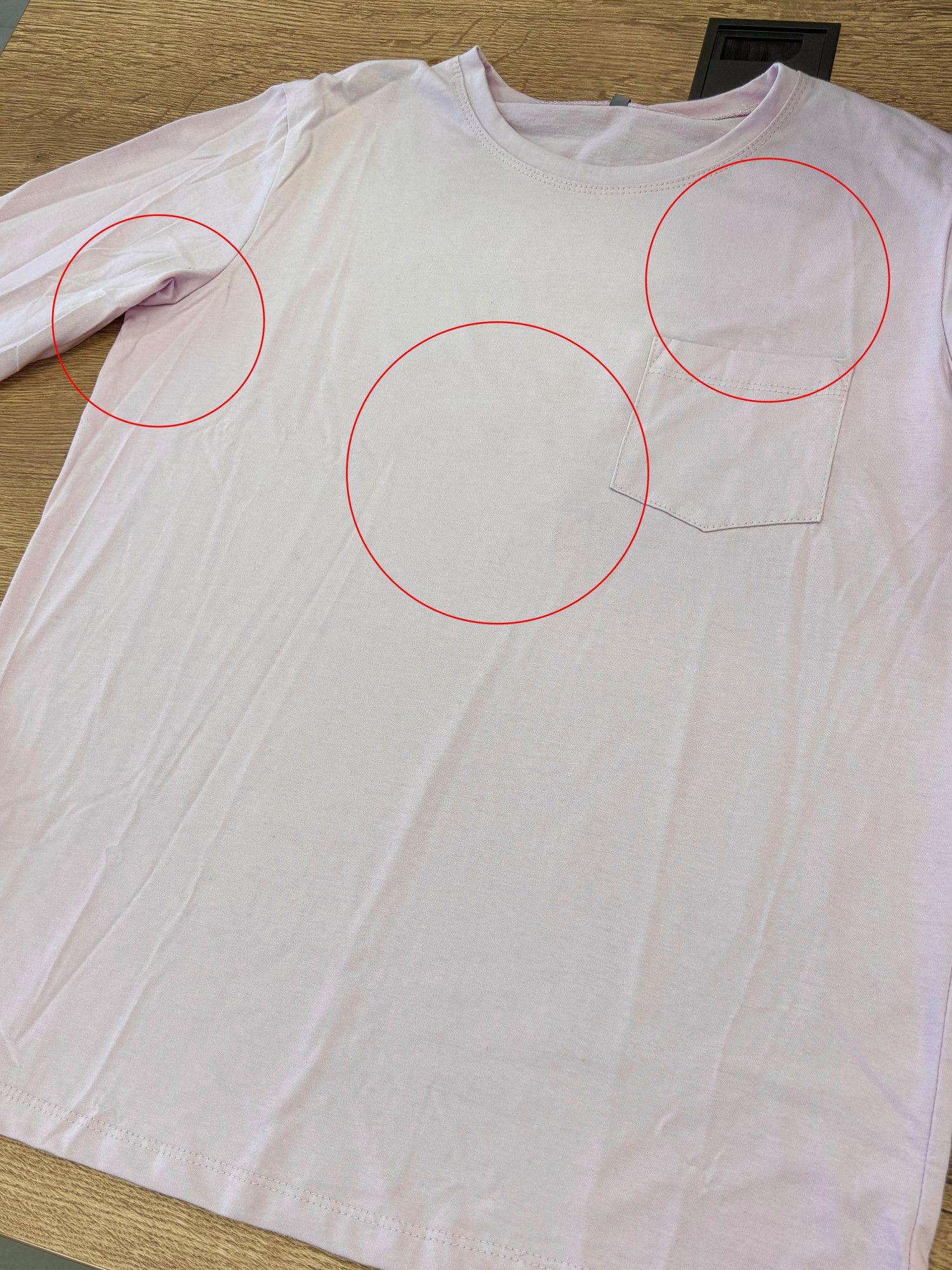 Размер 46:на кофте от костюма имеются едва заметные, белесые пятна(отмечено на фото,в карусели)