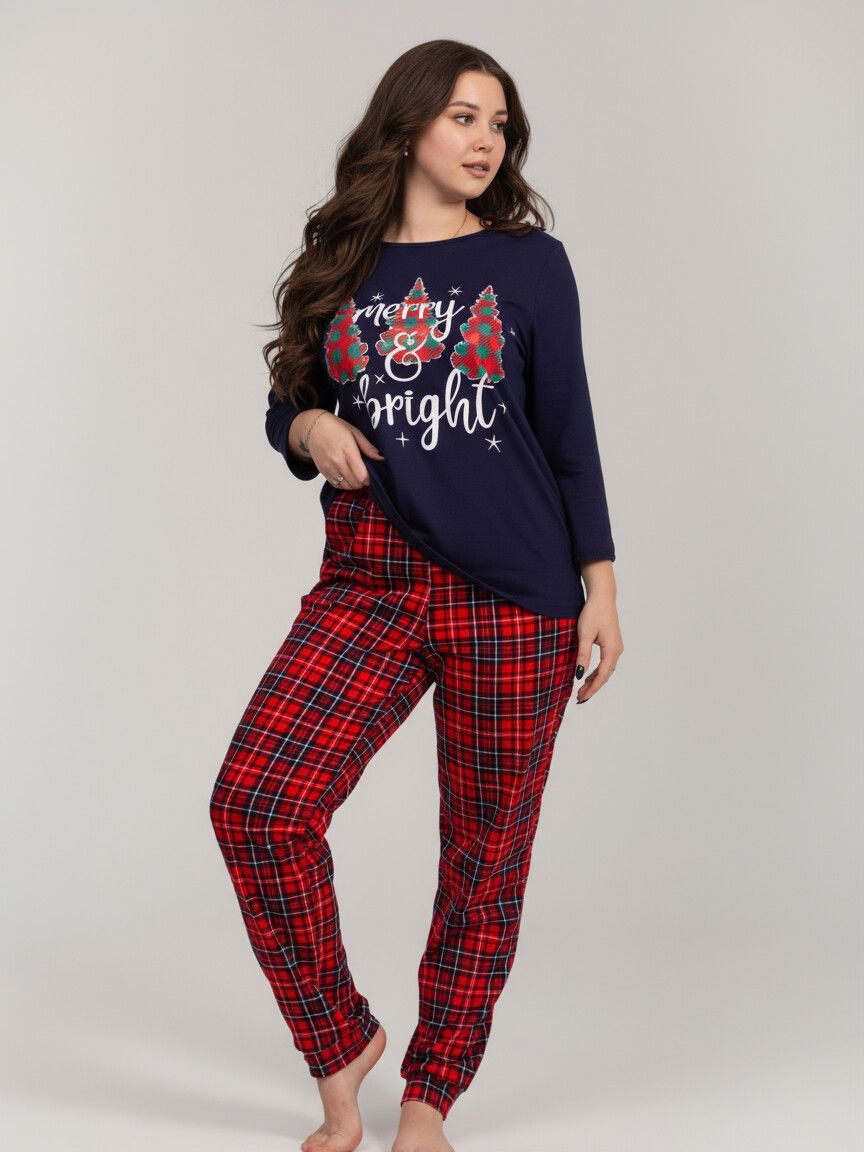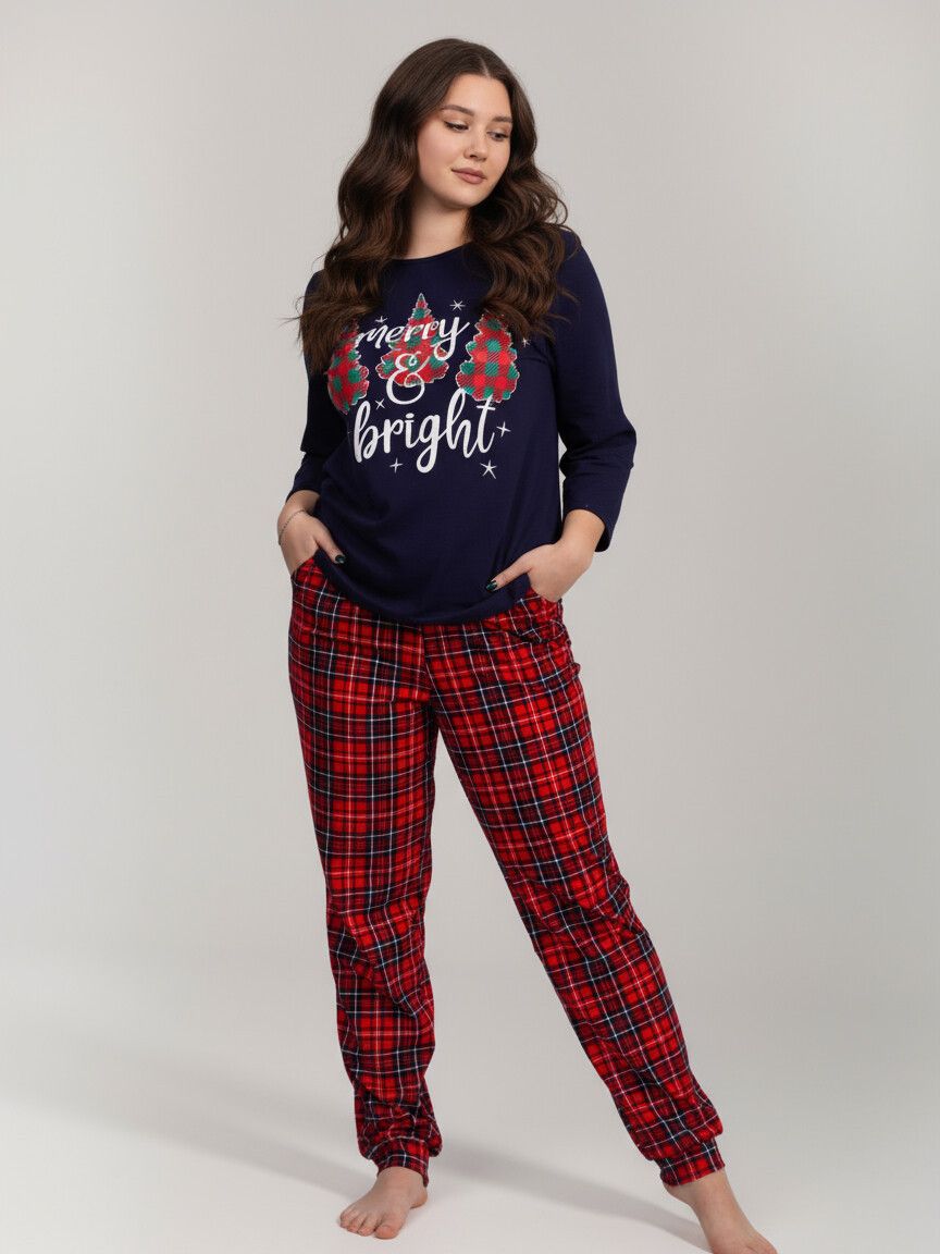 Костюм женский кулирка с брюками "ЕЛКИ" КРАСНЫЙ