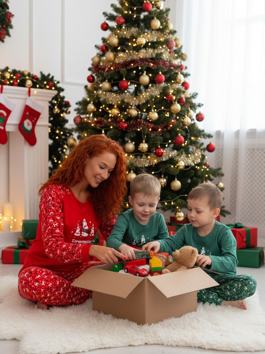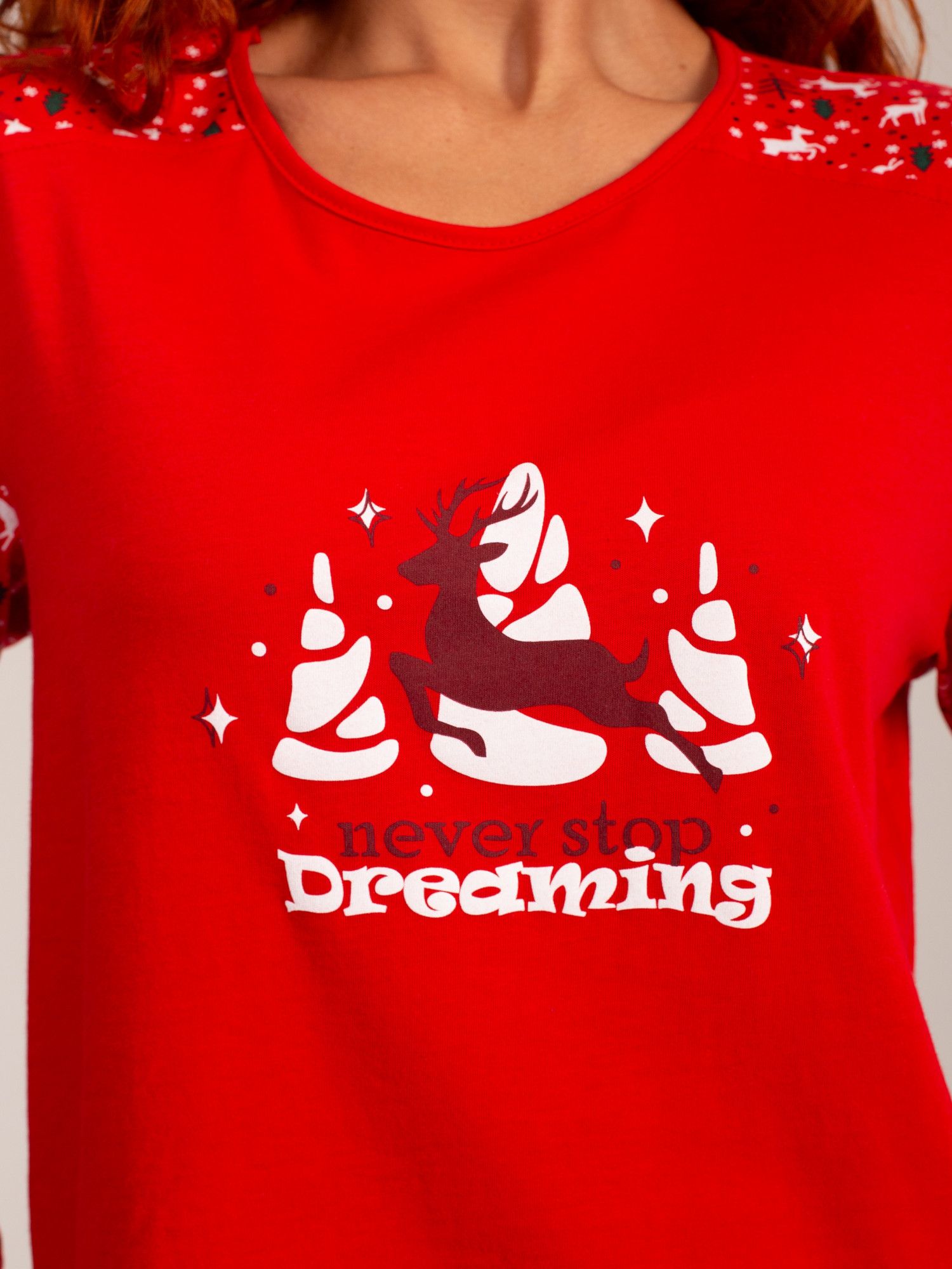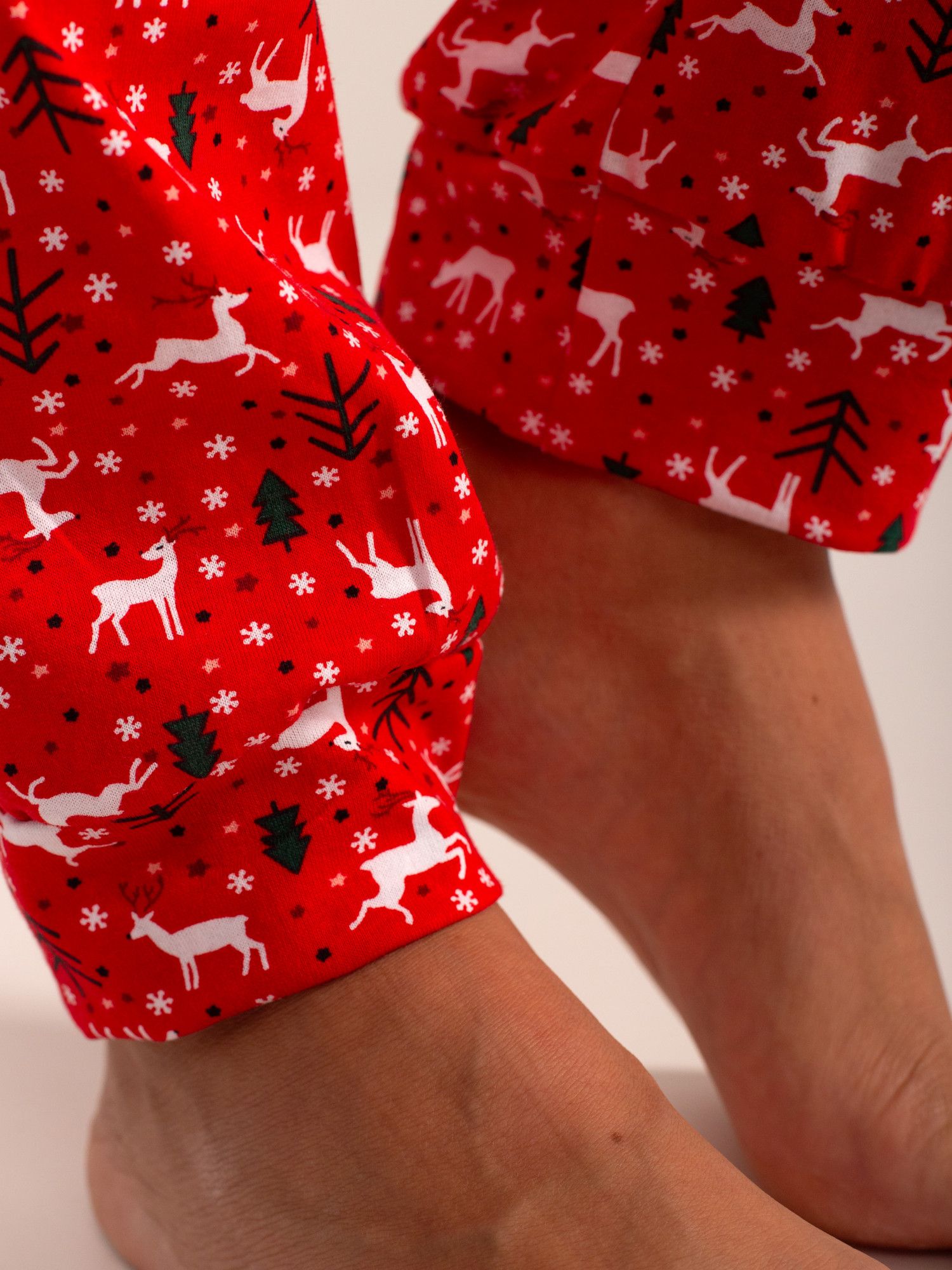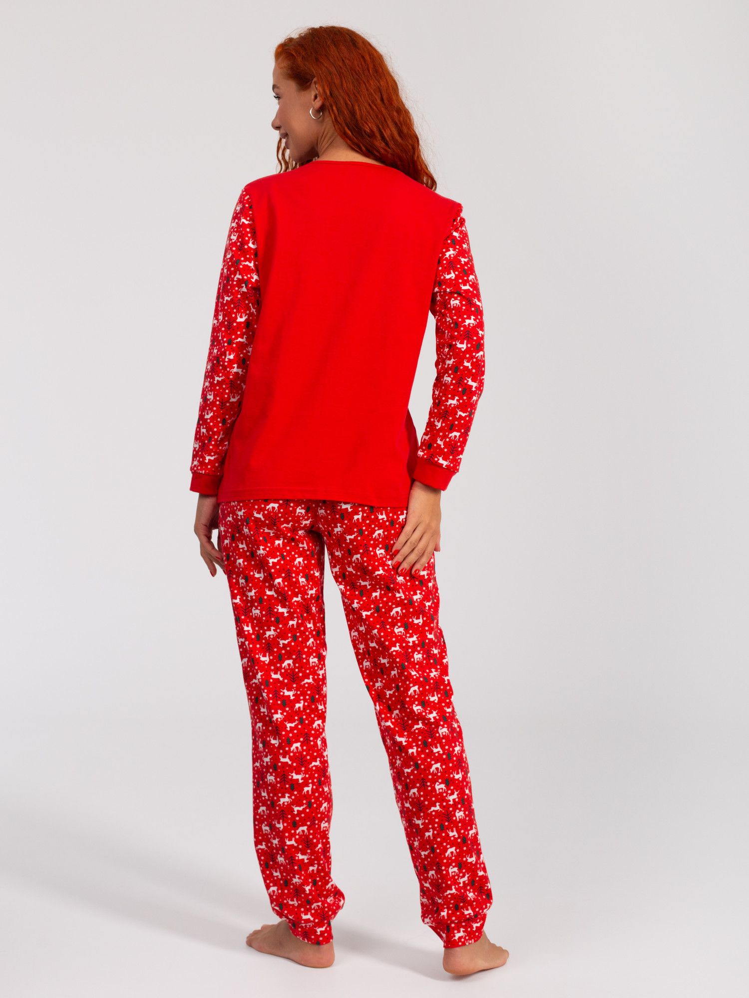 Костюм женский кулирка с брюками "ЗИМНИЙ ЛЕС" КРАСНЫЙ
