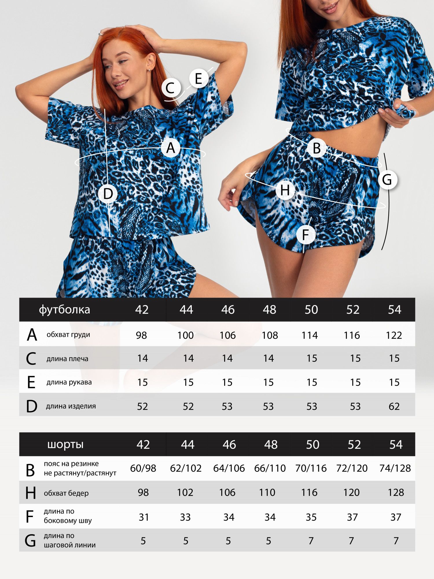 Костюм женский кулирка с шортами "АФРИКА" СИНИЙ