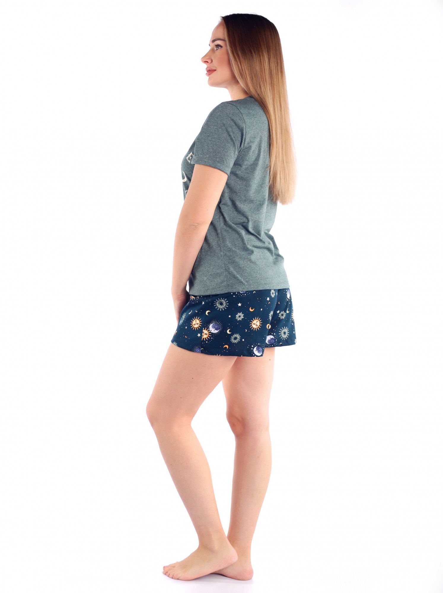 Костюм женский кулирка с шортами "СОЗВЕЗДИЕ" ЗЕЛЕНЬ