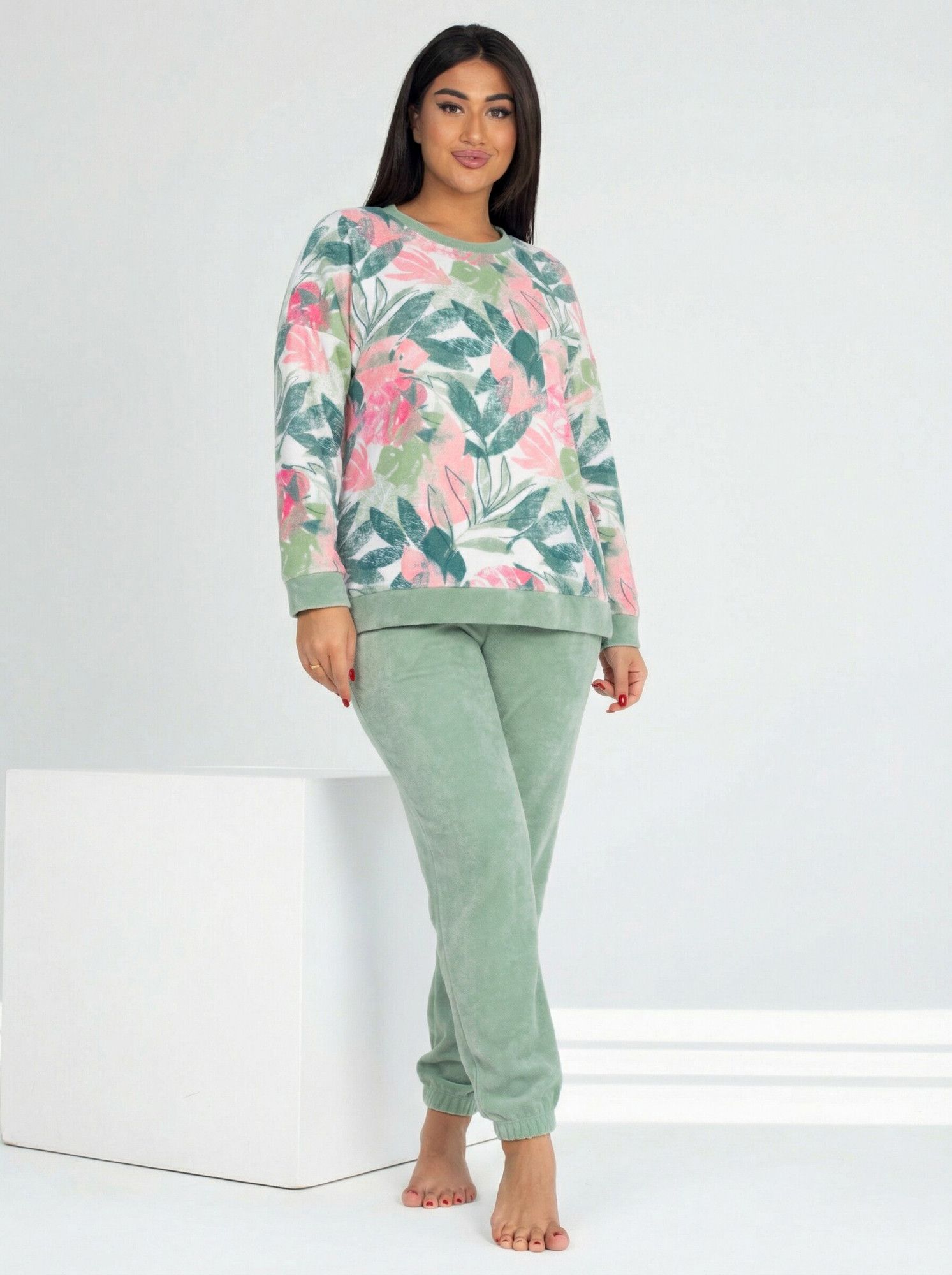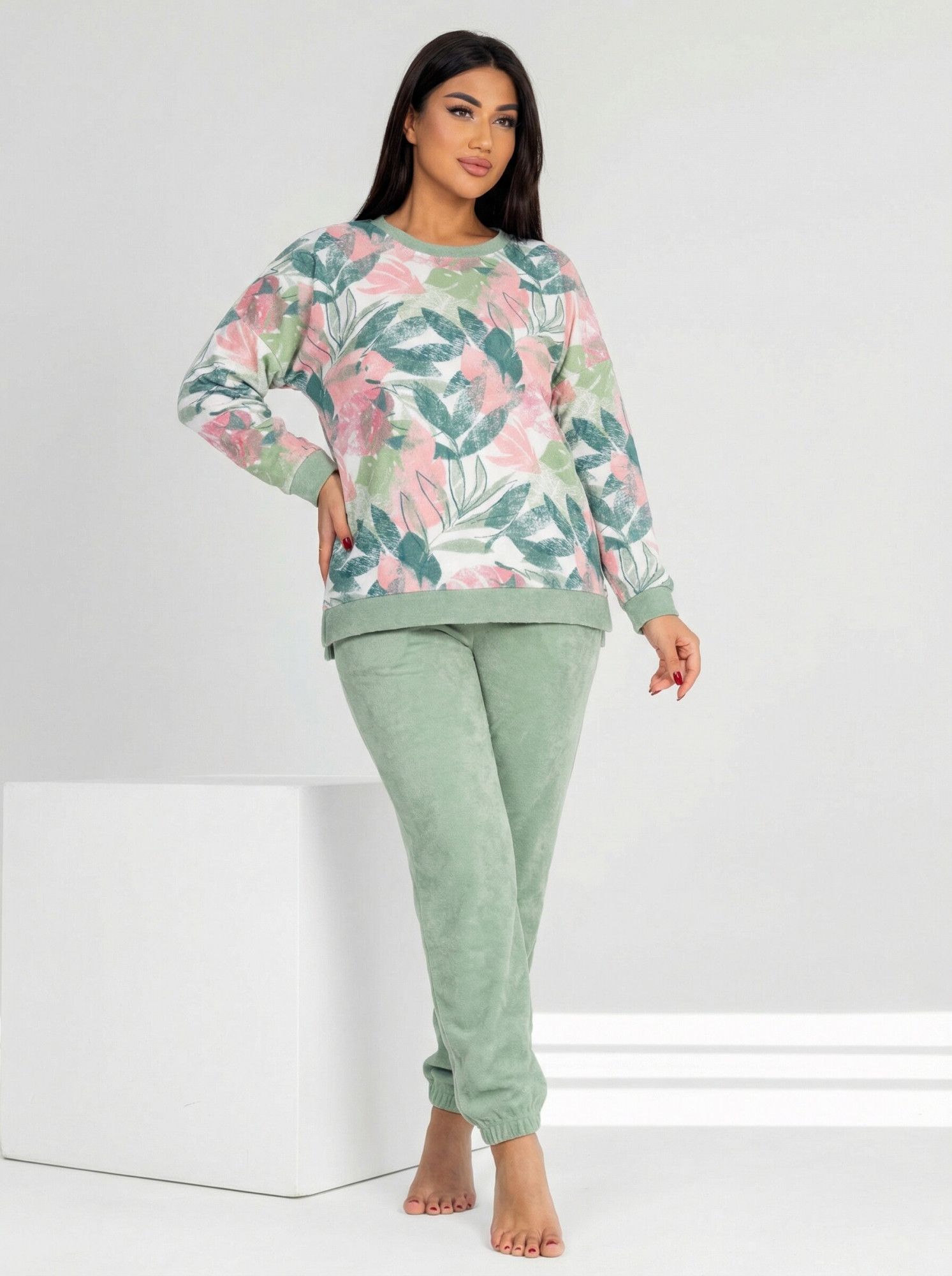 Костюм женский махра с брюками "ЗЕМФИРА" ЗЕЛЕНЬ