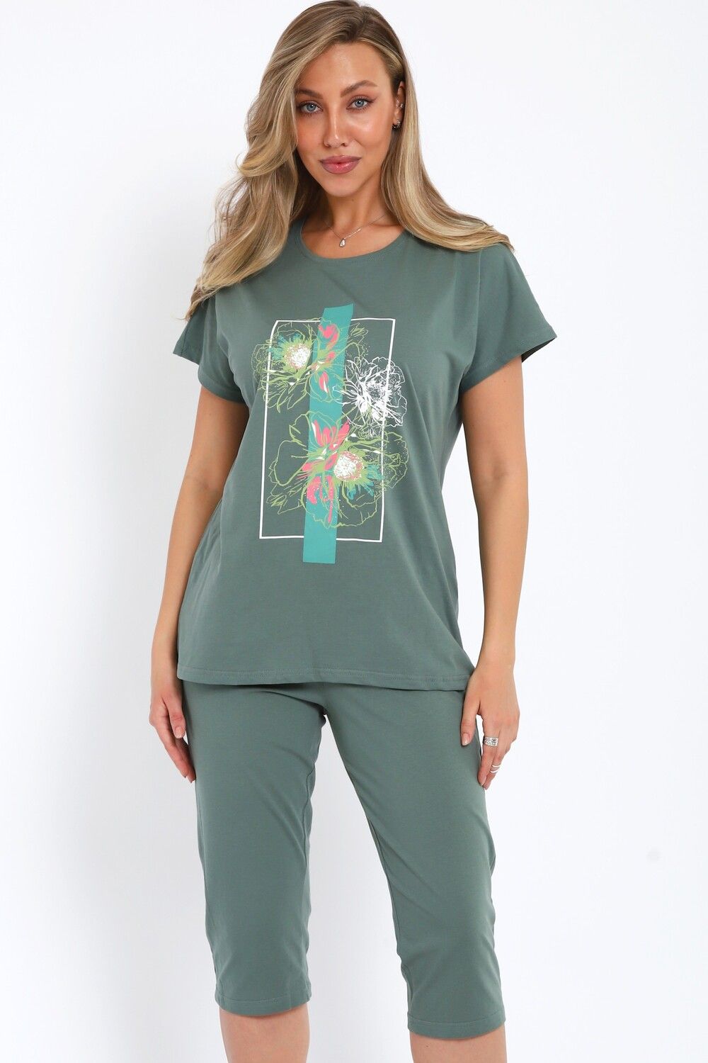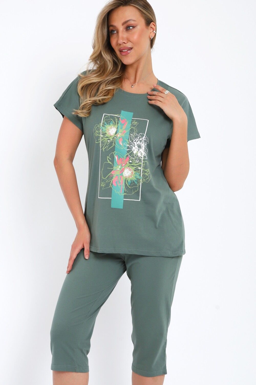 Летний костюм двойка для домашнего отдыха и сна из 100% хлопка. Футболка свободного кроя, удлиненная, с круглым вырезом горловины и коротким рукавом. Бриджи классической длины, прямого кроя. Мягкий и приятный к телу материал, обладающий высоким качеством, подарит вам настоящий уют на каждый день. Домашний костюм со штанами можно носить дома, на даче или использовать комплект как пижамный. Наш трикотажный костюм подойдет любой моднице. Такую домашнюю одежду для женщин можно использовать для йоги, активного отдыха, походов и прогулок весной и летом. Домашний костюм женский с бриджами с интересным рисунком соответствует моде и отлично подходит для повседневной носки. Домашняя одежда для женщин больших размеров подходит в качестве уличной, домашней и пляжной одежды. Пижама костюм яркого цвета с интересным рисунком соответствует моде и отлично подходит для повседневной носки. Дачный костюмчик больших размеров идеально подходит в качестве домашней одежды. Носите с удовольствием!