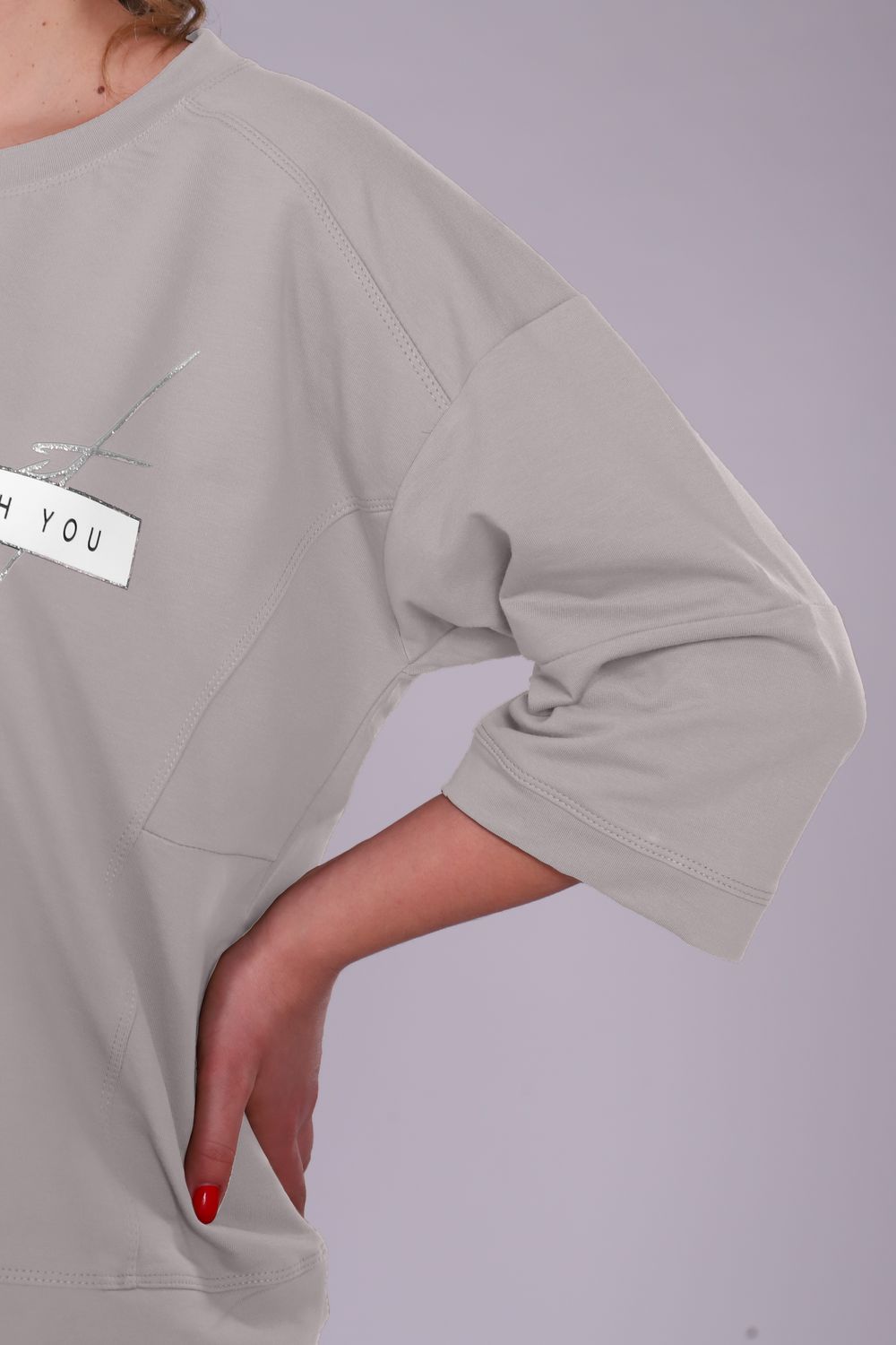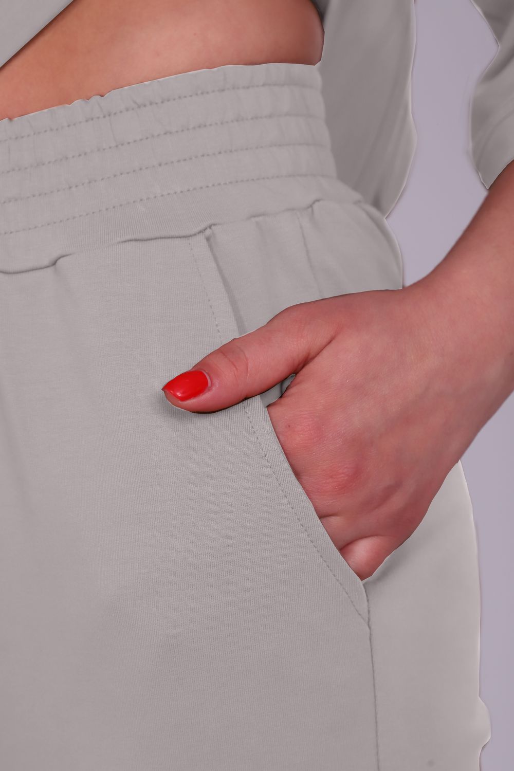 Костюм женский с зауженными брюками с подворотами, на резинке и свободной кофтой с рукавами 3/4. Модель выполнена из футера 2-х нитки (петля - хлопок)