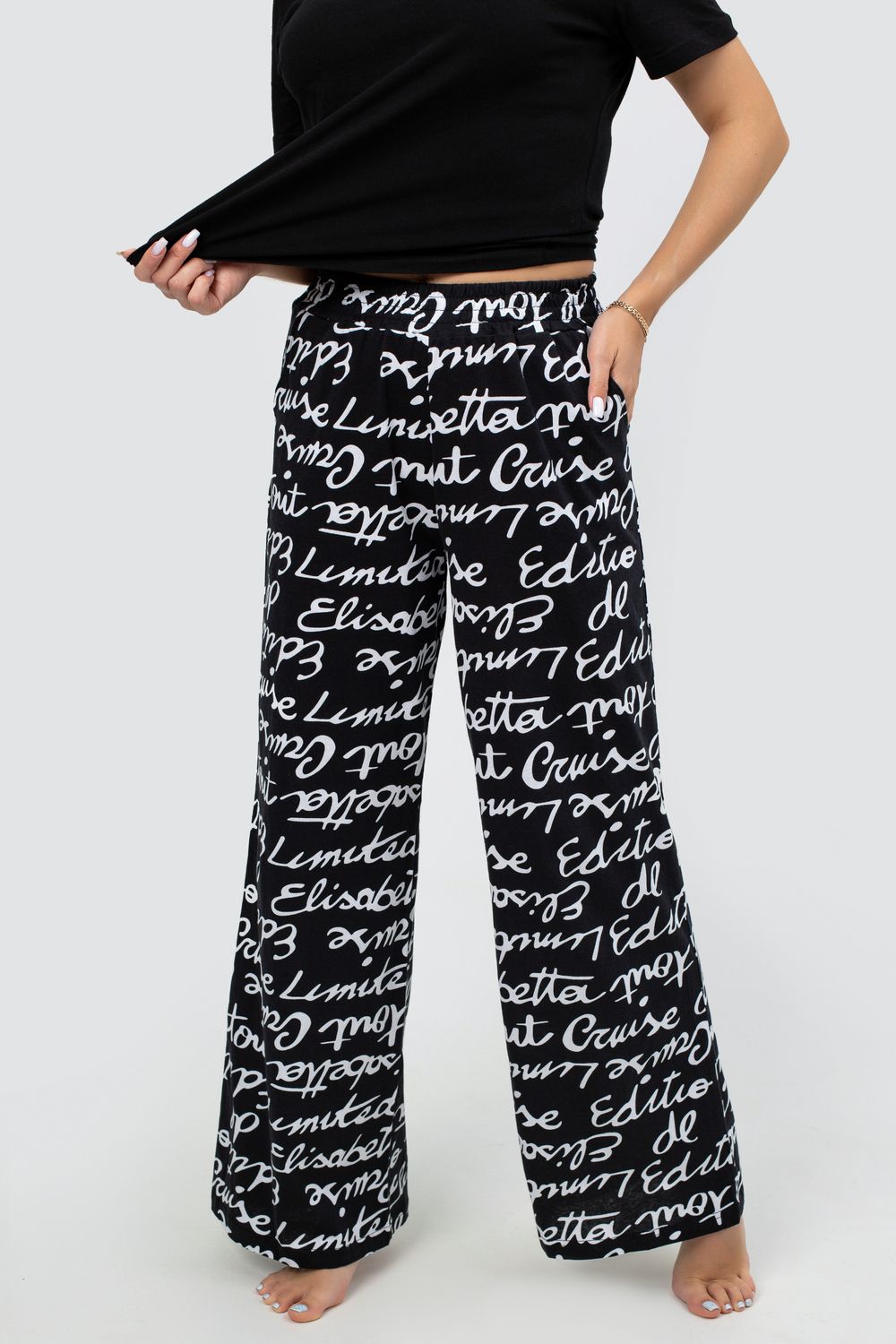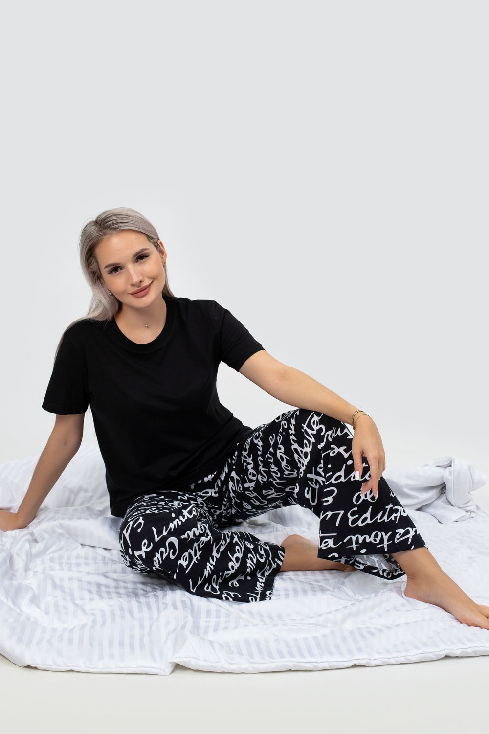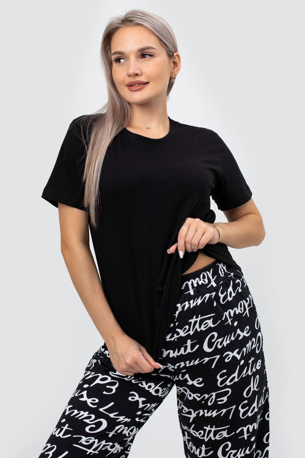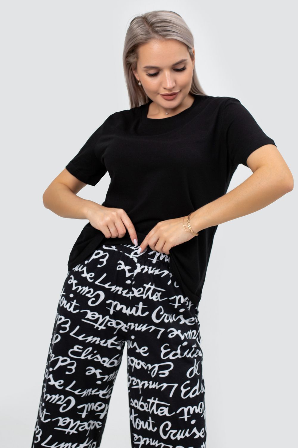 Идеальная женская пижама для весеннего и летнего сезона! Этот стильный и комфортный костюм двойка станет незаменимым элементом вашего домашнего гардероба. Брюки палаццо и однотонная футболка с коротким рукавом входят в комплект. Прямой крой и свободный фасон обеспечивают максимальный комфорт и свободу движений, что делает эту пижаму идеальной для сна, отдыха и повседневного ношения дома. Штаны с прорезными карманами на резинке идеально подходят для женщин и девушек любого роста и комплекции, включая полных и беременных. Они обеспечивают удобную посадку и не стесняют движений, что особенно важно для будущих мам. Принт с надписями добавляет пижаме стильный и нарядный вид, делая её подходящей даже для новогодних праздников. Футболка с коротким рукавом и прямым кроем выполнена из мягкого трикотажа, который приятно прилегает к телу и не вызывает раздражения. Однотонный дизайн позволяет легко сочетать её с другими элементами вашего гардероба, создавая базовые и стильные образы для дома. Костюм двойка оверсайз станет отличным выбором для женщин и девушек, которые ценят комфорт и стиль. Этот брючный костюм создан для тех, кто хочет чувствовать себя уютно и уверенно в любой ситуации. Наша женская пижама со штанами – это не просто домашняя одежда, а настоящий символ уюта и комфорта. Станет отличным подарком для ваших близких на любой праздник, будь то Новый год или день рождения. Подарите себе и своим близким тепло и заботу с нашей стильной и красивой пижамой! Не упустите возможность приобрести эту уникальную пижаму, которая сочетает в себе все лучшие качества. Она станет вашим любимым элементом гардероба для дома и отдыха, обеспечивая уют в весенние и летние дни.