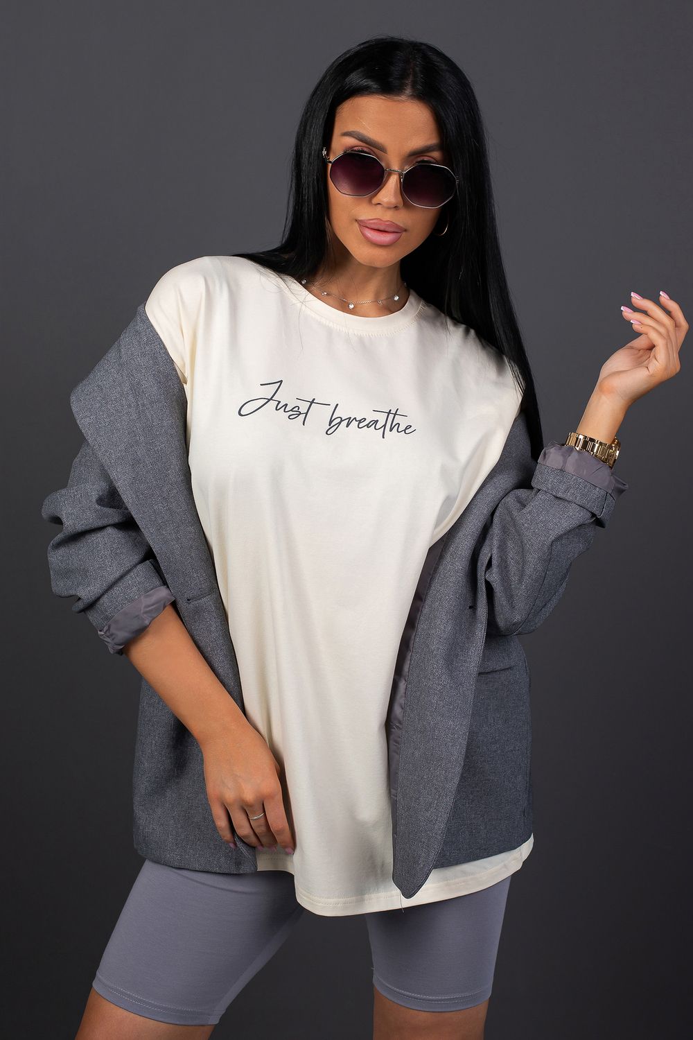 Костюм женский с велосипедками КЖ009 молочно-серый - молочный/серый