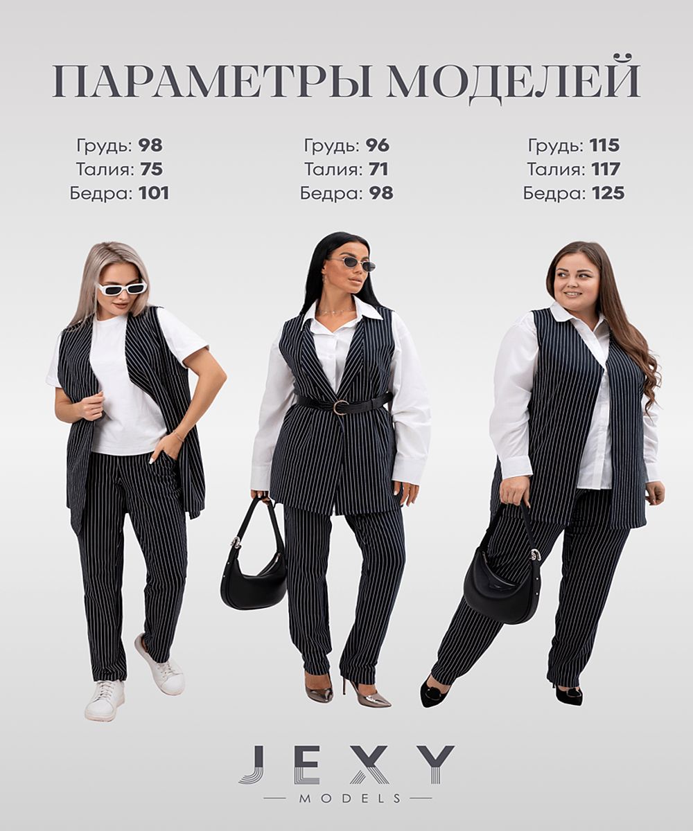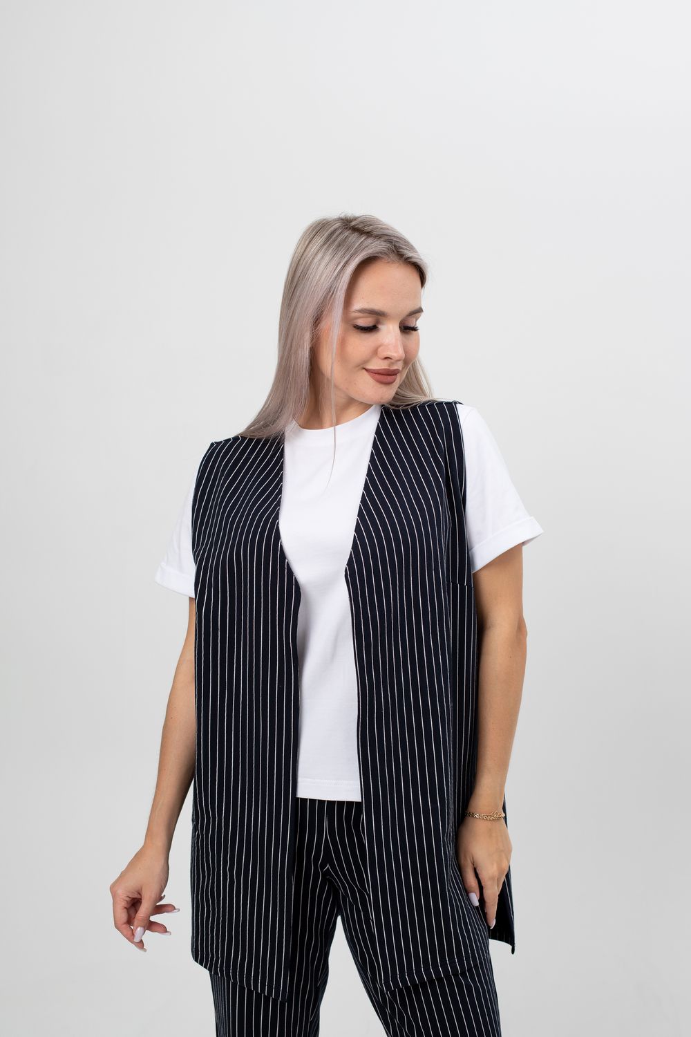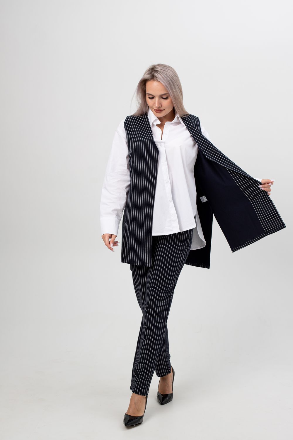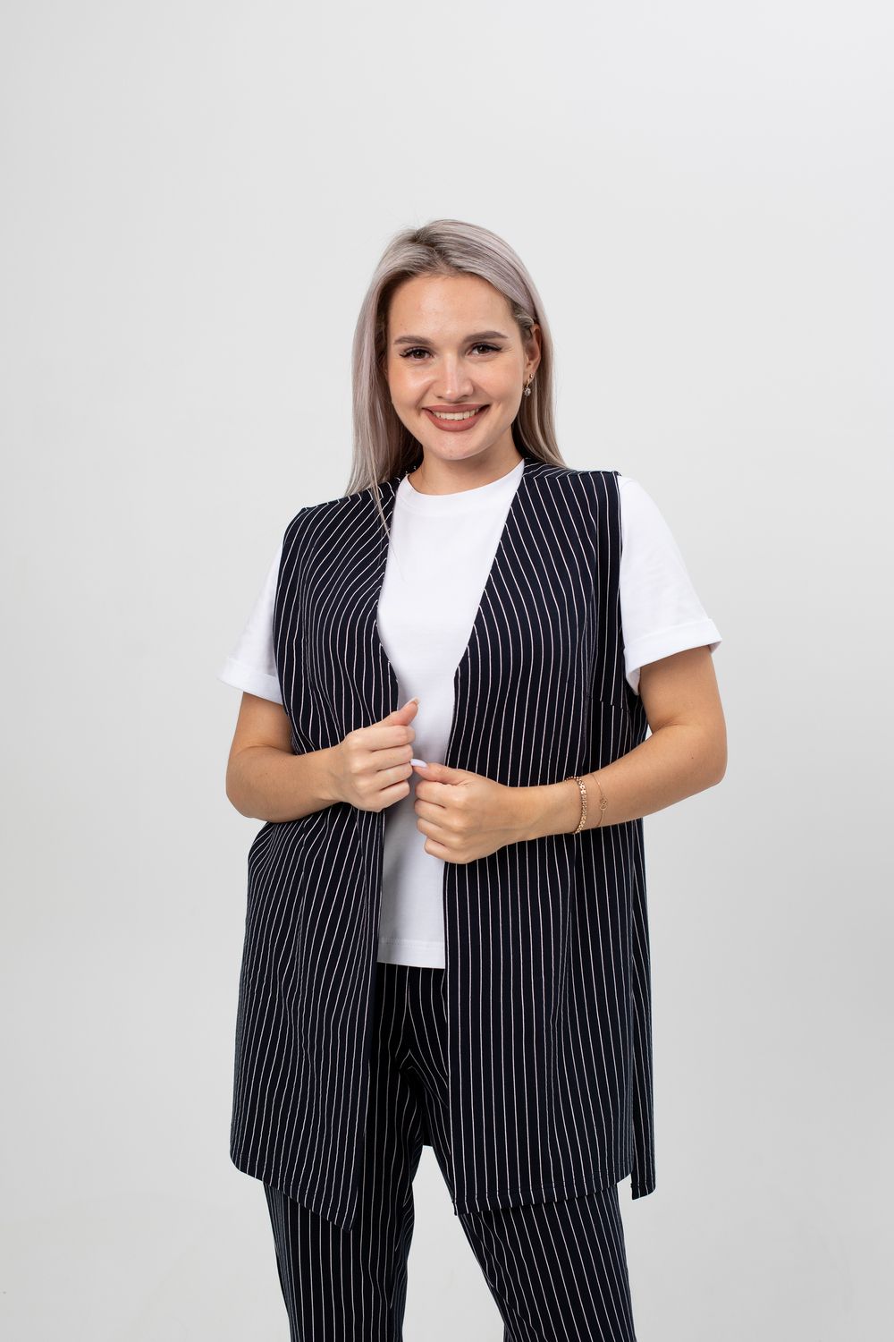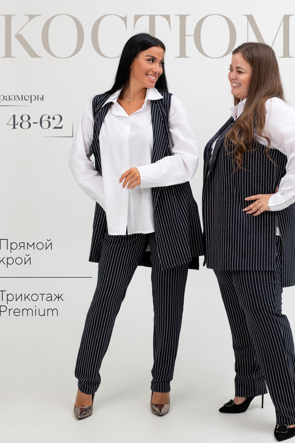 Костюм женский брючный праздничный - идеальный выбор для тех, кто ценит элегантность и комфорт. Двойка из жилетки и брюк подойдет для создания делового образа. Свободный крой и деловой стиль позволяет носить эту уникальную одежду как в офис, так и на праздничные мероприятия. Прямые брюки с прорезными карманами добавляют стильности, а резинка в поясе обеспечивает удобную посадку. Состав из хлопка делает костюм практичным решением для осени. Трикотажная ткань футер мягкая и приятная на ощупь, отлично согревает в холодную погоду. Это помогает чувствовать себя уютно даже в зимний период. Жилет в полоску завершает классический вид комплекта, подчеркивая утонченность и разнообразие гардероба. Нарядный характер одежды предоставляет возможность использовать её не только в будни, но и для вечерних выходов. Утонченный дизайн подходит для женщин и девушек с нестандартной фигурой, предлагая оптимальное решение для больших размеров. Элегантность этой двойки заключается в строгих линиях кроя и внимании к деталям. Красиво садится на любую фигуру благодаря универсальности фасона. Брюки со штанами подходят как для полных, так и для беременных дам. Комплект в полоску заново открывает возможности изменить обыденный наряд до праздничного уровня. Темно-синий цвет не только модный тренд нынешнего сезона, но и верное выражение офисного дресс-кода без скучных шаблонов. Стильное сочетание цветов выглядит выгодно и современно одновременно. Неотразимый образ на деловых встречах или корпоративных событиях. Классические акценты следует дополнить своими любимыми аксессуарами. Таким образом образ становится цельным и полностью завершающим выбранный вами стиль одежды! Этот вариант соединяет лучшие качества строгого стиля с нескучным повседневным использованием гардероба. Будьте уверены: он никогда не выйдет из моды, оставаясь актуальным долгое время независимо от переменчивых веяний фэшн-трендов!