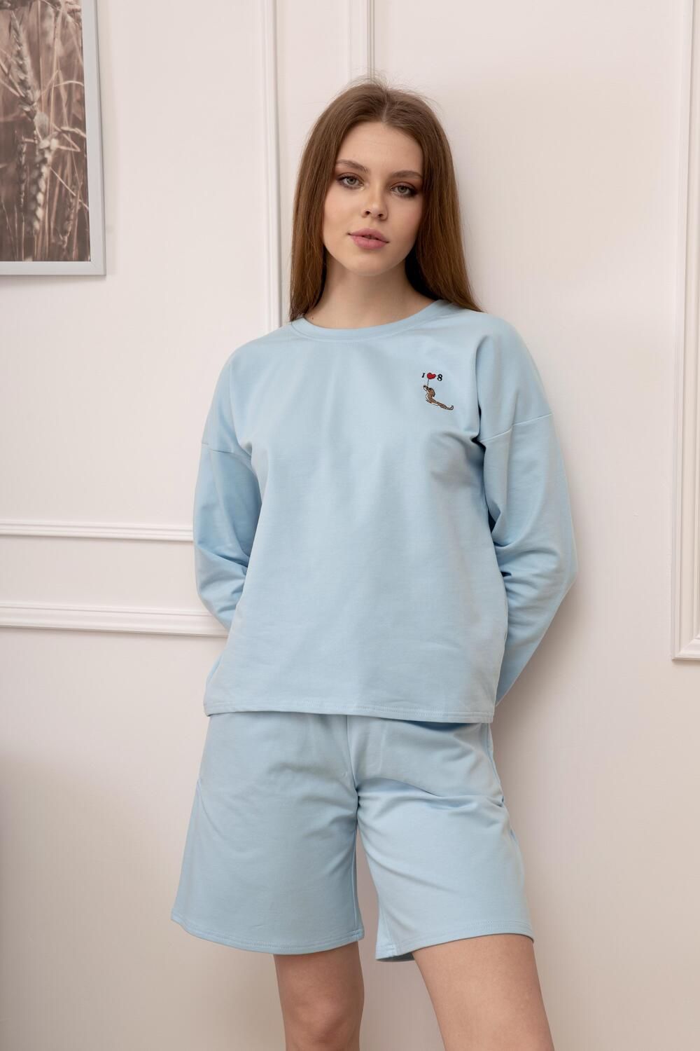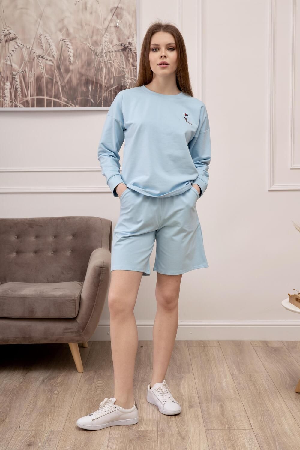Модный женский костюм Таша состоит из свободного свитшота и шорт из футера 2‑х ниточного. Женская футболка и шорты имеют прямой свободный силуэт, подходящий девушкам, женщинам и подросткам. Идеально садится на высоких и не очень высоких девушек. Домашний костюм с шортами не захочется снимать, настолько он комфортный. Классный вариант для прогулок, в отпуск или поездок на море.