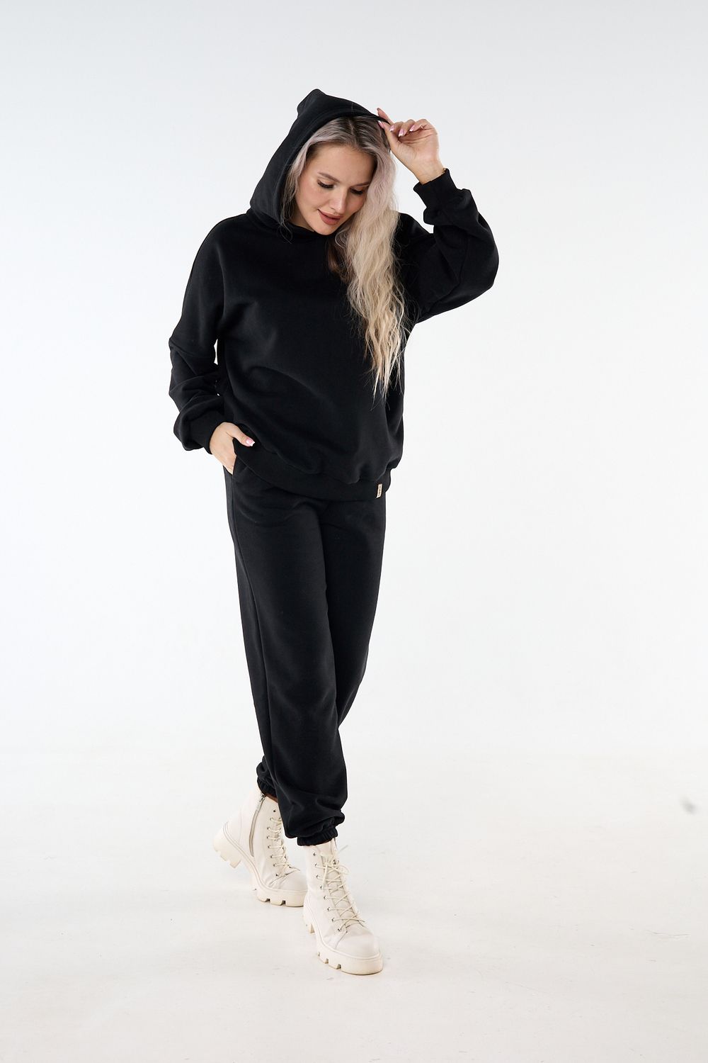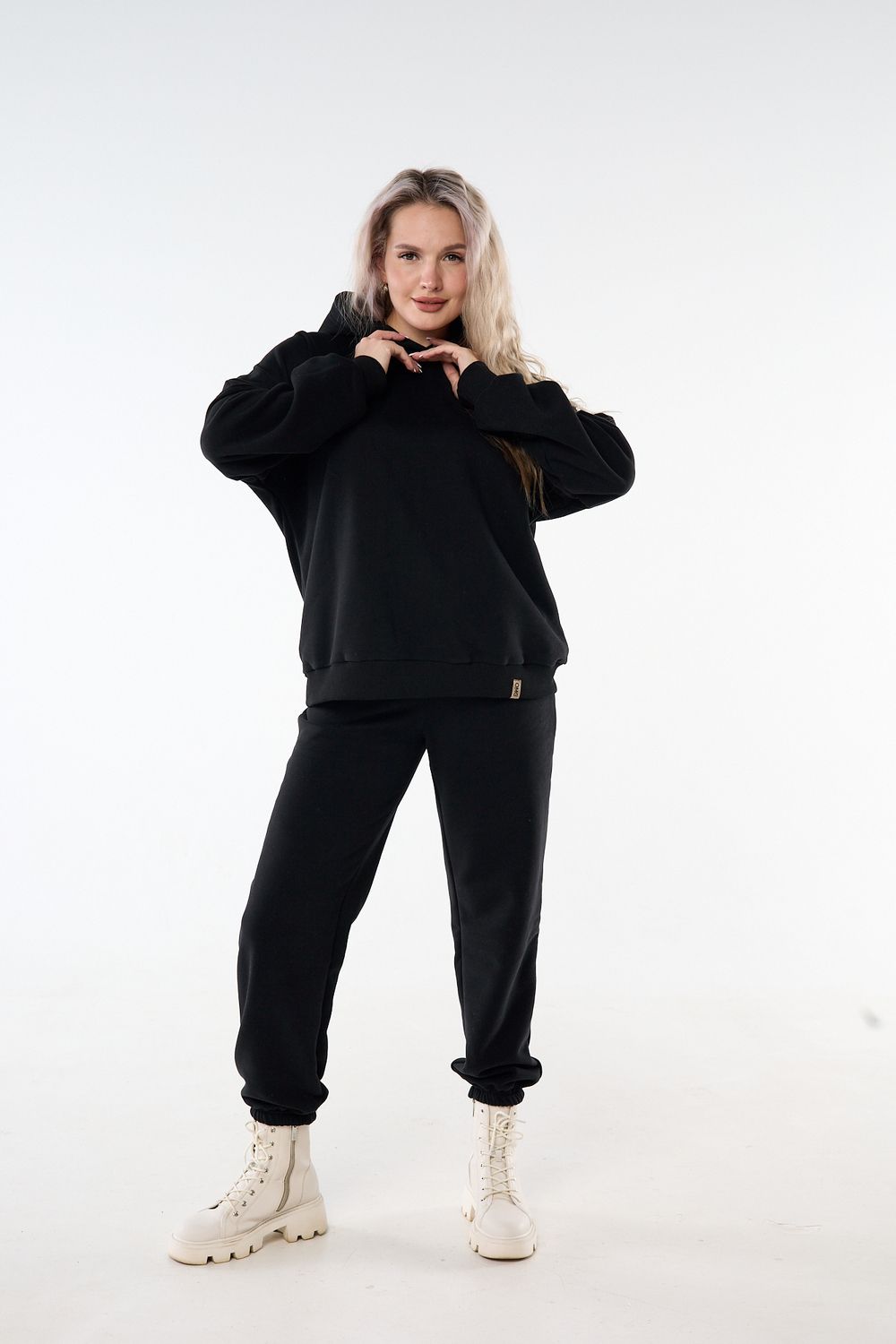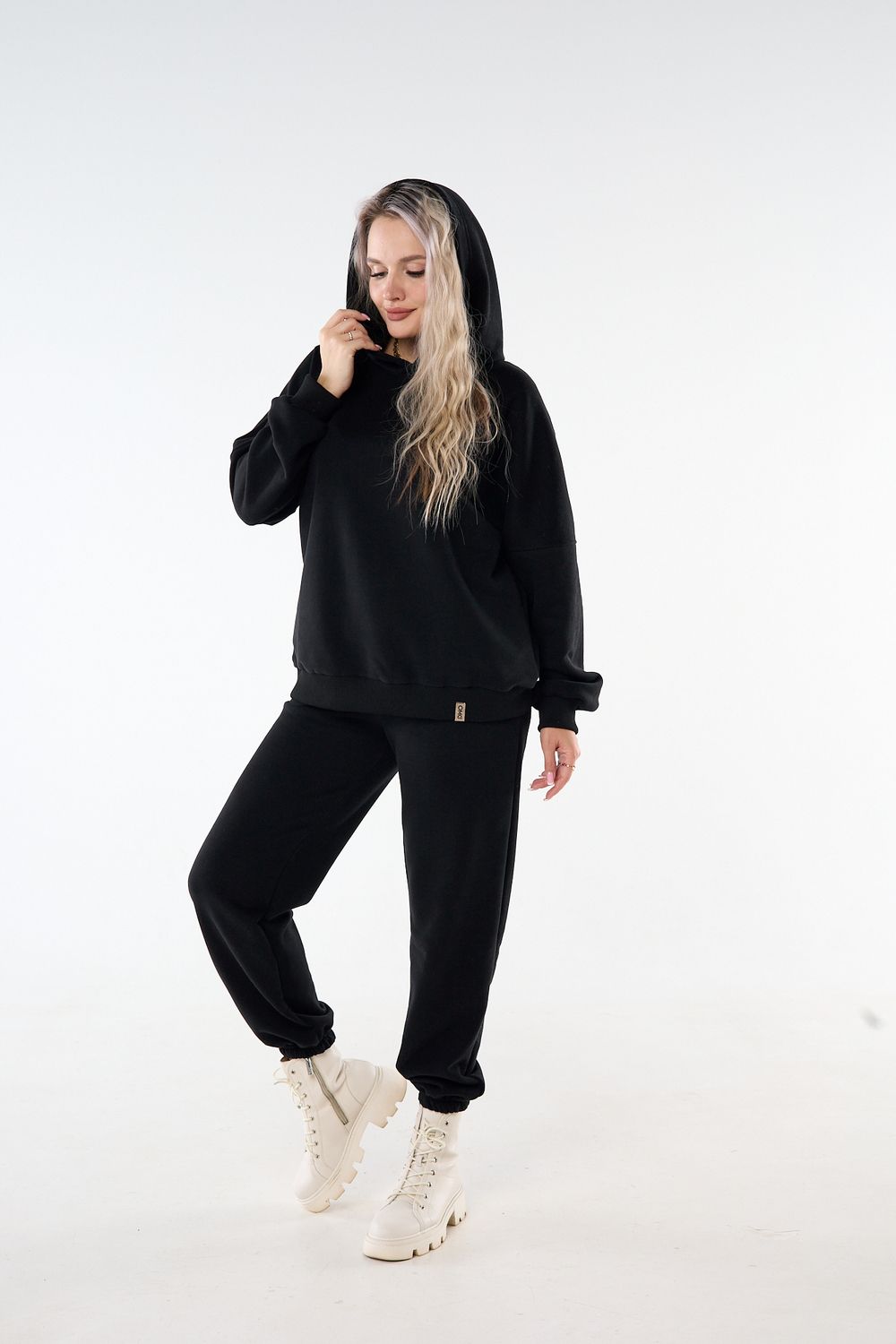 Особенностью данного костюма является наличие несъемного капюшона, который добавляет дополнительный уровень защиты от холода и ветра. Брюки в стиле джоггеры и толстовка без карманов создают стильный и современный образ, а однотонный рисунок позволяет легко сочетать костюм с другими элементами гардероба. Флисовое утепление и футерная фактура материала обеспечивают тепло и комфорт, даже в холодную погоду.