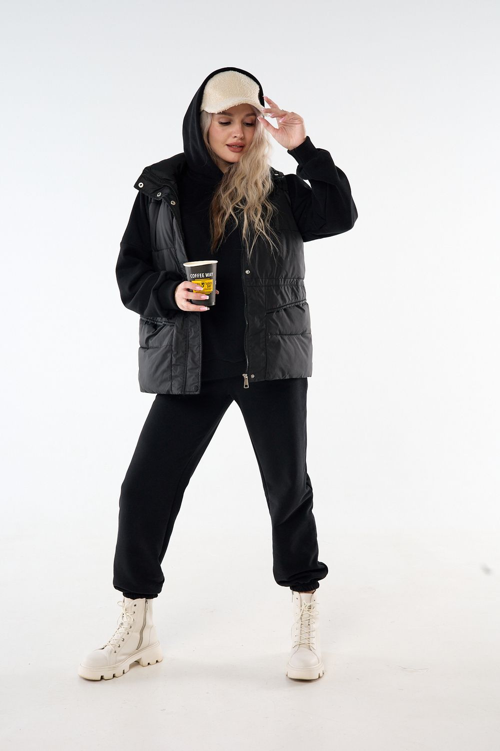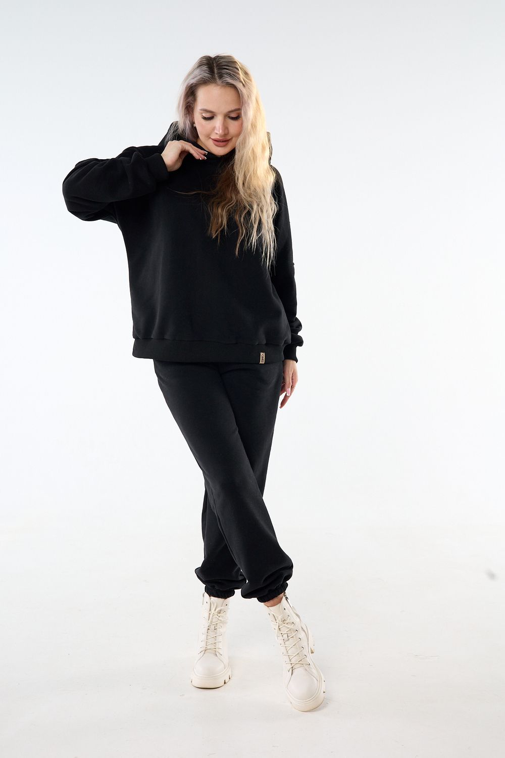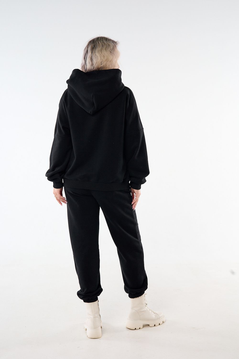 Особенностью данного костюма является наличие несъемного капюшона, который добавляет дополнительный уровень защиты от холода и ветра. Брюки в стиле джоггеры и толстовка без карманов создают стильный и современный образ, а однотонный рисунок позволяет легко сочетать костюм с другими элементами гардероба. Флисовое утепление и футерная фактура материала обеспечивают тепло и комфорт, даже в холодную погоду.
