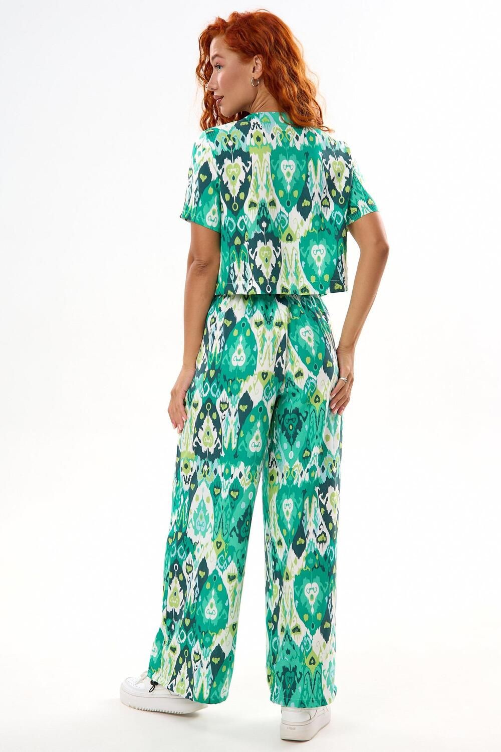 Костюм выполнен из лёгкого и приятного к телу штапеля, идеально подходящего для тёплого сезона. Модель состоит из укороченной блузы на пуговицах с втачным коротким рукавом и длинных прямых брюк на удобной резинке с боковыми карманами. Свободный крой обеспечивает комфорт и свободу движений, а продуманный дизайн делает образ современным и стильным. Этот костюм станет отличным выбором для отдыха, прогулок, похода на работу или вечернего выхода. Сочные и выразительные расцветки привлекают внимание и не оставят вас без комплиментов!