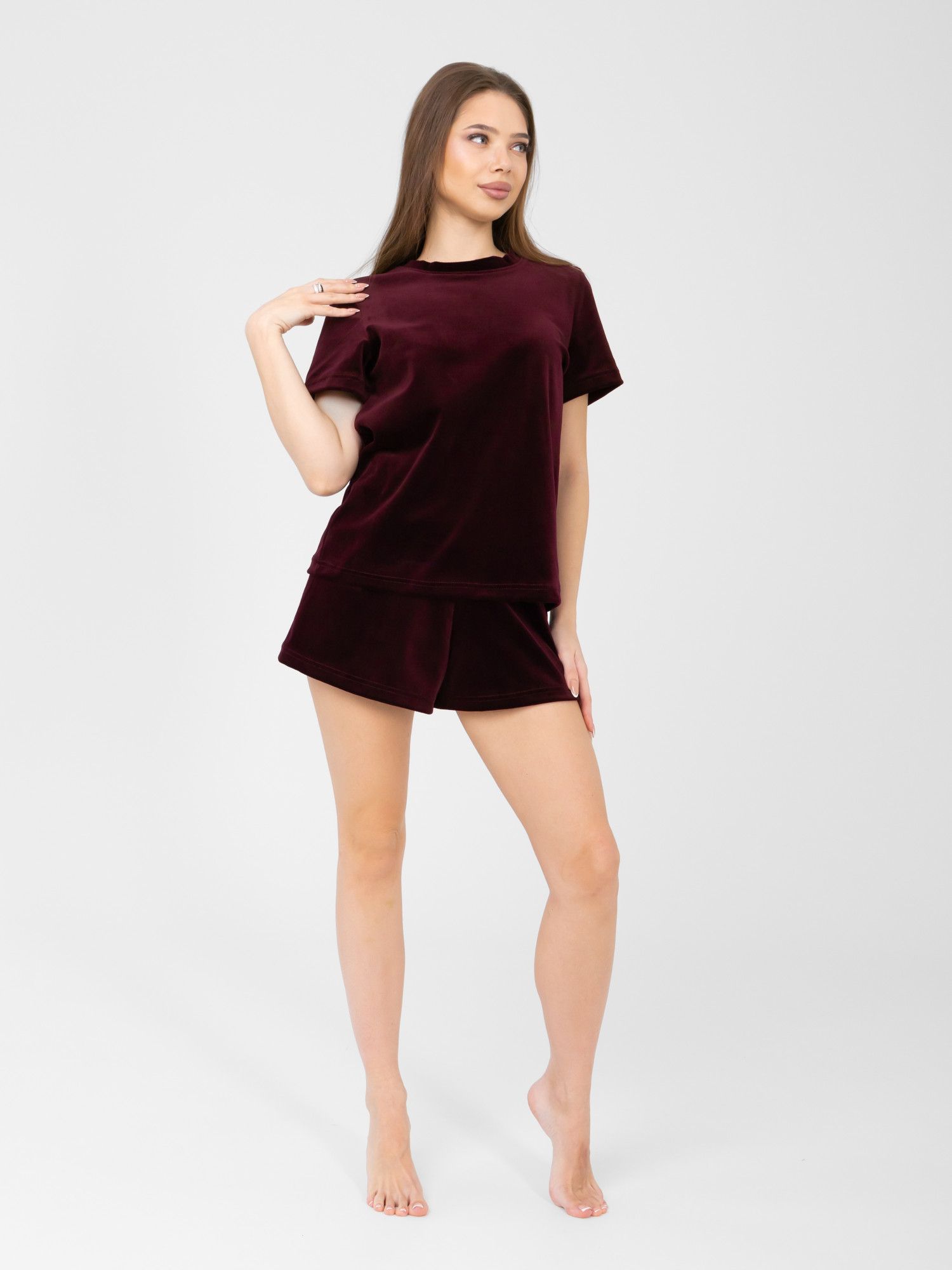 Костюм женский велюровый с шортами "ЭЛЬЗА" БОРДО