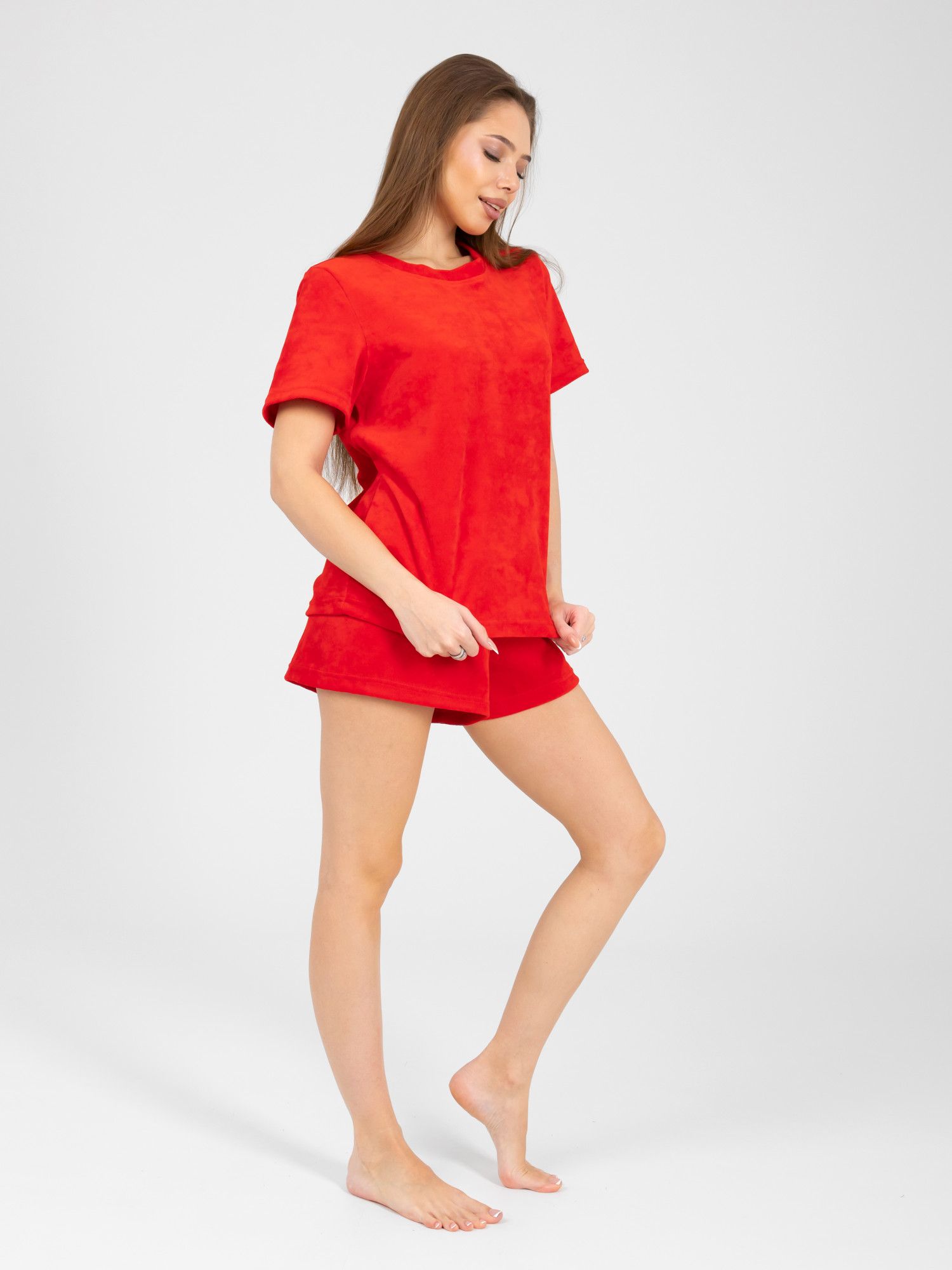 Костюм женский велюровый с шортами "ЭЛЬЗА" КРАСНЫЙ