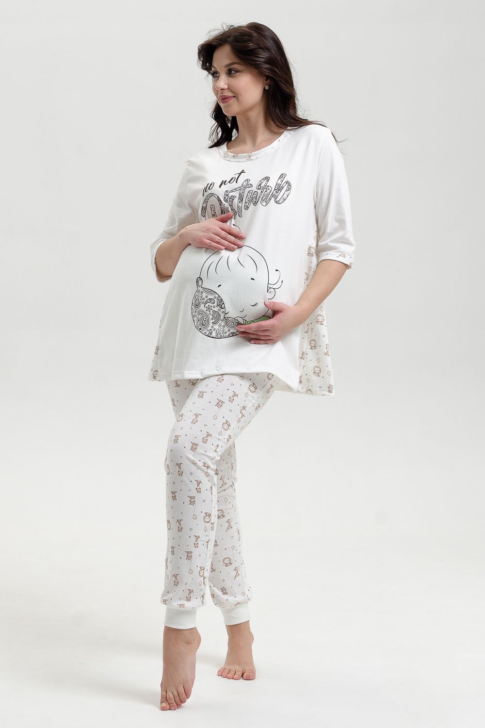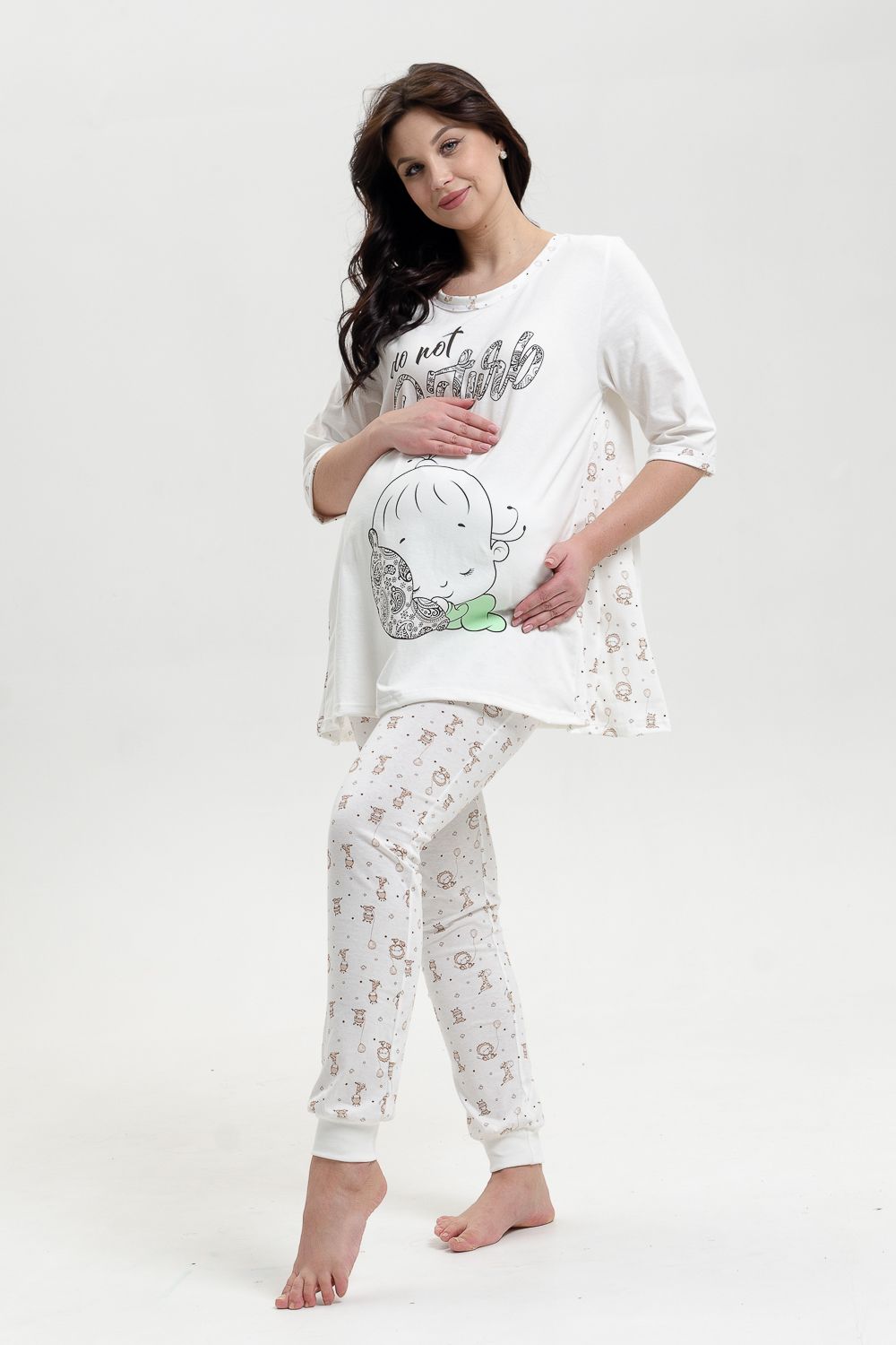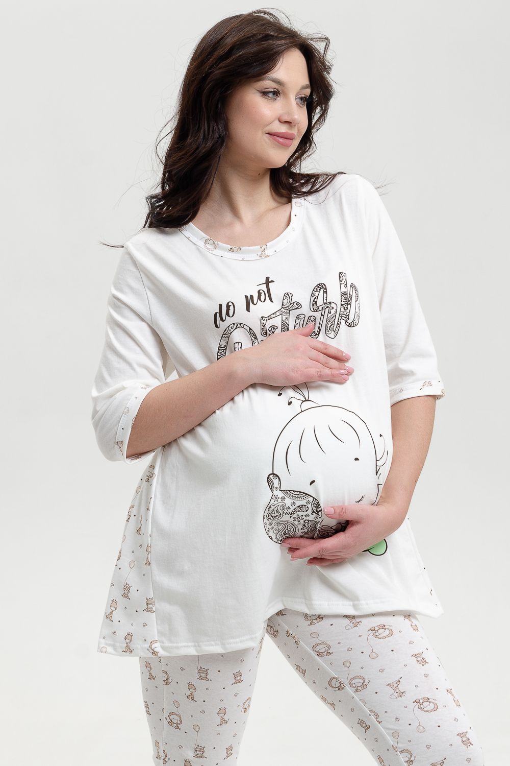 Пижама для беременных. Футболка с коротким рукавом, отделка - кант, принт на полочке. Брюки на манжетах, рисунок - огурцы
