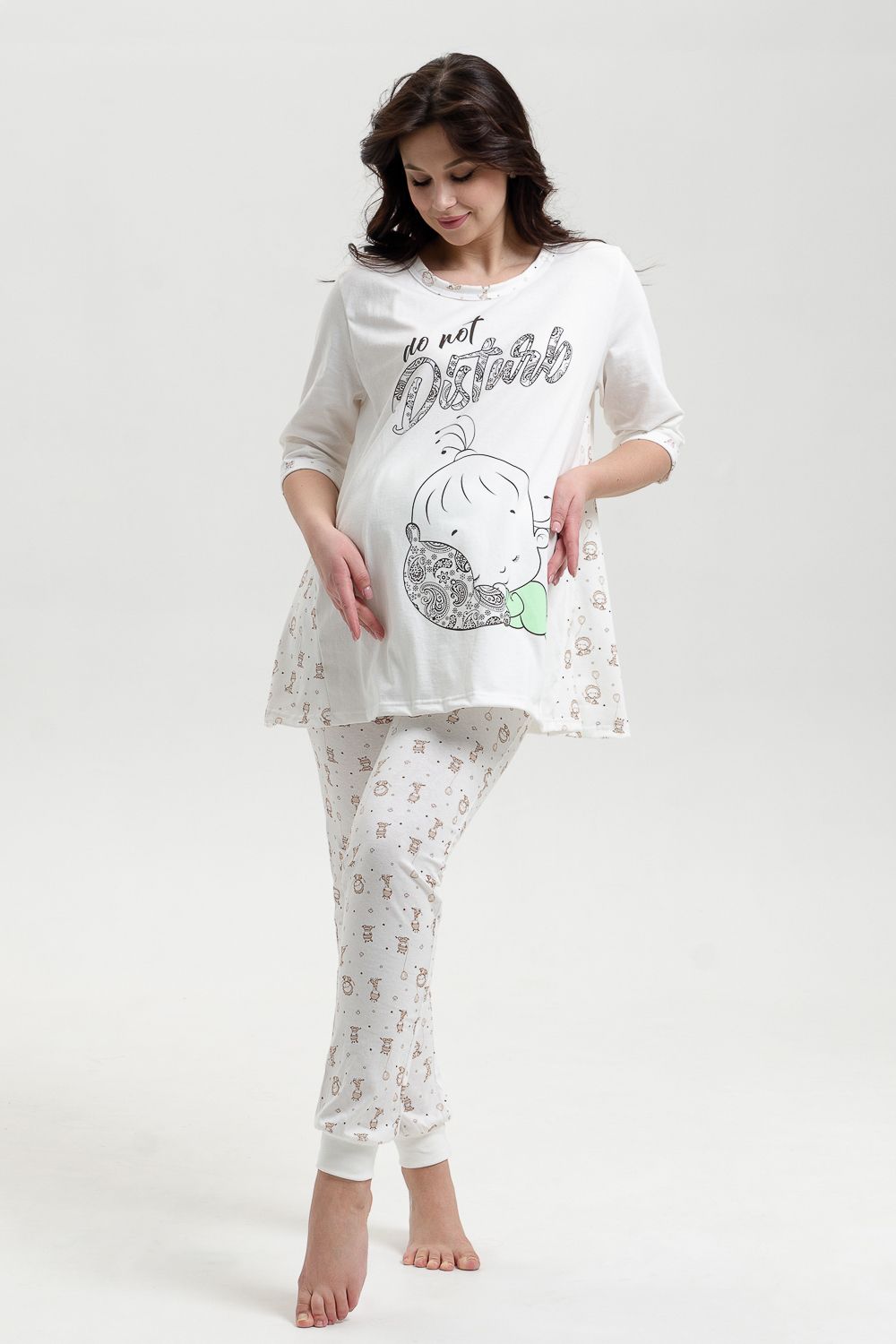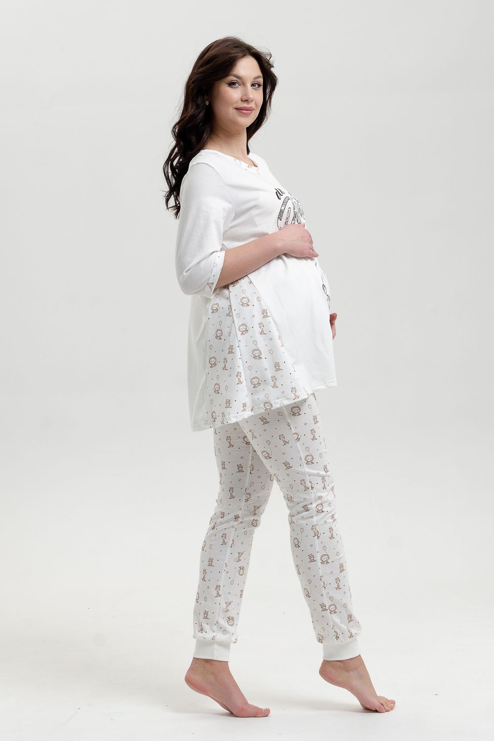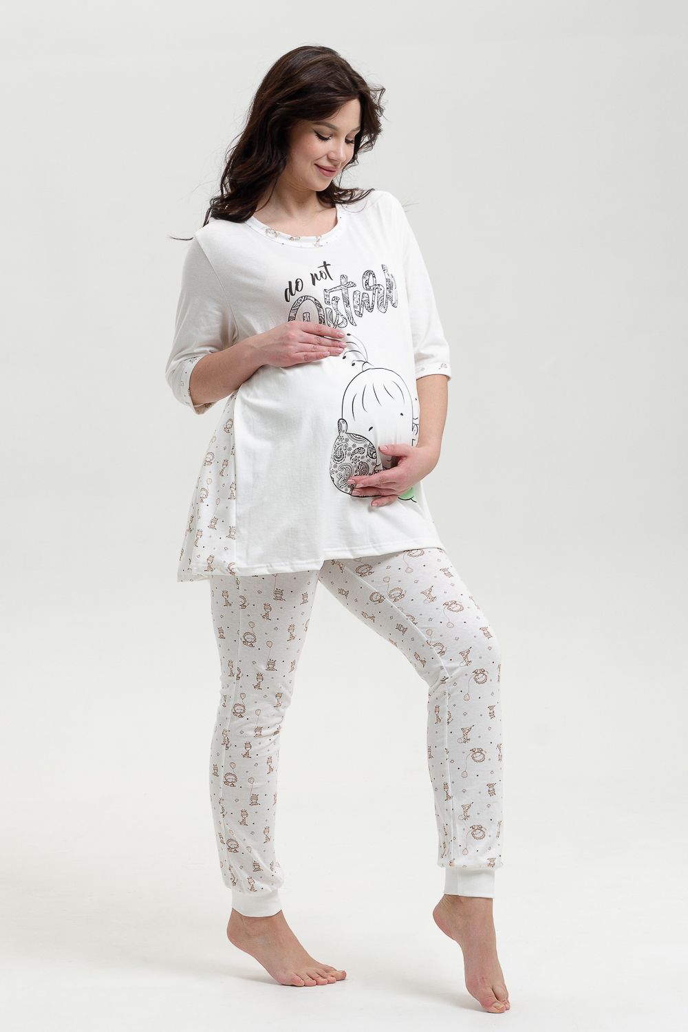 Пижама для беременных. Футболка с коротким рукавом, отделка - кант, принт на полочке. Брюки на манжетах, рисунок - огурцы