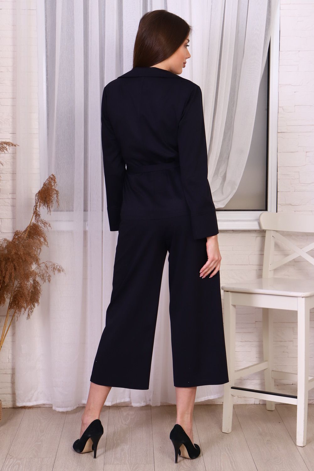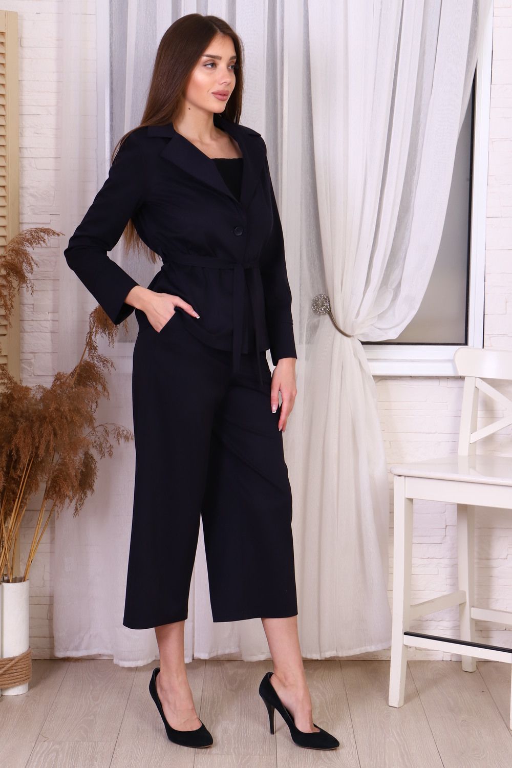Костюм из легкой ткани с прямыми укороченными брюками пользуется большой популярностью среди женщин любого возраста. Прямой крой брюк подчеркнет достоинства и скроет возможные недостатки. Жакет с лацканами выполнен без подкладки, что позволит ему более мягко сесть по фигуре, а поясок подчеркнет талию.