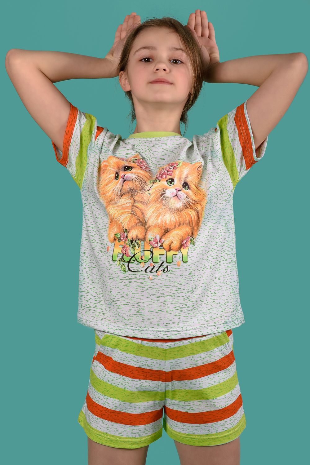 Домашний костюмчик с забавными рыжими котятами. Футболка свободного кроя, спущенная пройма. Шорты на широкой резинке с боковыми карманами.