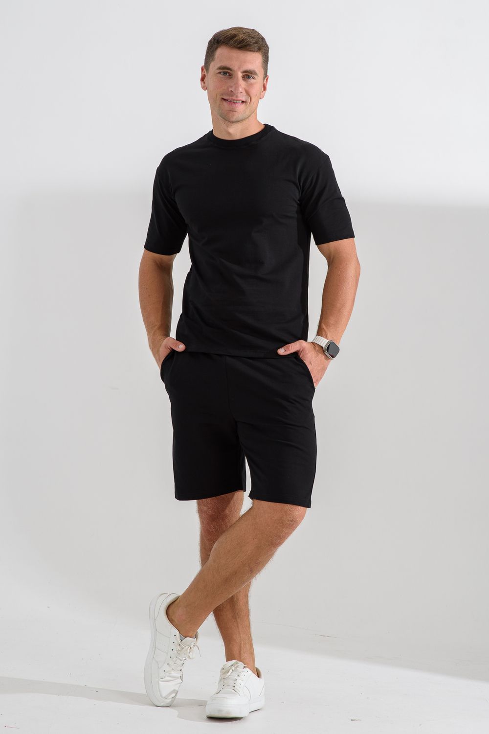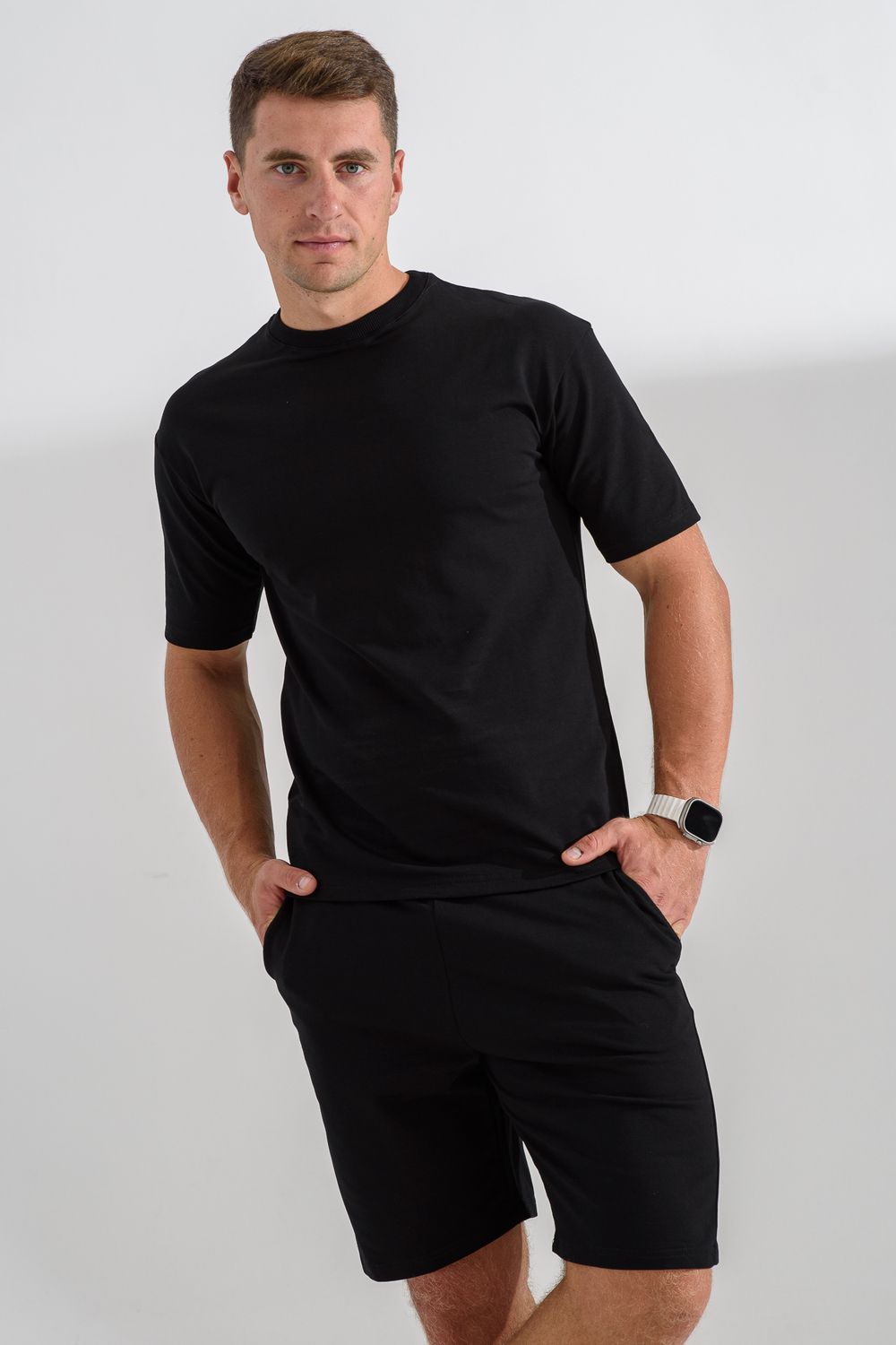 Спортивный трикотажный костюм с шортами и футболкой – это идеальный выбор для активных мужчин, ценящих комфорт и стиль. Выполненный из дышащего и эластичного материала, обеспечит вам свободу движений и приятные тактильные ощущения в течение всего дня. Идеален для моря. Модель с шортами подойдет как для тренировок, игры в теннис так и для дома. Великолепно учитывает все потребности современного мужчины, стремящегося к стилю и удобству.