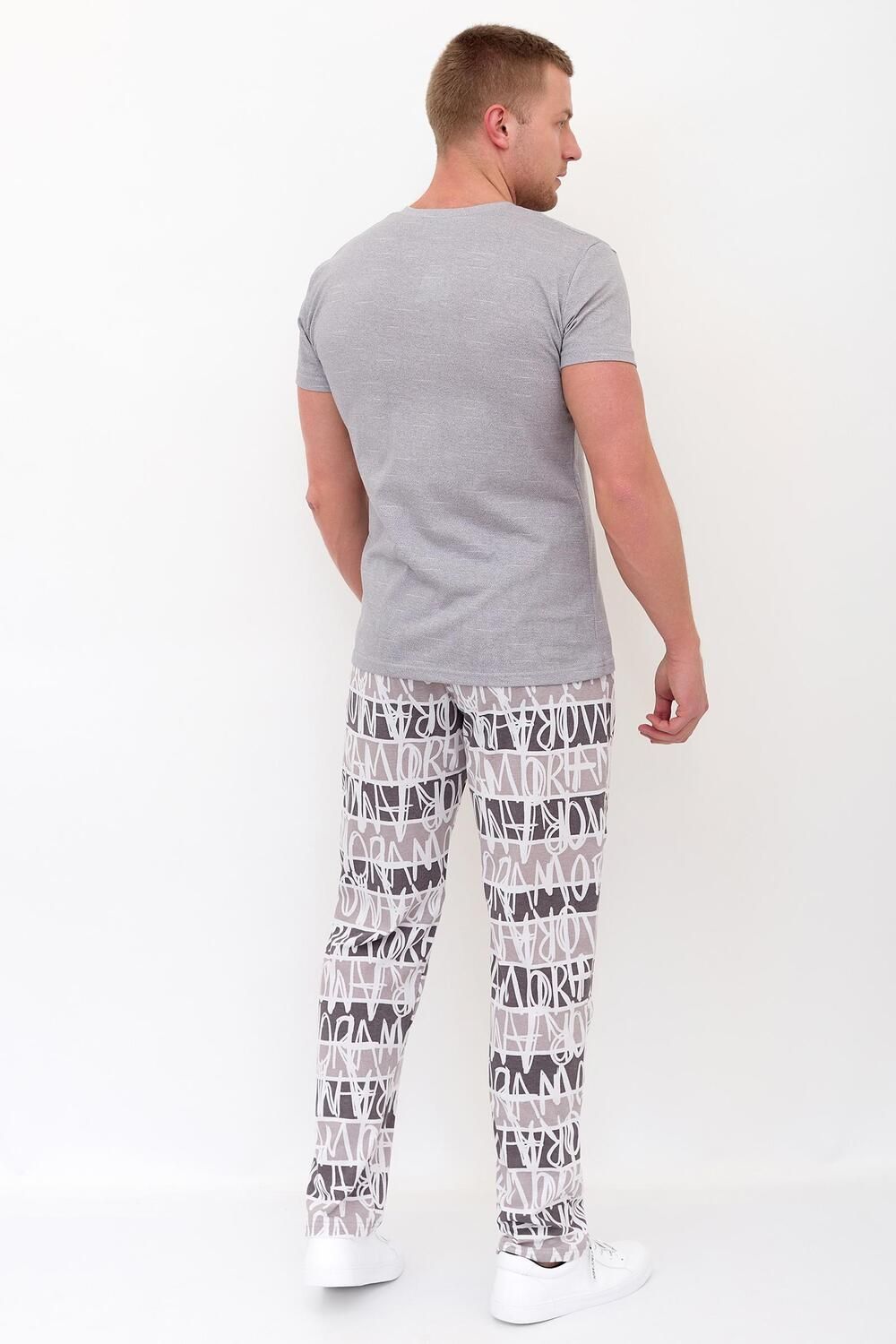 Стильный мужской костюм для дома и отдыха. Состоит из брюк свободного кроя, с резинкой на поясе и кармашками по бокам, а также футболки. Костюм отлично садится по фигуре и выглядит красиво. В нем комфортно и удобно заниматься домашними делами, встречать гостей или носить как пижаму. Самый практичный вариант домашней одежды на прохладное время года.