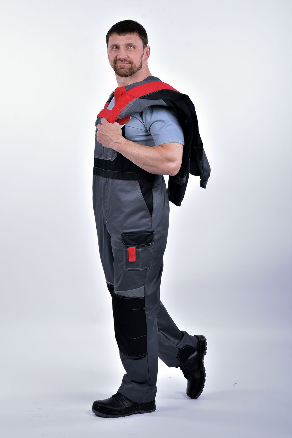 Легкий и удобный летний мужской костюм рабочий для профессионалов. Универсальная и практичная спецодежда мужская одежда, идеально подходящая как для работы, так и для отдыха. Полукомбинезон и куртка рабочие мужские свободного кроя, не сковывают движения. Ткань плотная, дышащая и приятная ткань на ощупь. Вещь прослужит долго. Комфортная, легкая спецодежда для мужчин, подойдет для уличных и хозяйственных работ. Мужская одежда для ценителей активного отдыха, рыбалки и охоты. Одежда на стройку, ремонт, и производство. Куртка: силуэт прямой, пояс притачной, застежка на молнию, воротник стойка. Накладные карманы комбинированные с малыми накладными карманами с разделителями. Прорезные карманы на нижней части полочки. По шву притачивания кокетки вверху и по рукавам фигурные вставки СОП. Полукомбинезон: в правом боковом шве застежка на пуговицу, в среднем шве на «молнию», карман с клапаном на грудке, боковые карманы с отрезным бочком. Колени усилены накладками, заложены по 2 вытачки. Один карман над левым наколенником. По шву наколенников косые, фигурные вставки СОП.