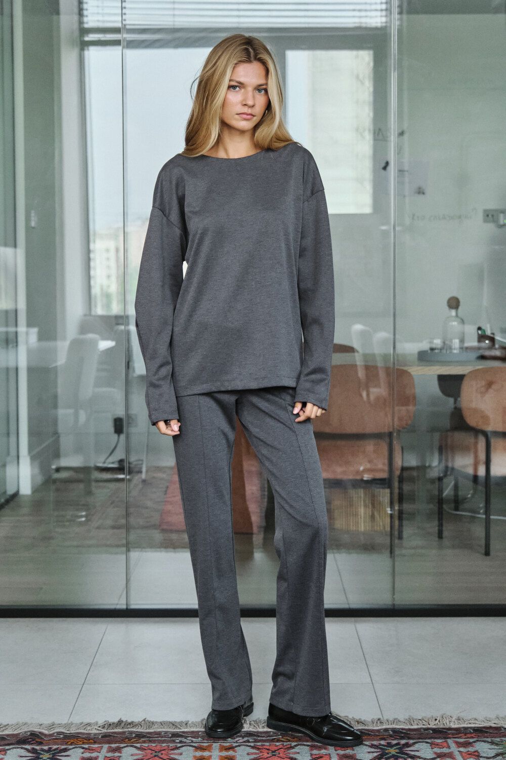 Однотонный ансамбль станет безупречным решением для учителя, элегантной школьной формой для старшеклассниц или строгим деловым комплектом для офисных будней. Трендовая кофточка оверсайз и штаны с высокой посадкой в стиле кэжуал – детали, которые легко трансформируются, позволяя создать аутентичный образ, соответствующий самым строгим требованиям офисного дресс-кода.