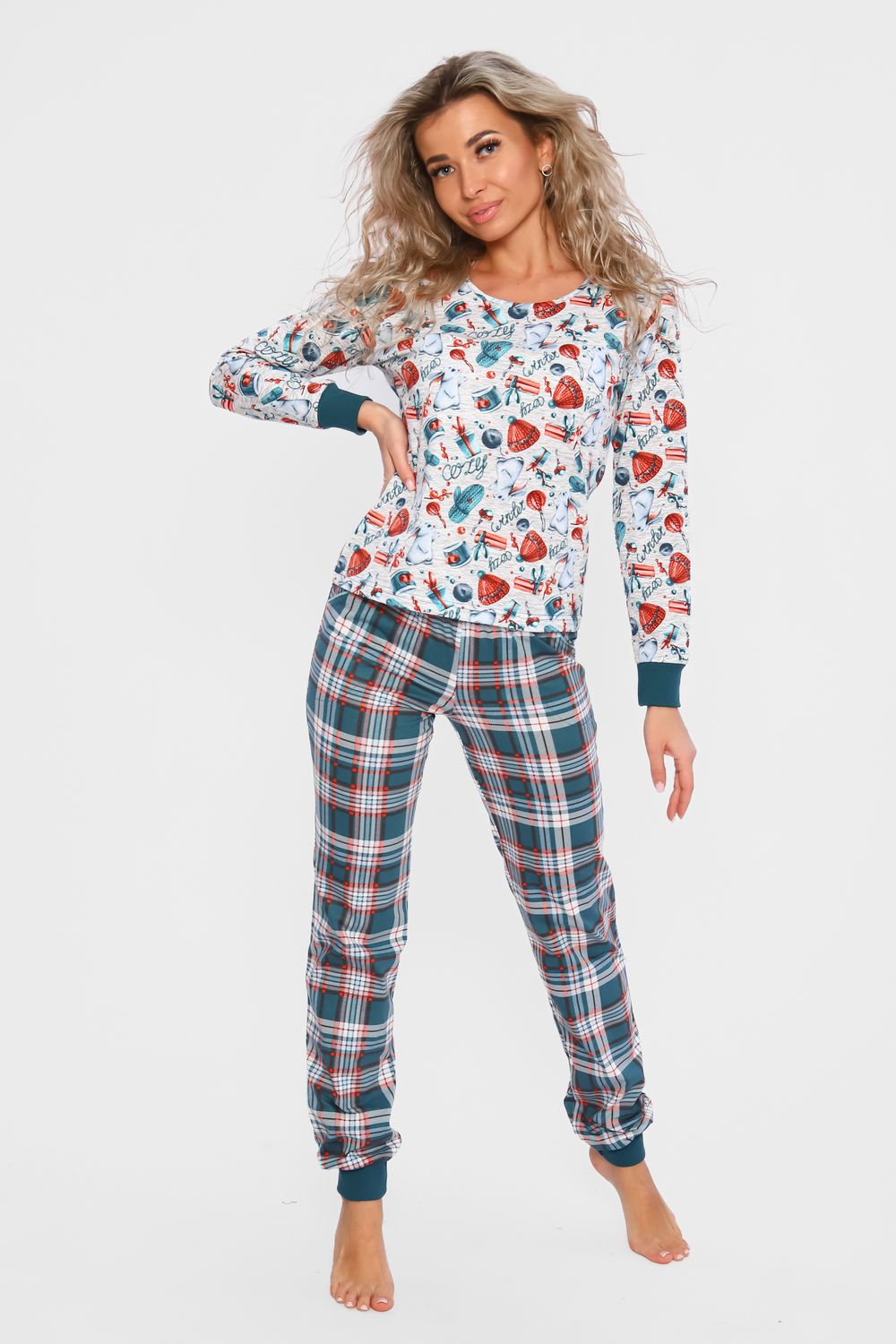 Домашний костюм с НОВОГОДНИМ принтом, состоит из футболки с длинным рукавом (длина рукава указана от горловины) и брюк с карманами в боковых швах, все манжеты на костюме выполнены из плотной резинки - кашкорсе. Стильный домашний комплект двойка имеет натуральный состав 100% хлопок, удобная и практичная одежда для дома .