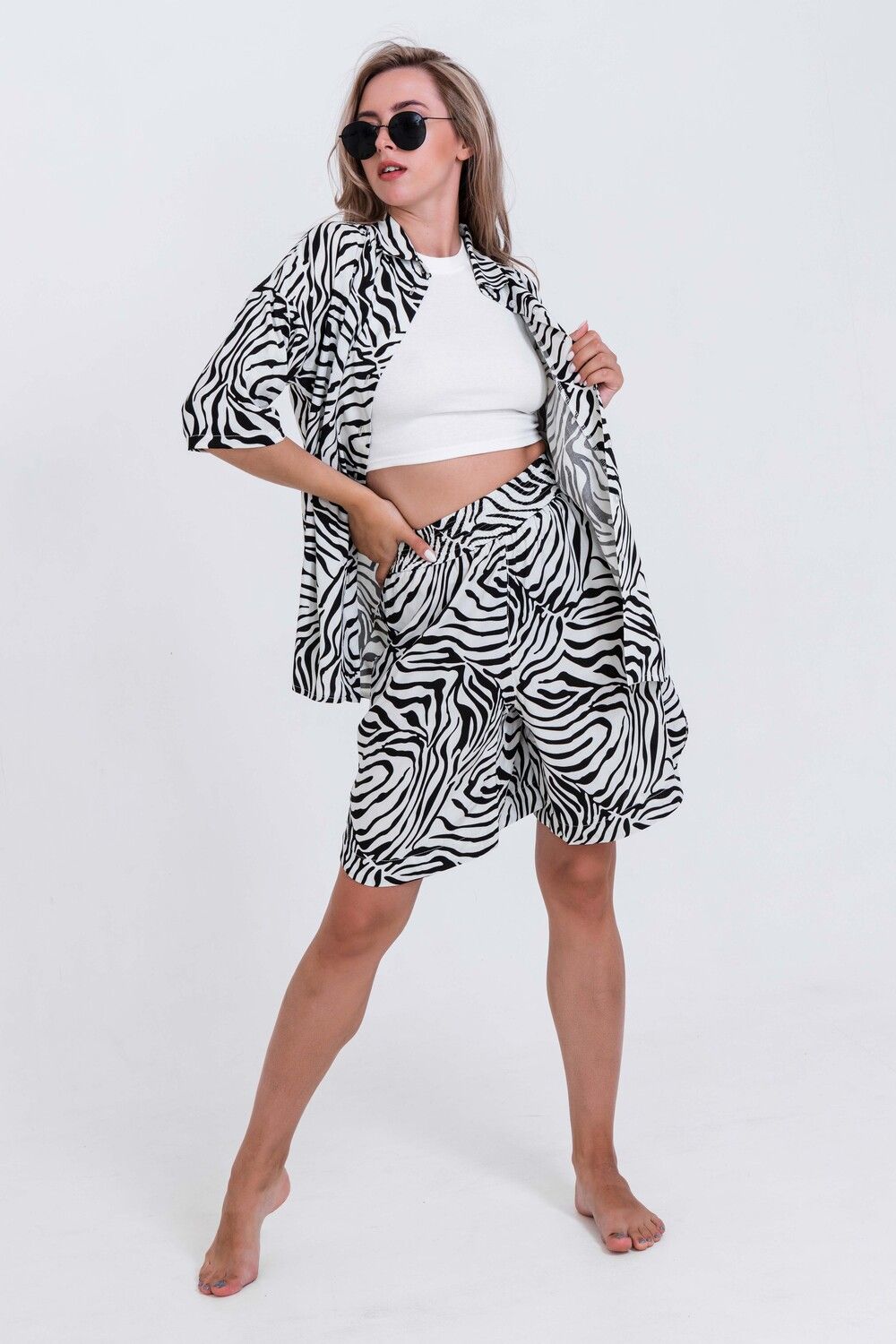 Костюм штапель рубашка + шорты 1252 - Мелкая зебра